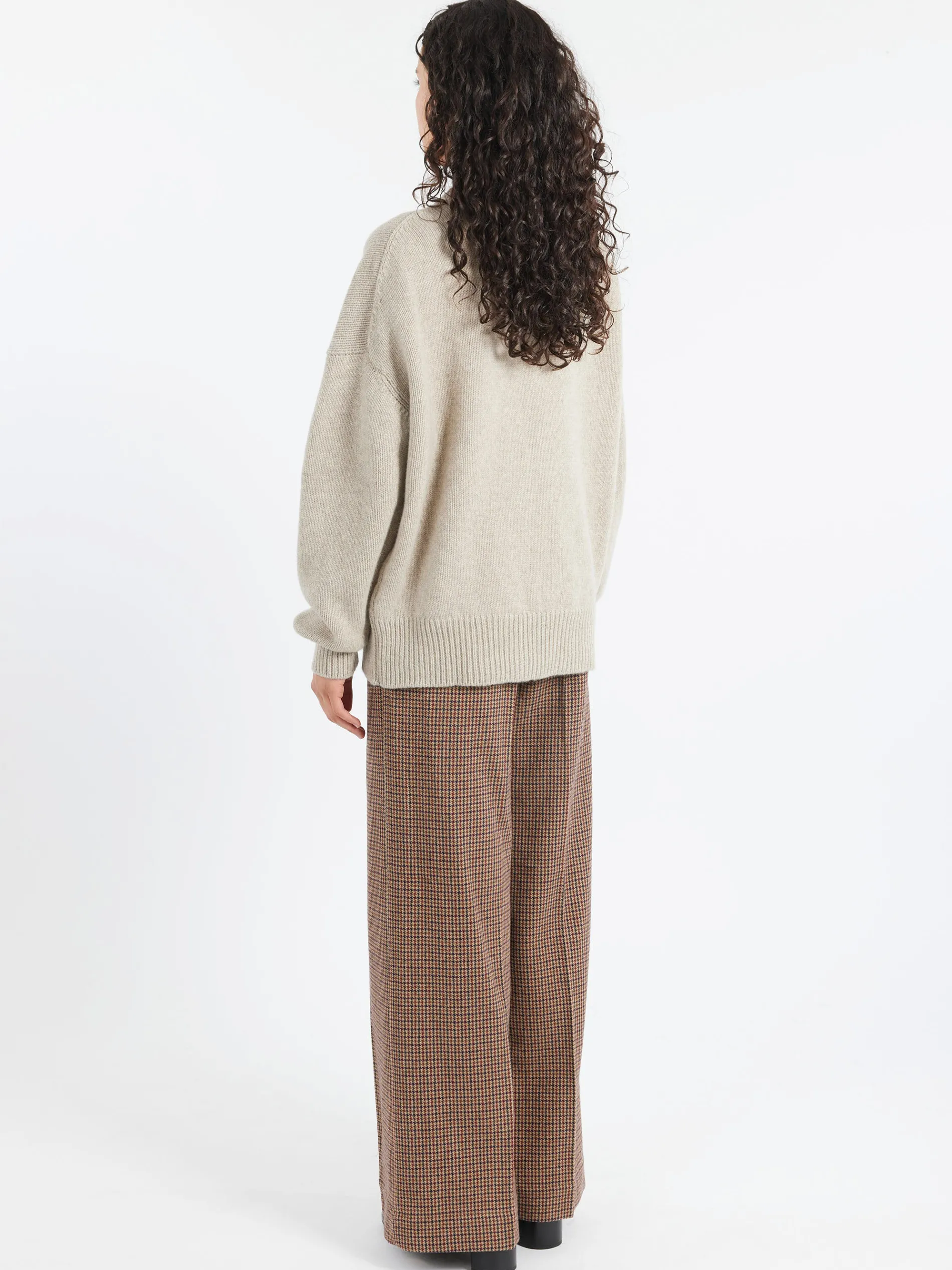 The soft elegance of a boyish V-neck collar. The Balla V is crafted in a chunky 5-gauge weight for a beautifully soft hand-feel and tactile warmth. Subtly draped and gently oversized.