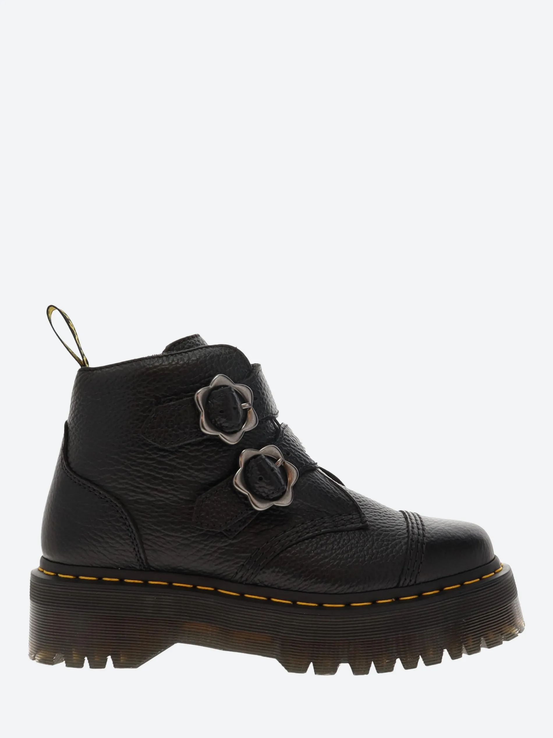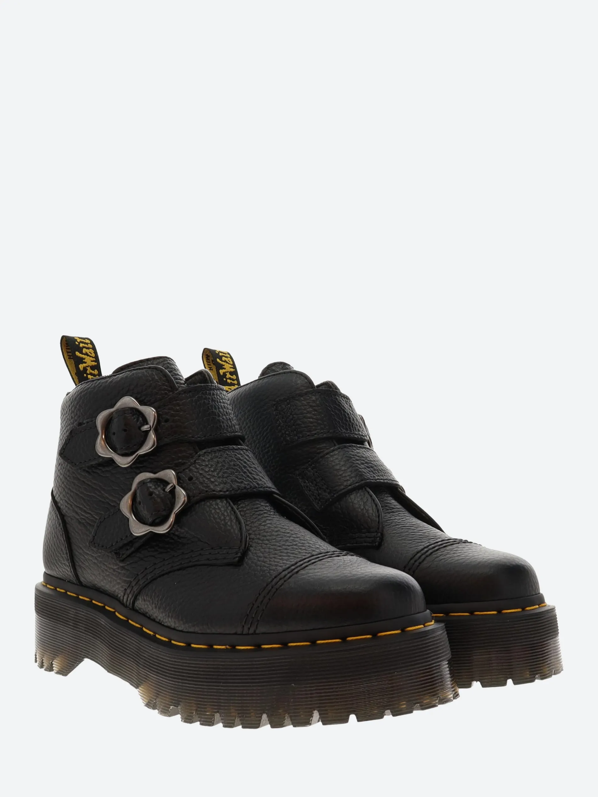 Dr. Martens Devon Flower on a Quad sole. Built from soft, fine grained Milled Nappa – a hardwearing pebbled leather.