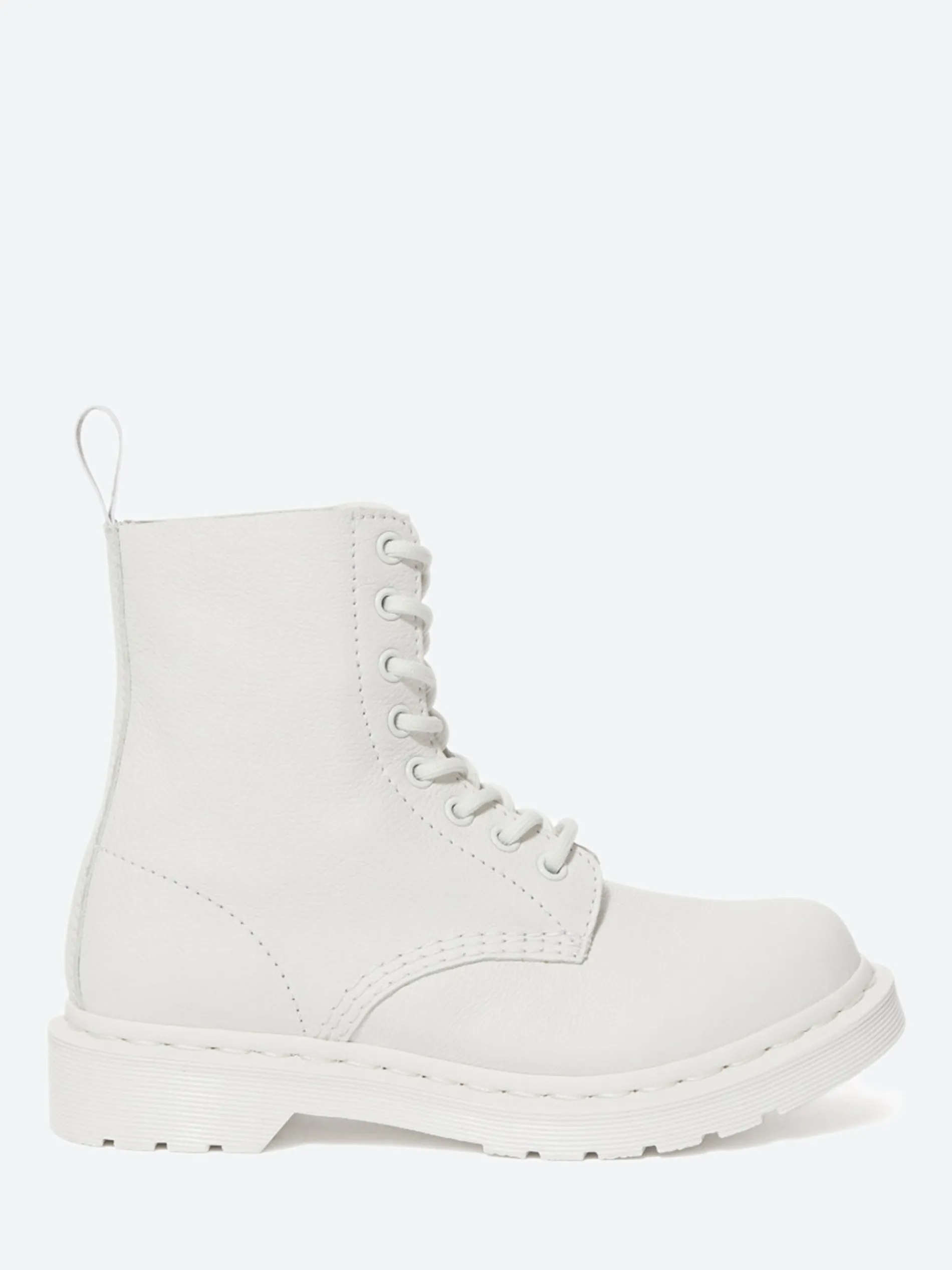 Dr. Martens 1460 Pascal retains all the history and durability of the original, iconic 1460 boot. Made up in monochromatic tip-to-toe white, in the super-soft, no-break-in Virginia leather.