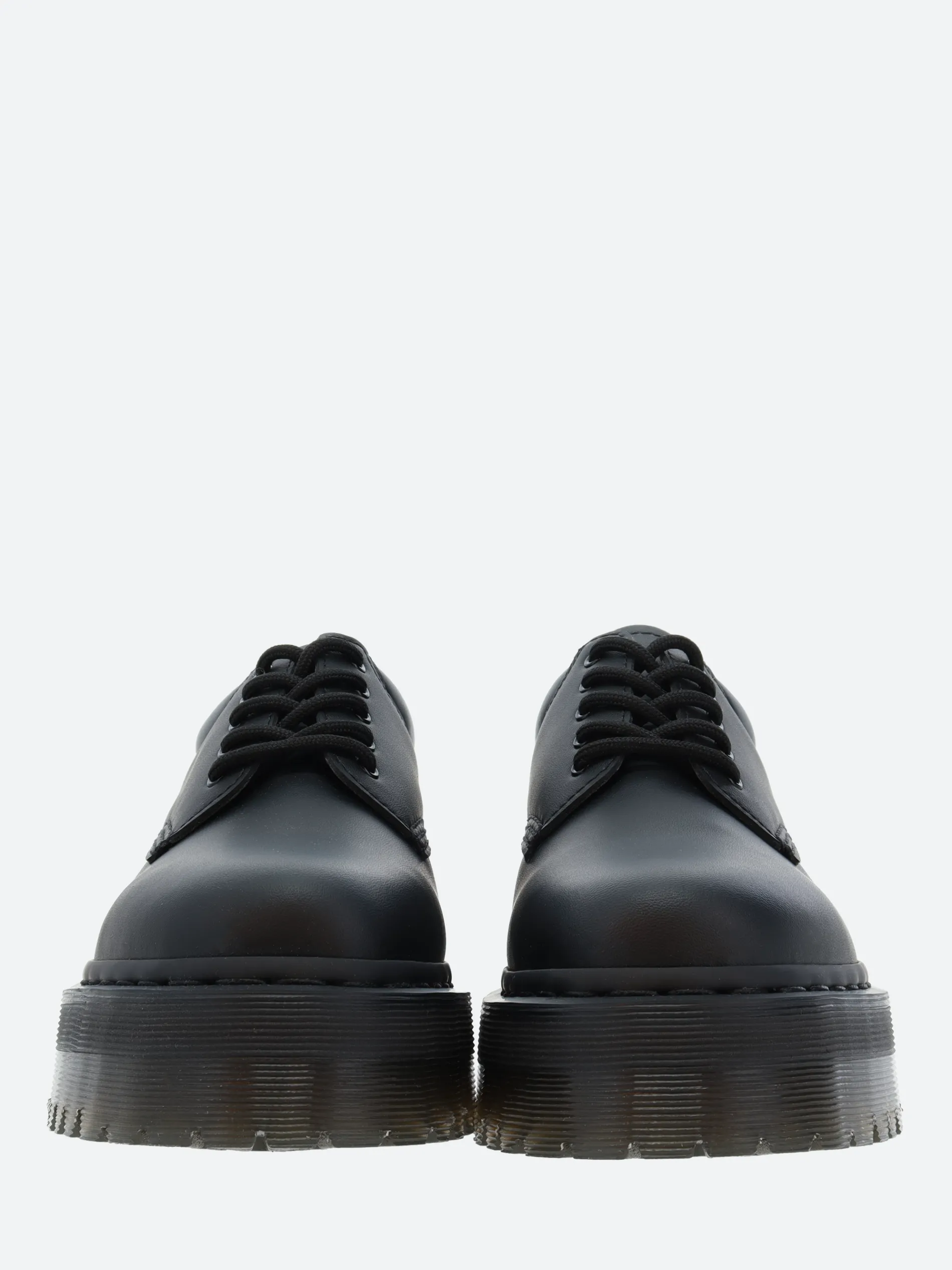 Vegan-friendly silhouette. Unmistakable DM’s attitude. This all-black rework of their 8053 5-eye shoe is built from Felix Rub Off — a supple synthetic material. The shoe is fitted with a comfortable ankle collar and stacked on DM’s formidable Quad sole, secured with monochromatic black welt stitching.