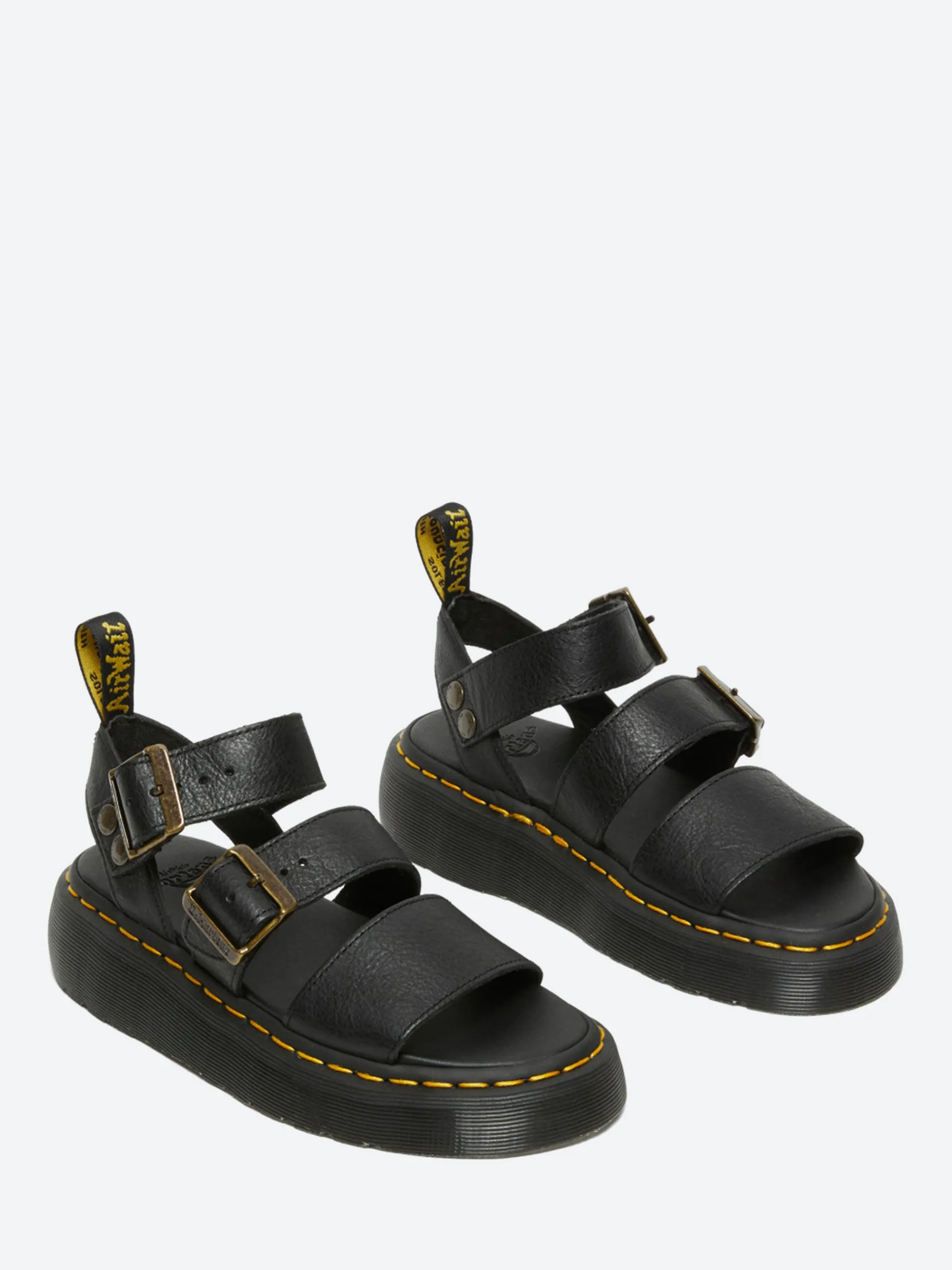 Now standing on a high-rise Quad sole, the Gryphon Quad is manufactured from soft Pisa leather with rugged brass hardware. Welted, well-engineered and packed with Docs DNA — the sandals are finished with yellow welt stitching and an AirWair heel loop.