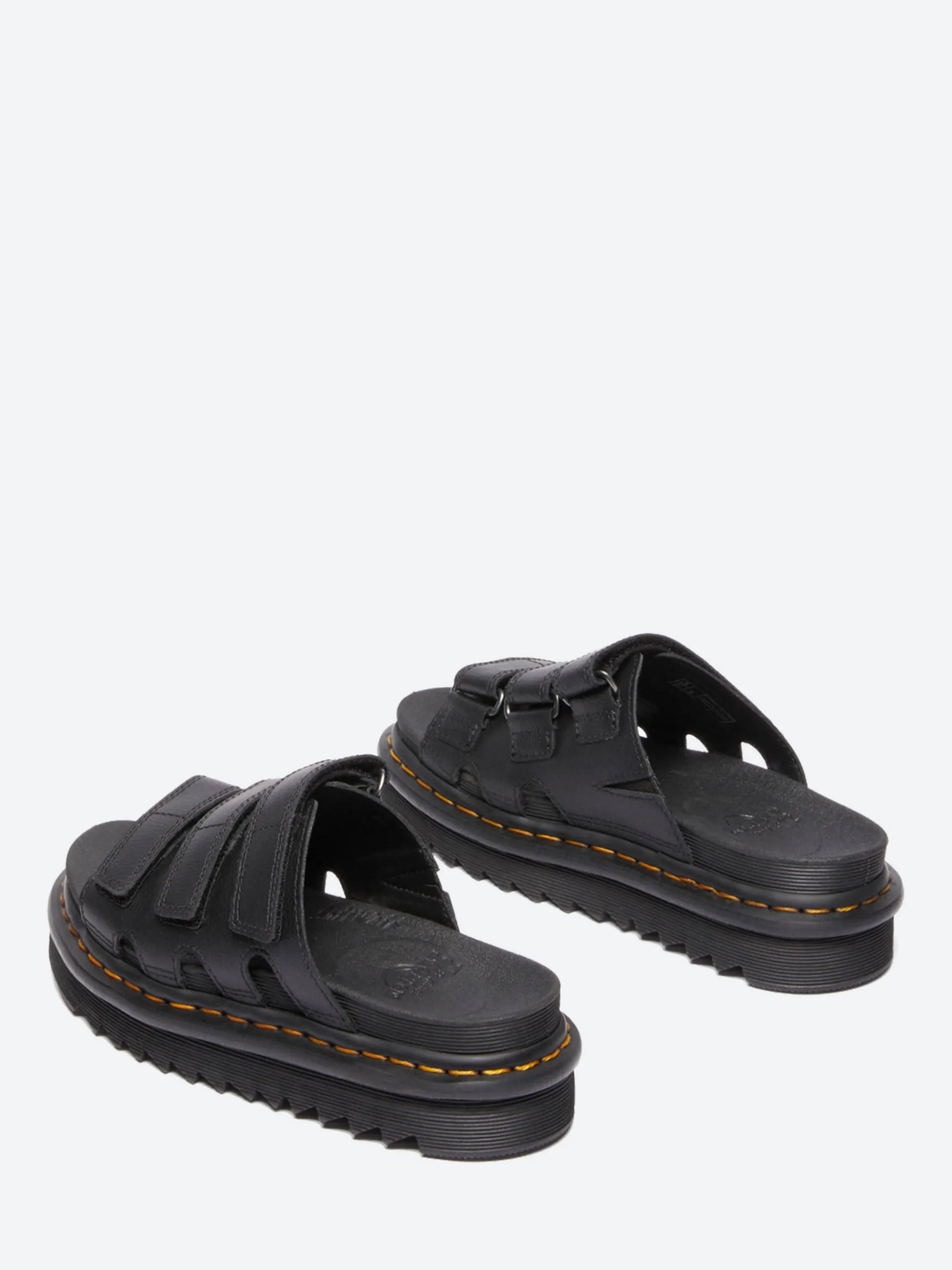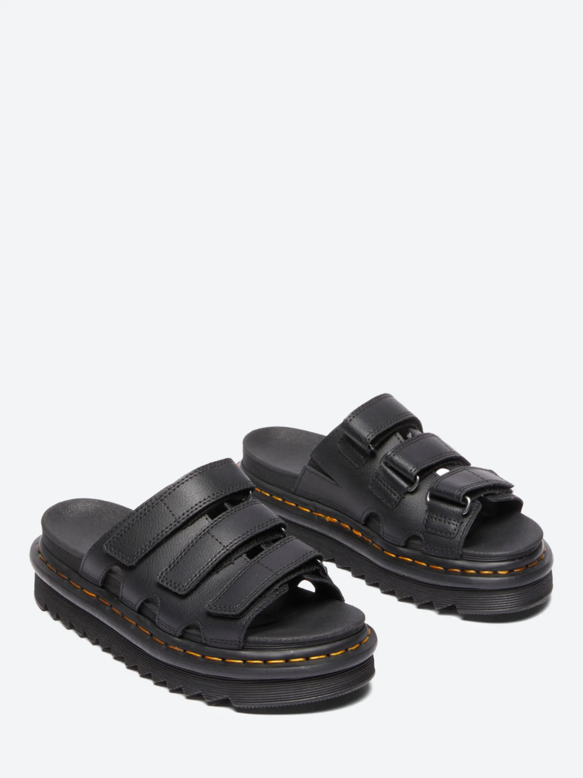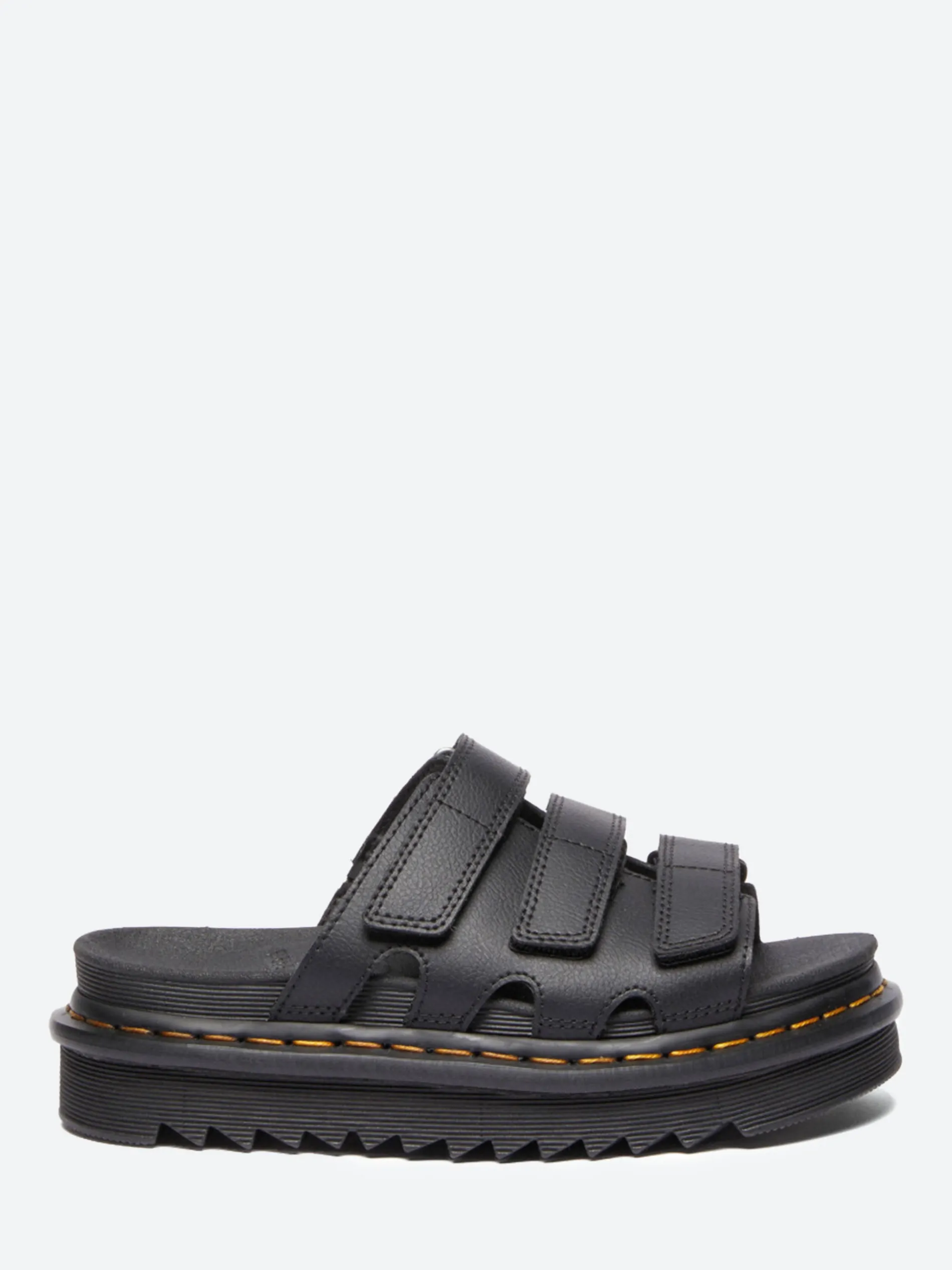 Raine Slide sandal combines a slides easy on/off convenience with Dr. Martens’ lightweight EVA Zebrilus sole and a comfortable SoftWair footbed. The upper has 3 adjustable ripstop straps to help you find the perfect fit. The sole is marked with grooving and secured with DM’s yellow welt stitching.