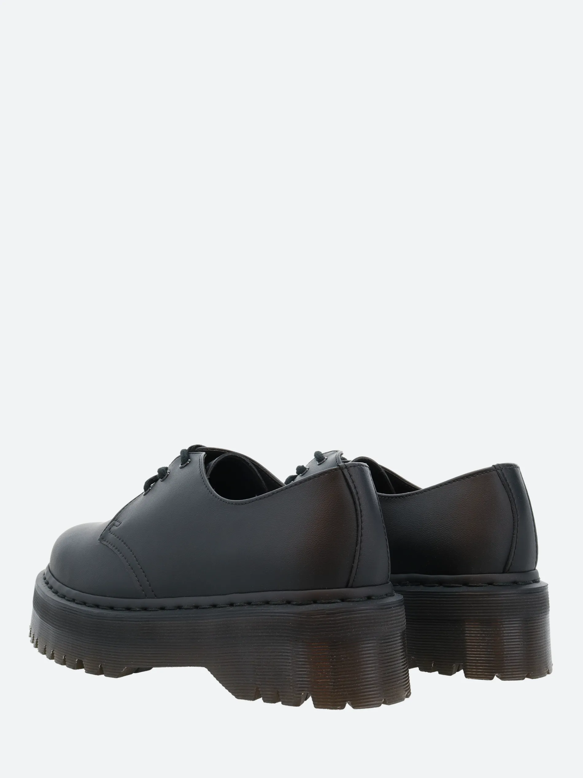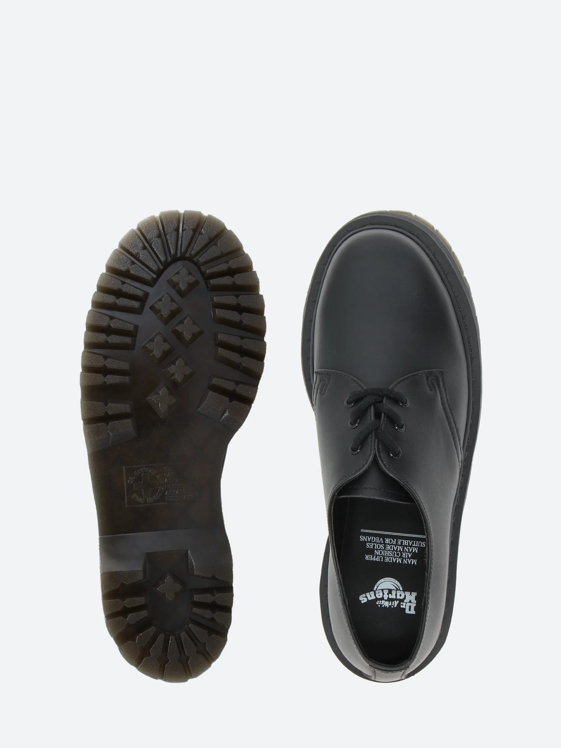 The new Vegan 1461 Quad Mono is a towering version of Docs classic 3-eye shoe, stacked on an all-black Quad Retro sole for a heel-to-toe monochrome statement.