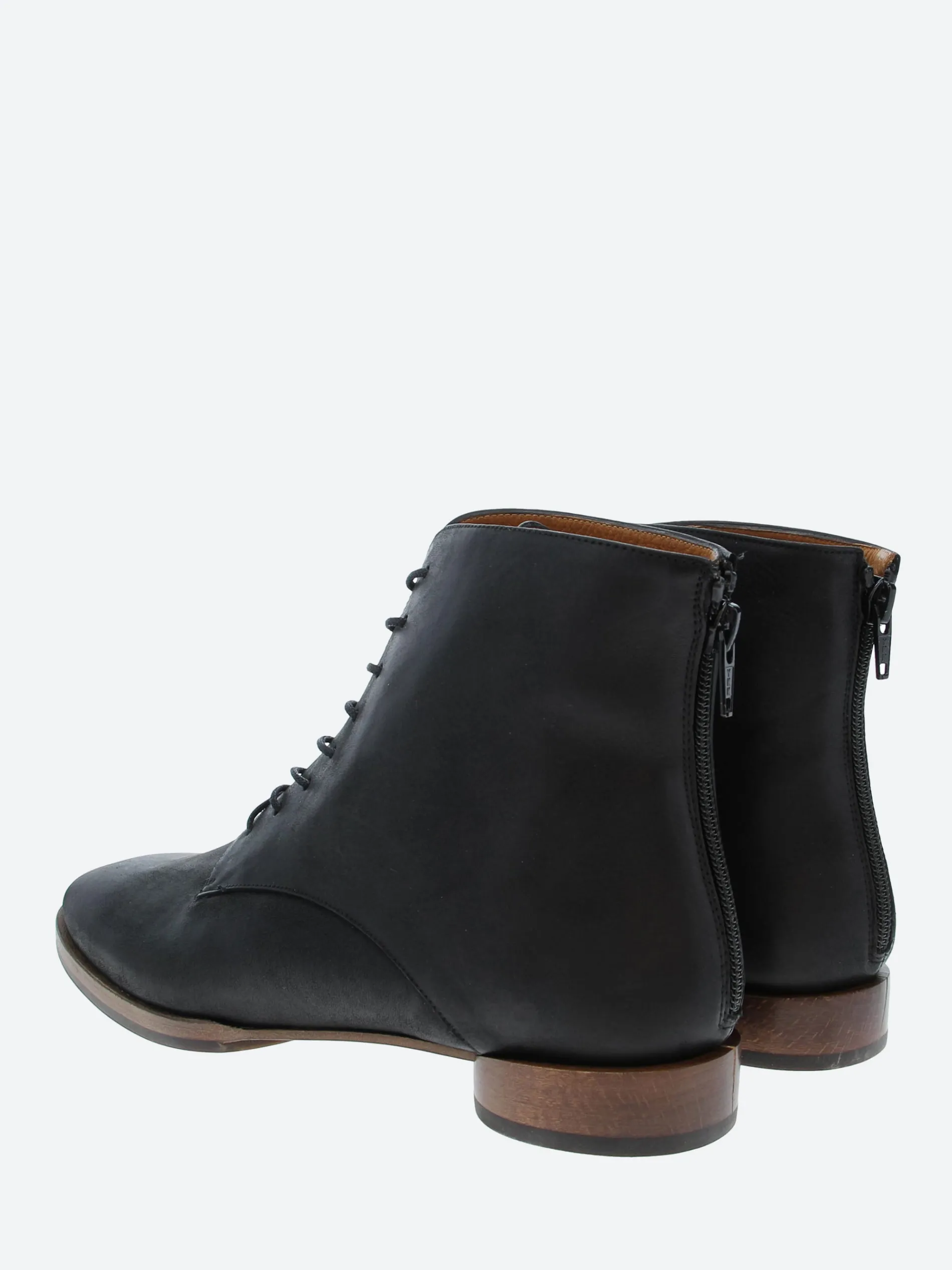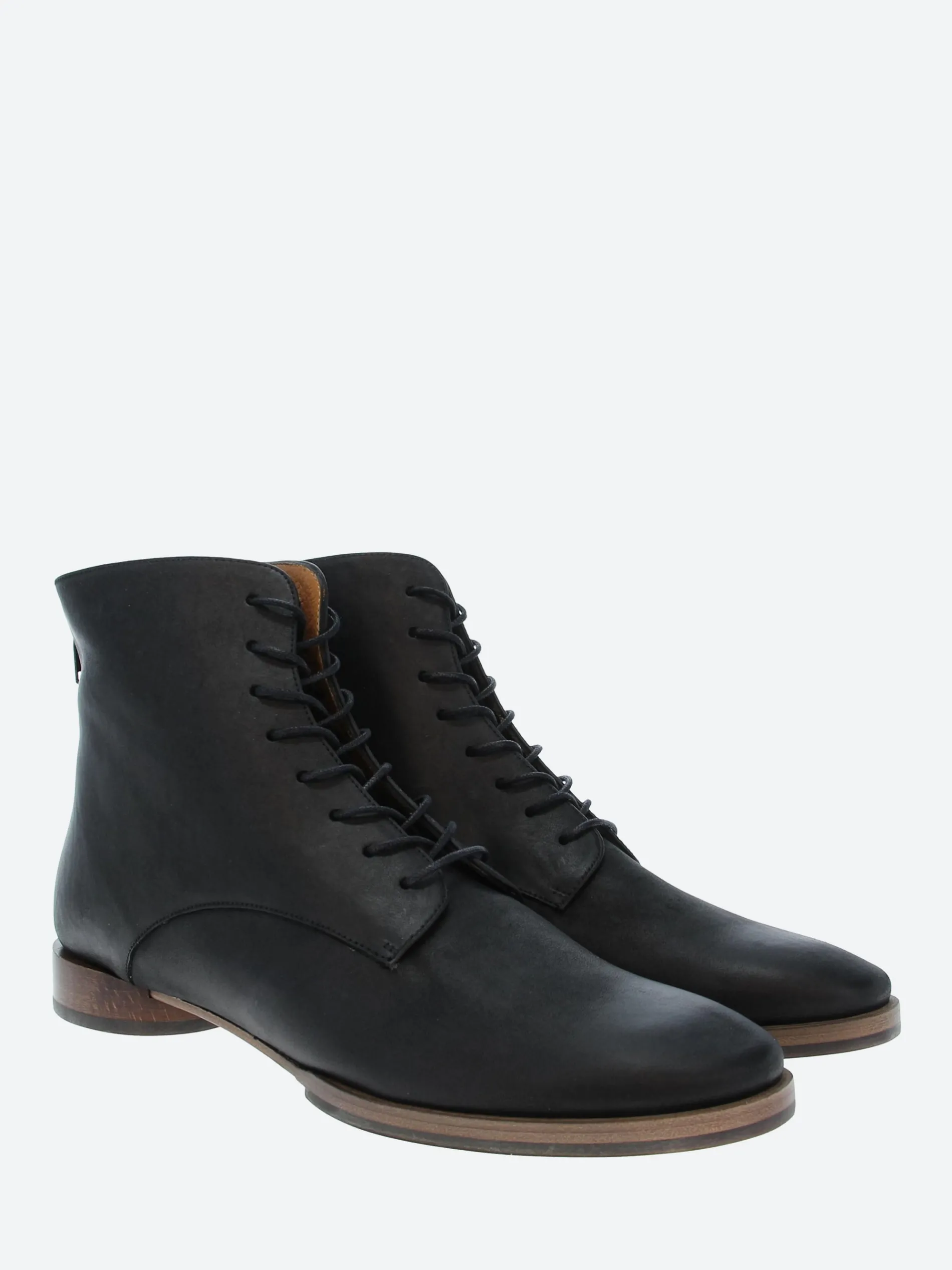 Coclico adds modern details to a classic style. The Eclair lace-up boot has a distinctive flat round heel and patch sole.