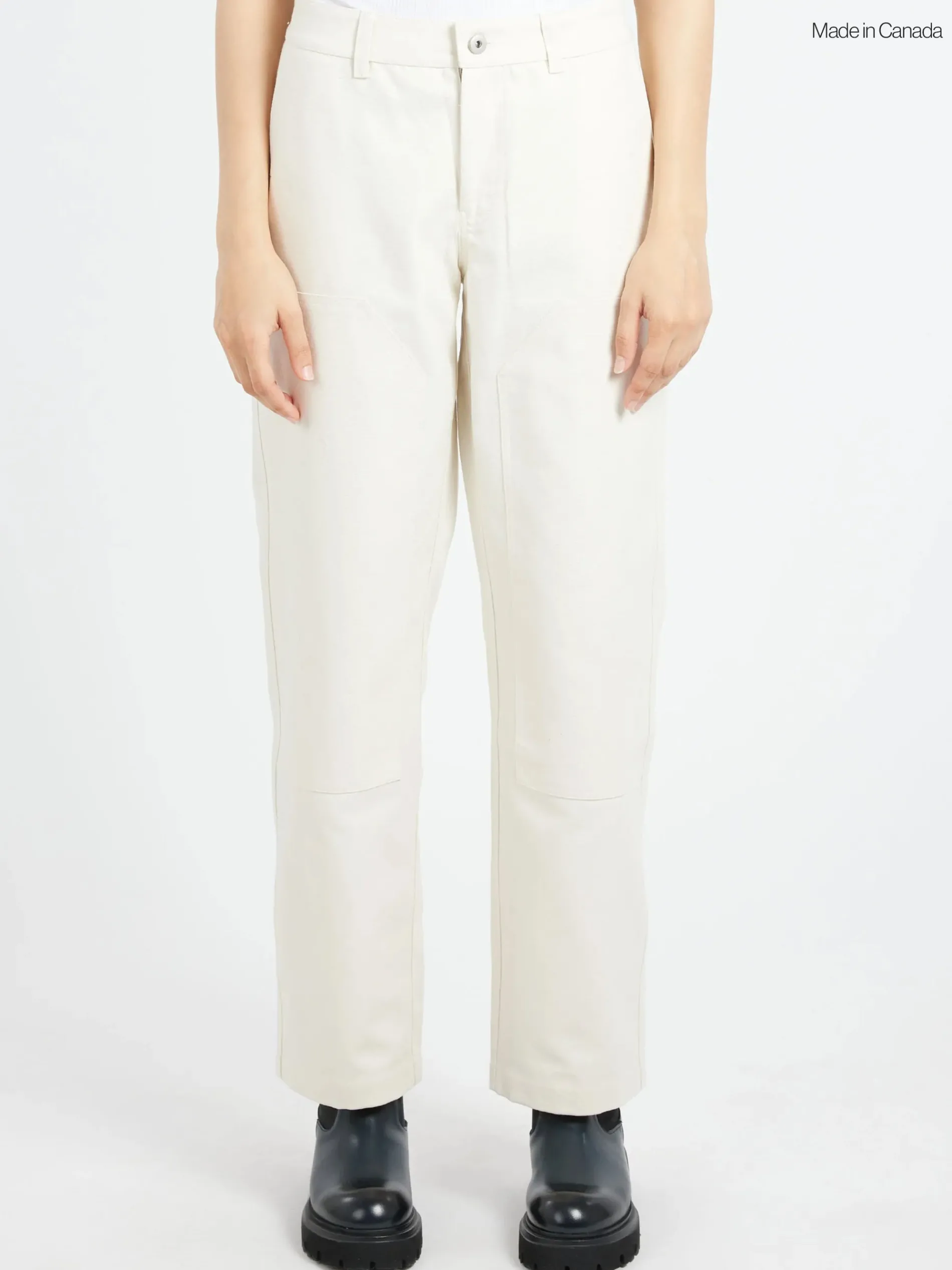 This refined iteration of Ecologyst’s work pant offers a subtly expanded waist measurement, offering a mid to high rise silhouette. The relaxed fit ensures comfort and adaptability to your personal style, whether worn high or low. Meticulously fashioned from 9oz organic cotton canvas, this pant present both resilience and sophistication, making them an essential, seasonless staple in your sustainable wardrobe.