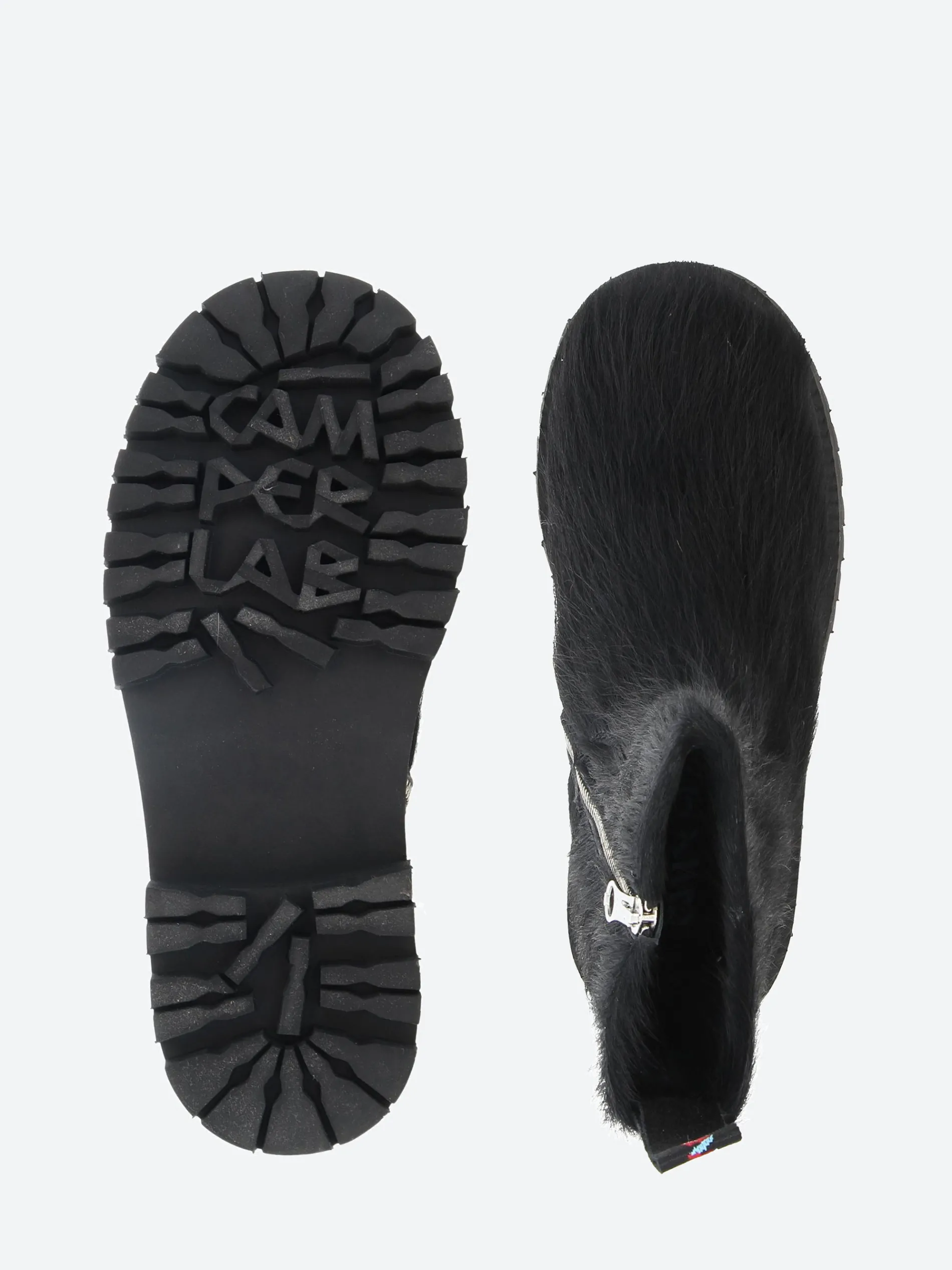 CamperLAB ankle height zip boots with toothed rubber outsoles.