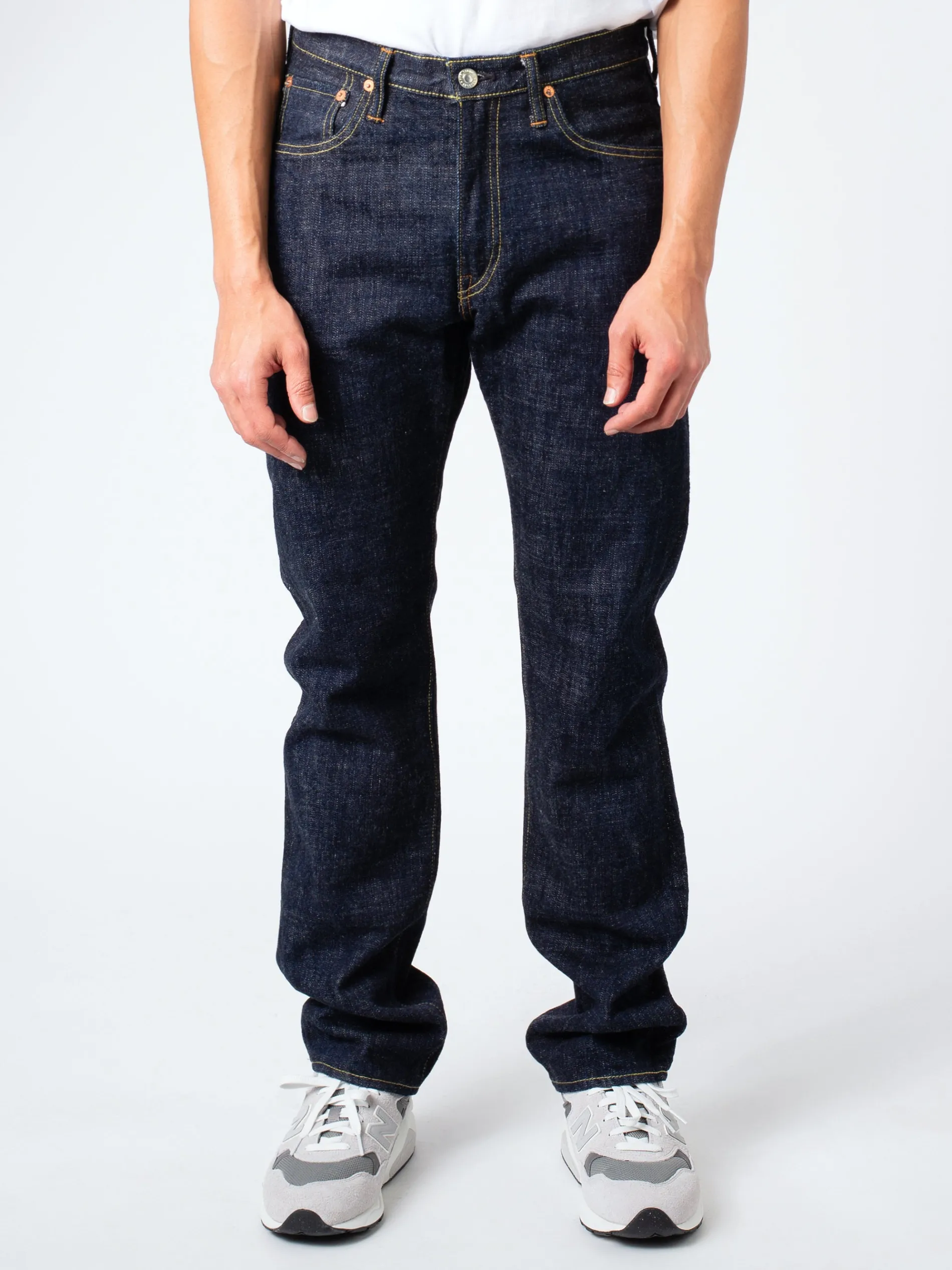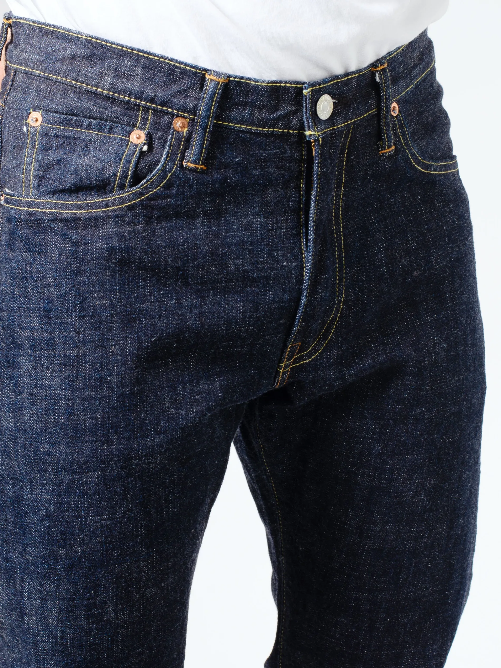 FOB FACTORY original tapered straight jeans made from G3 denim, 14oz denim woven on a G3 loom. Slubby, irregular and a little rough on the hand, the unsanforized denim will soften with each wear.