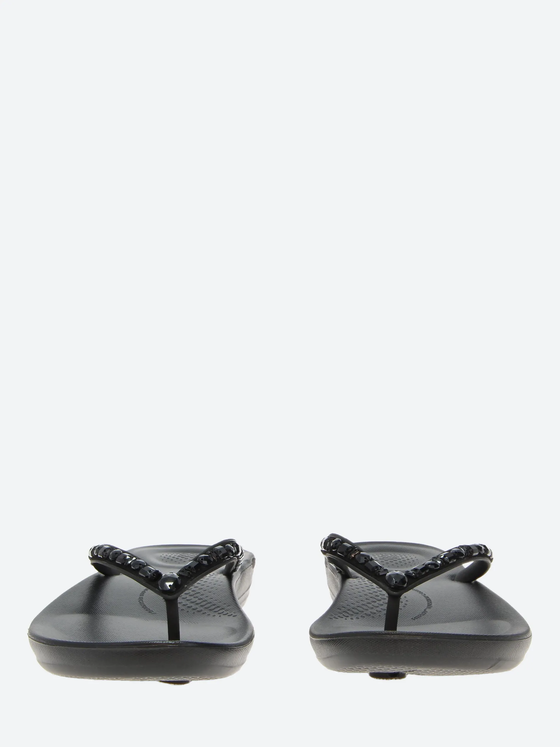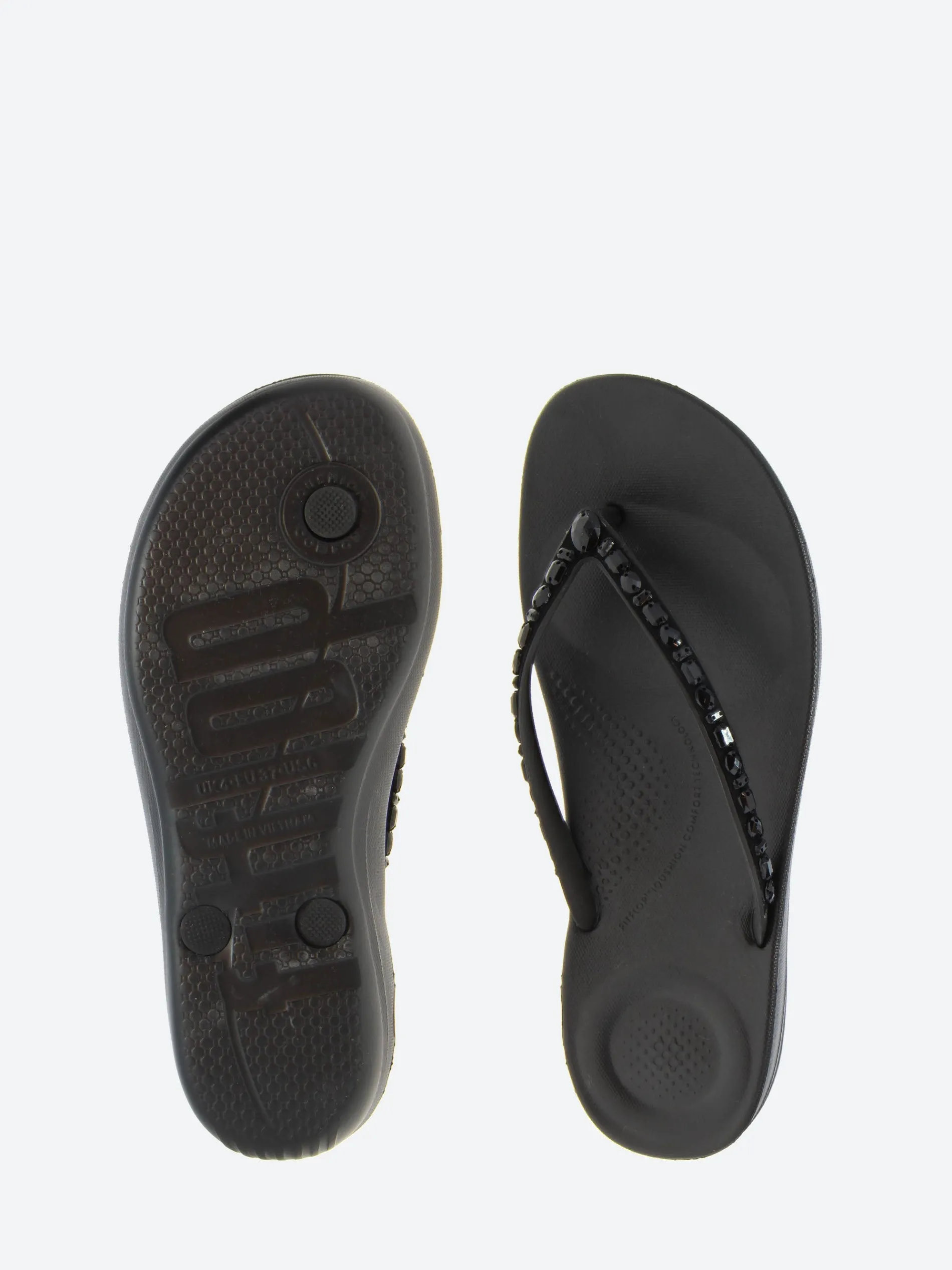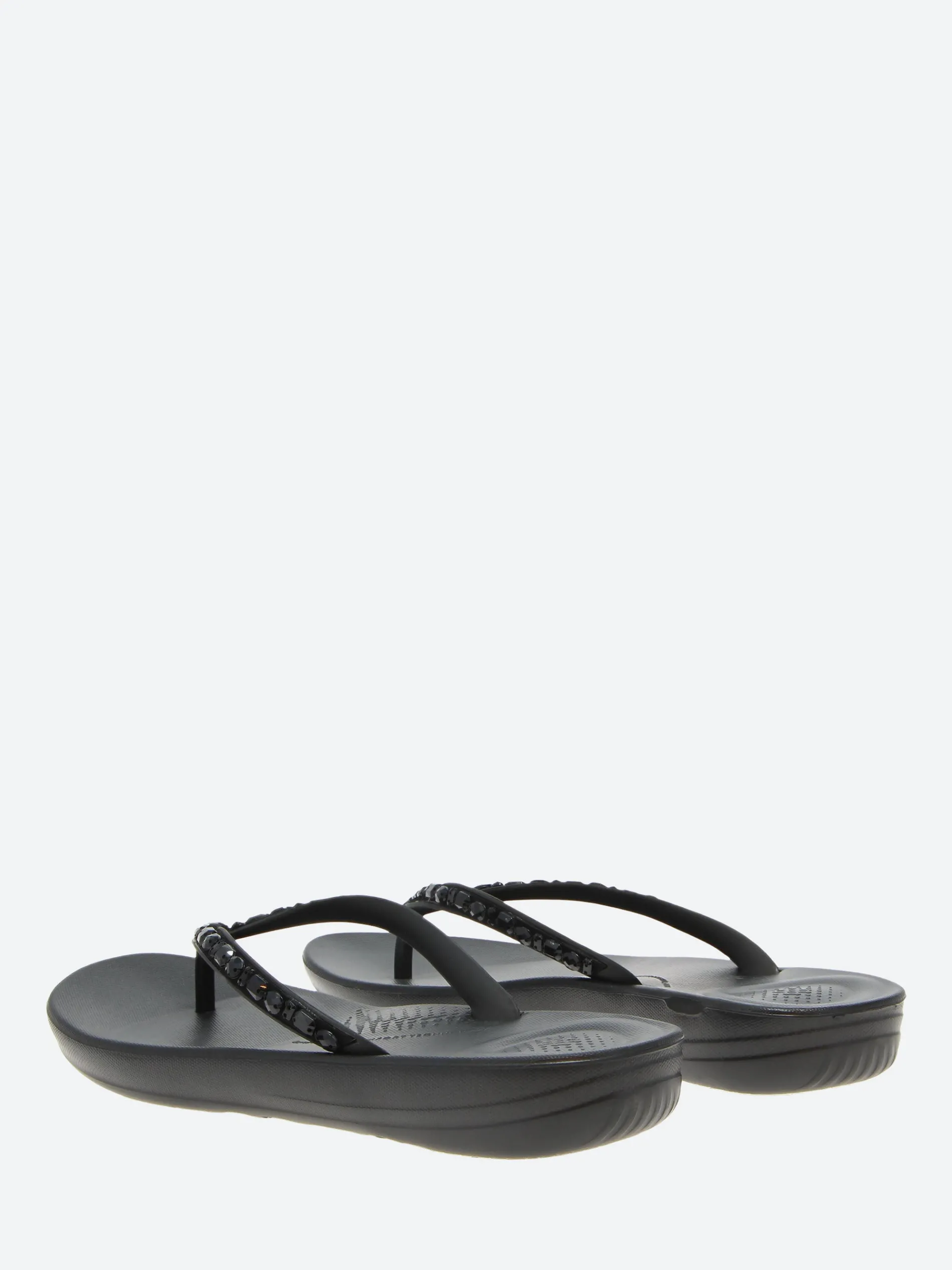 The FitFlop iQushion Multi-Crystal Ergonomic Flip Flops are a stylish and comfortable footwear option designed for all-day wear. These flip flops feature FitFlop’s proprietary iQushion™ technology, which includes ultra-cushioned impact-absorbing pillows, ergonomic arch contouring, and rebound soles to provide superior comfort and support.