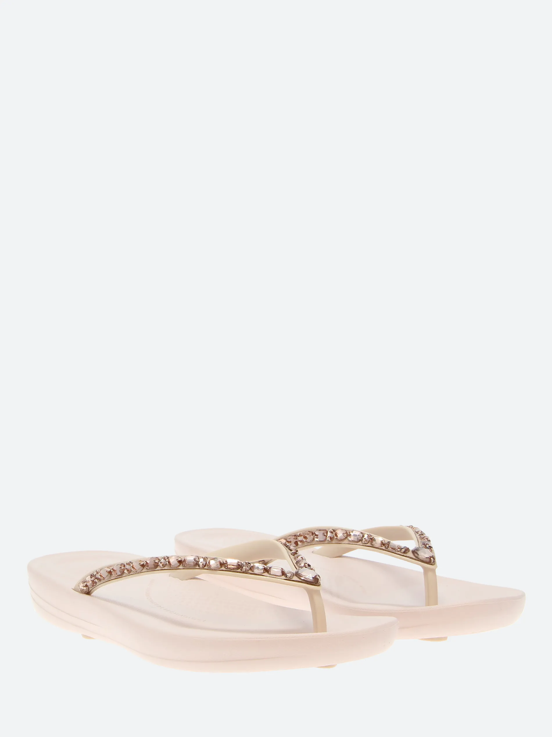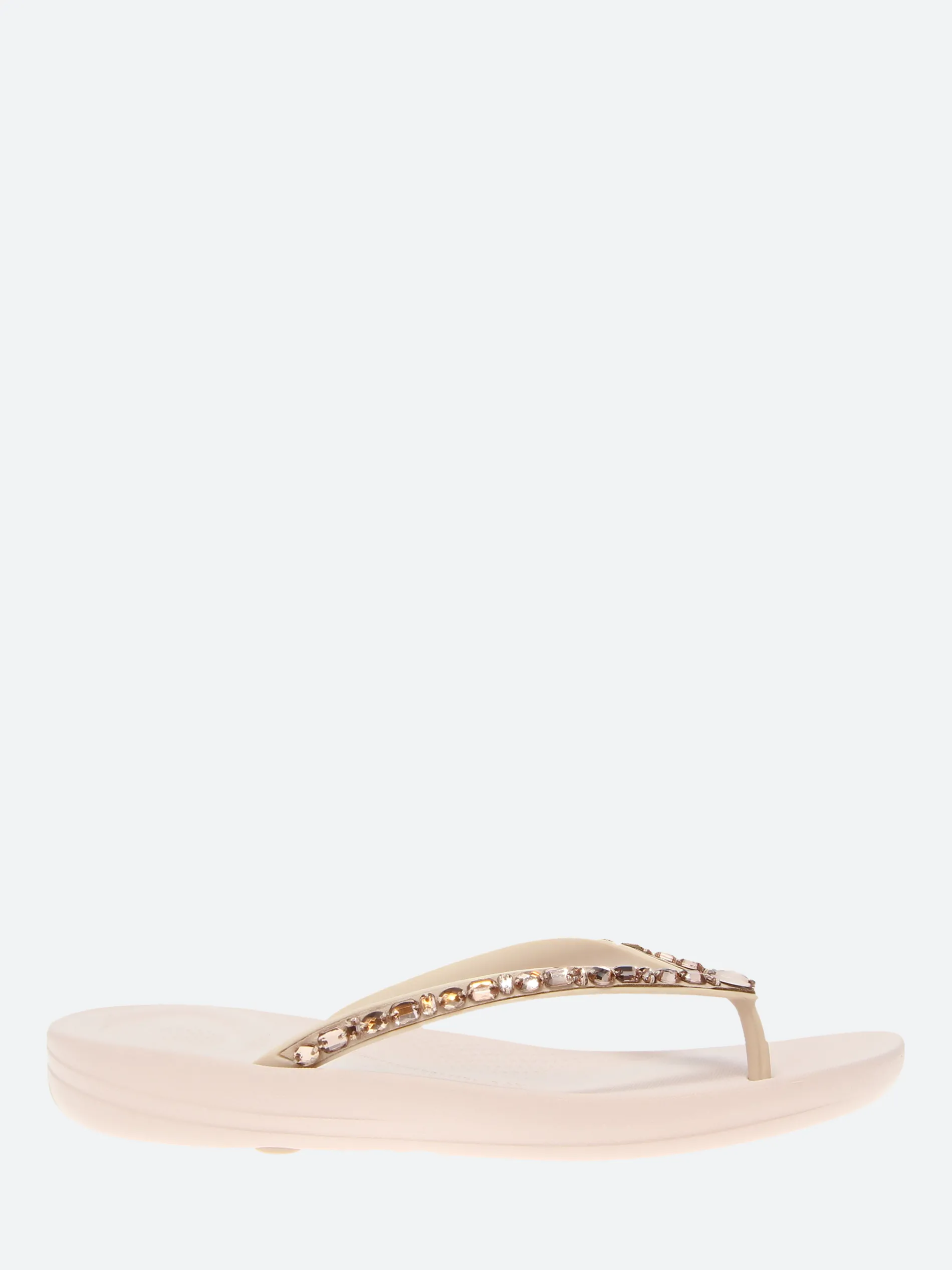 The FitFlop iQushion Multi-Crystal Ergonomic Flip Flops are a stylish and comfortable footwear option designed for all-day wear. These flip flops feature FitFlop’s proprietary iQushion™ technology, which includes ultra-cushioned impact-absorbing pillows, ergonomic arch contouring, and rebound soles to provide superior comfort and support.