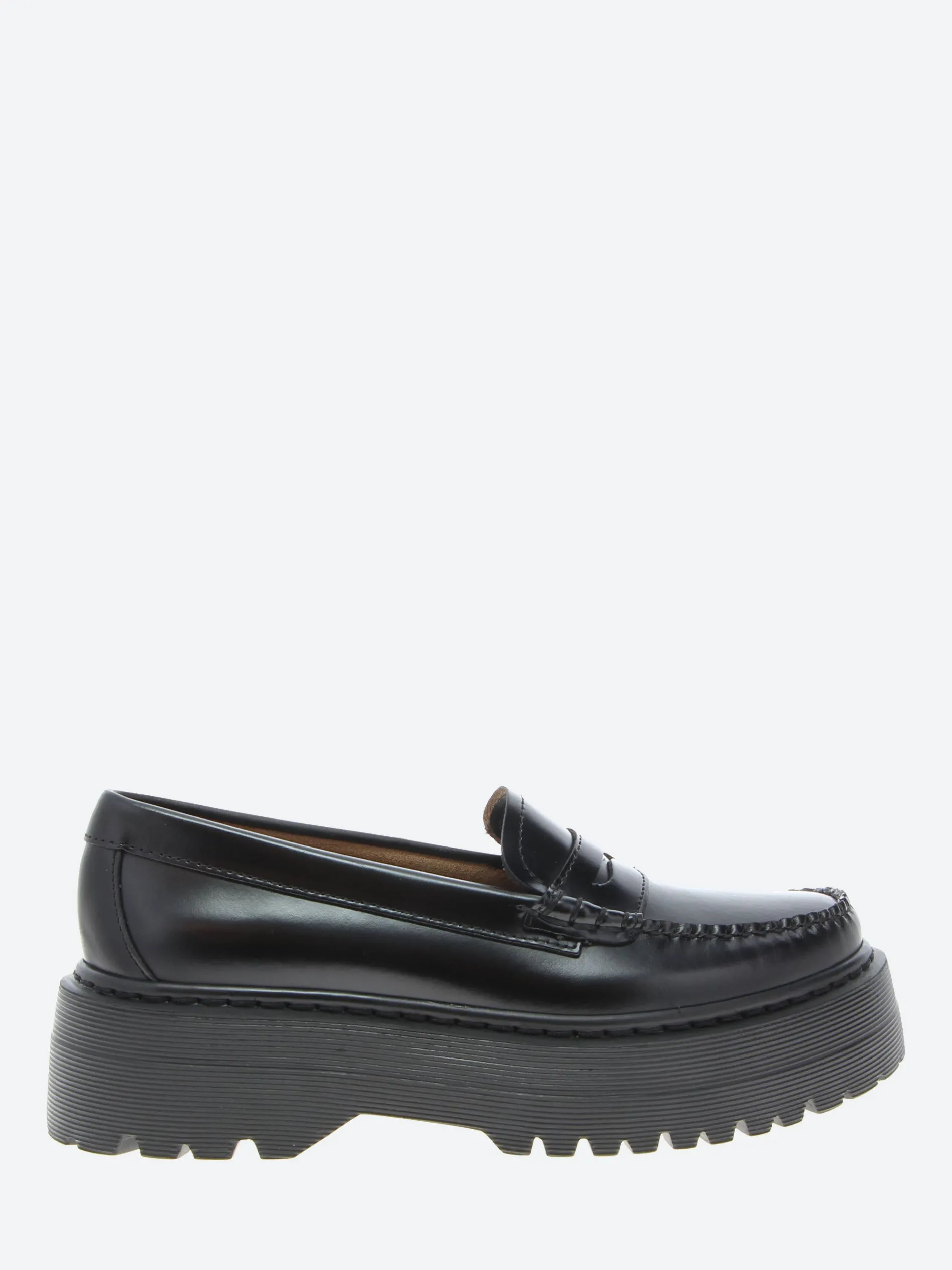 The G.H. Bass Weejun moc toe penny loafer has been given a modern update with a bold, chunky lugged sole. This revamped version blends the classic loafer style with a more rugged, contemporary twist, making it perfect for those who want a mix of traditional and trendy in their footwear.
