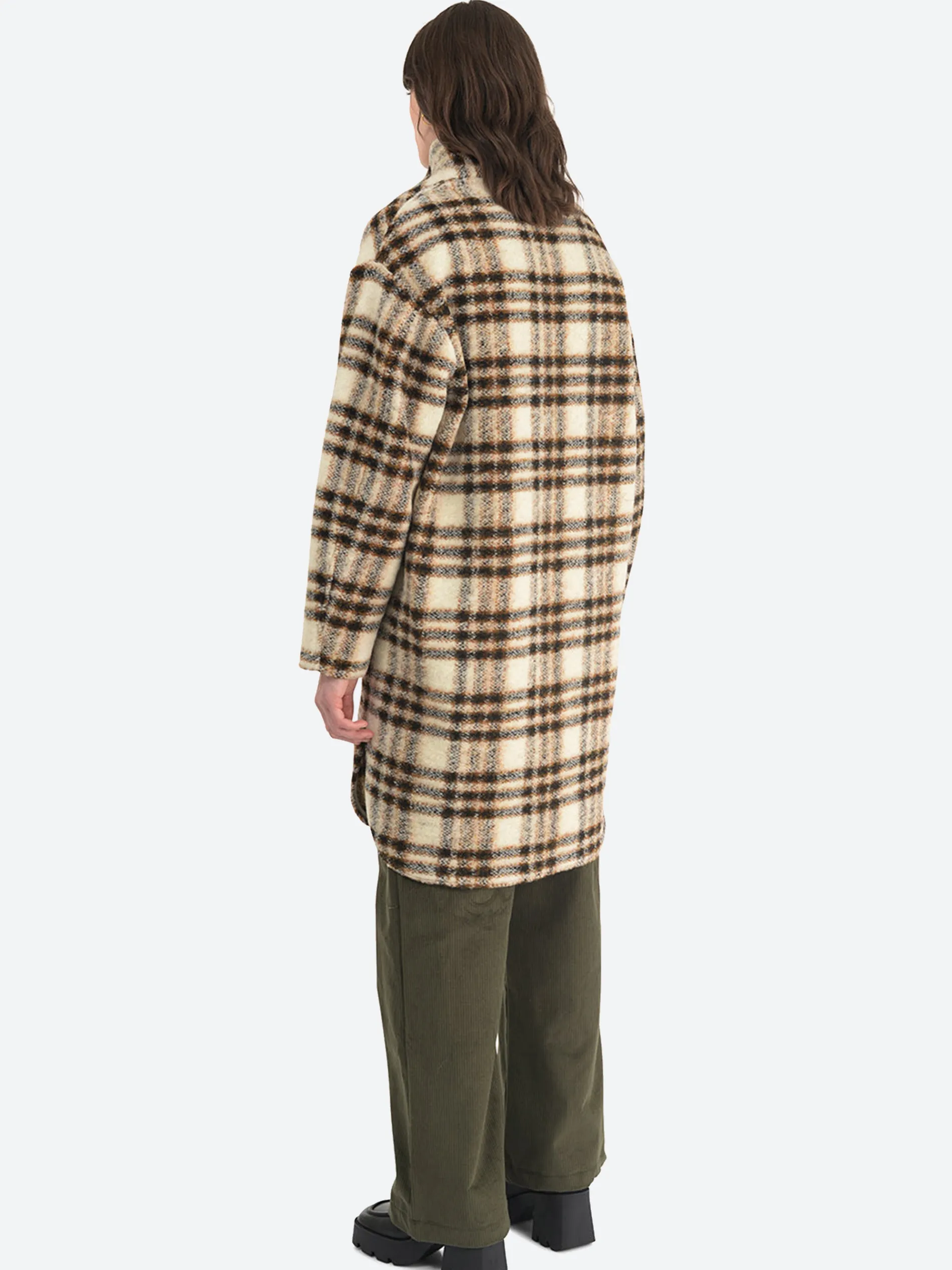 Isabel Marant Étoile Gabriel coat made from a warm wool blend. This sophisticated plaid design “blanket” style coat is shaped for a relaxed silhouette.