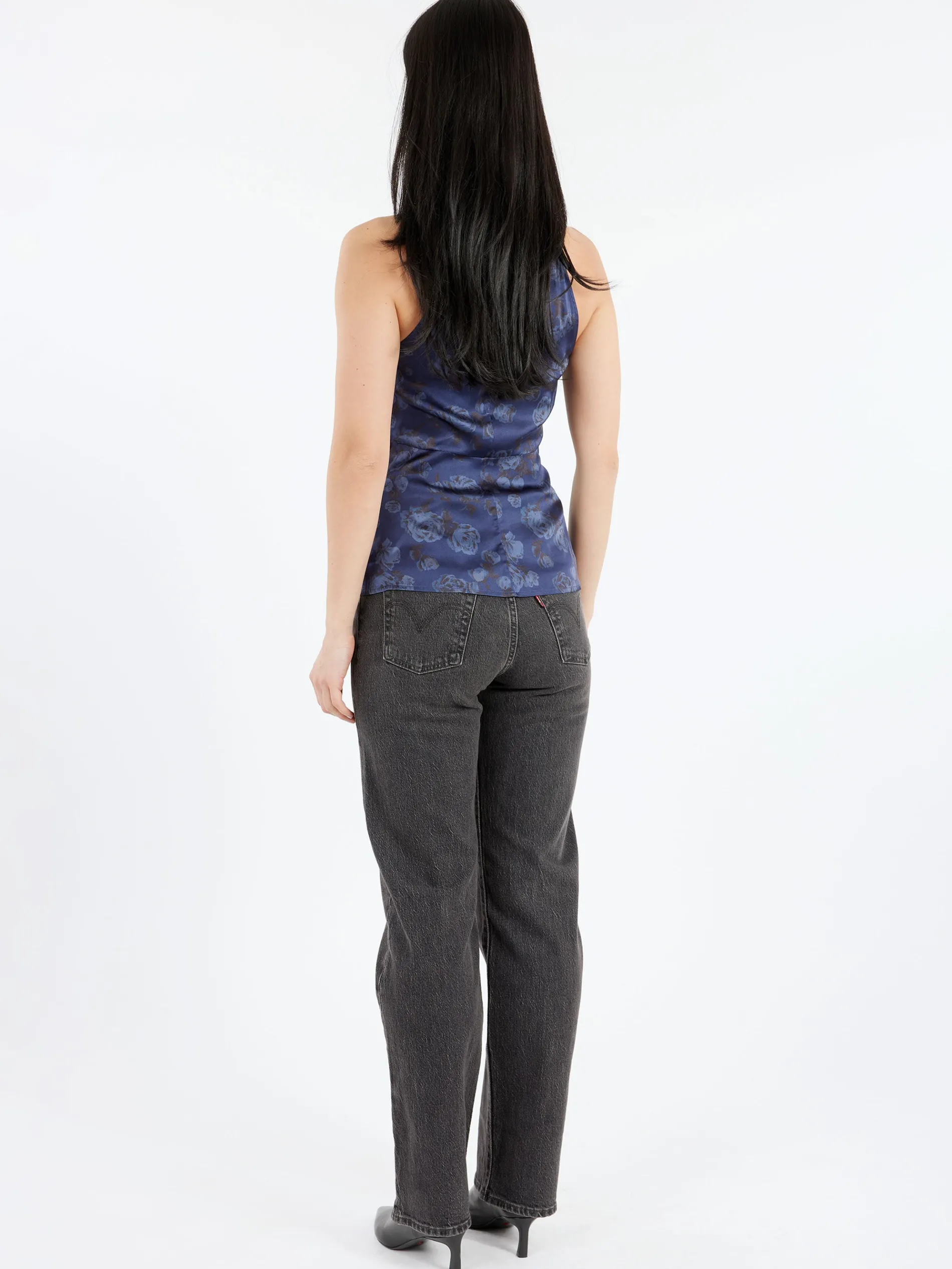 This sleeveless Floral Printed Top features a front knot detail that creates a keyhole cutout and a button closure at the back.