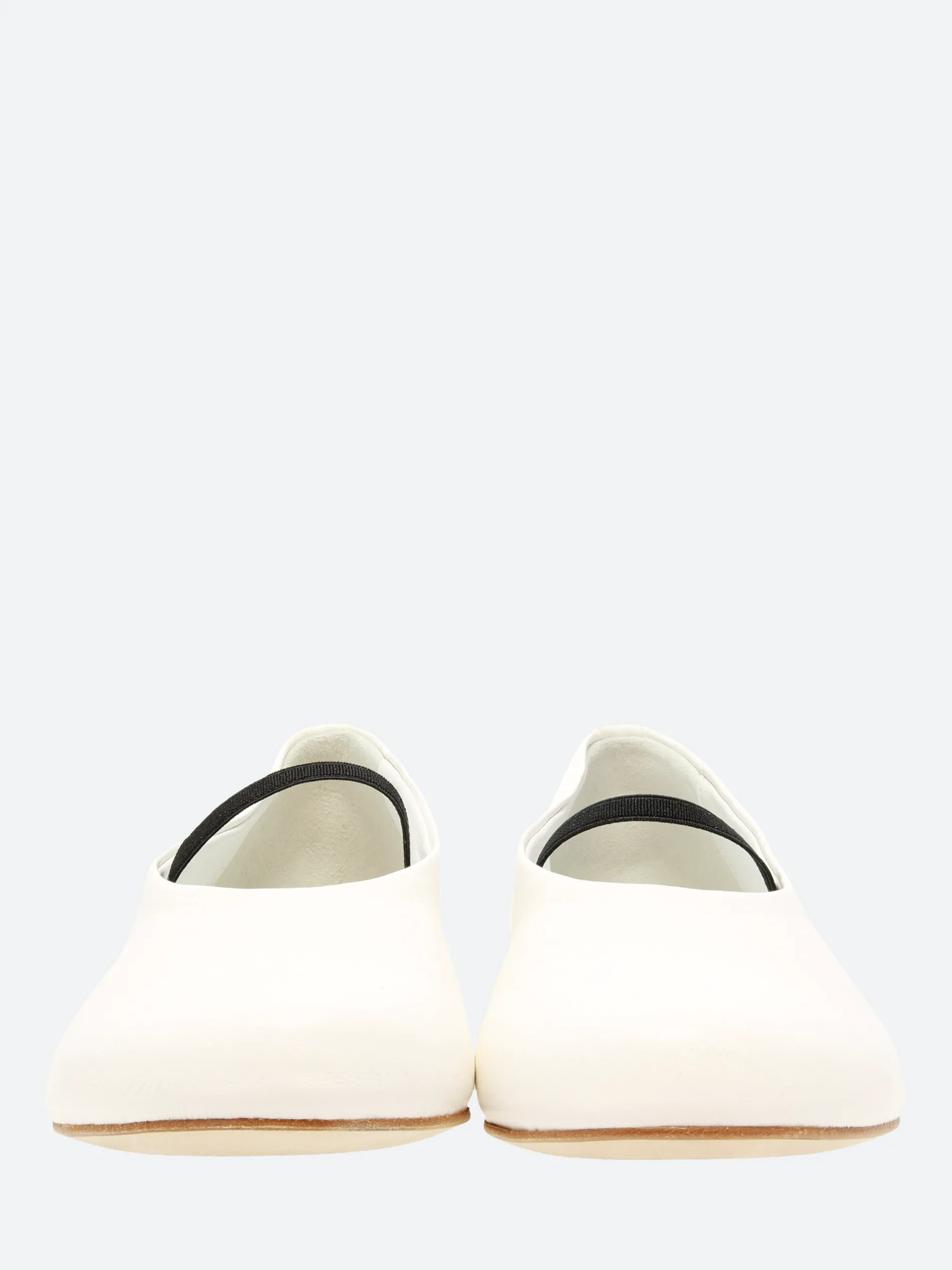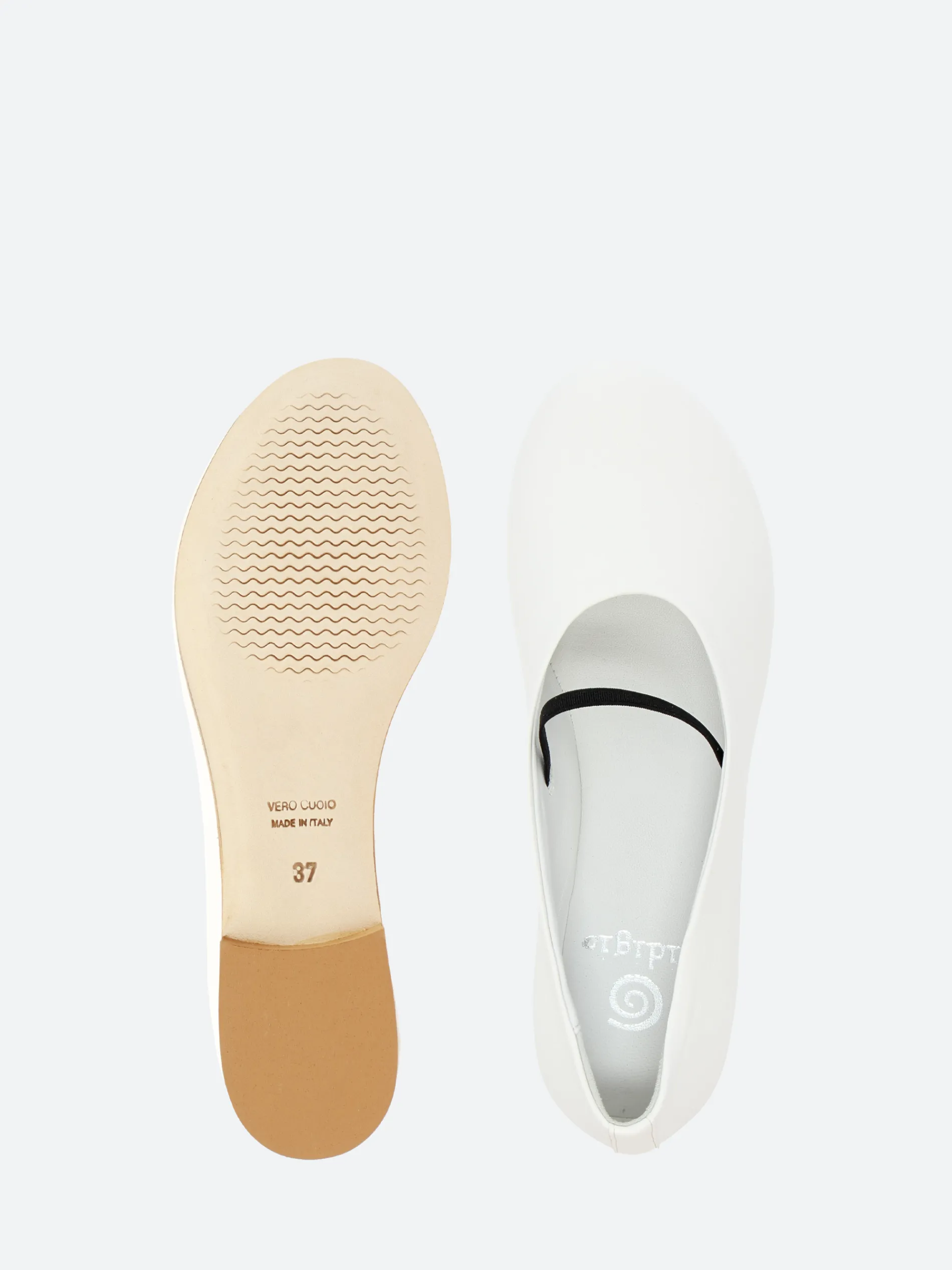 This leather ballet flat with an elastic strap is a comfortable, timeless choice that pairs perfectly with any outfit.