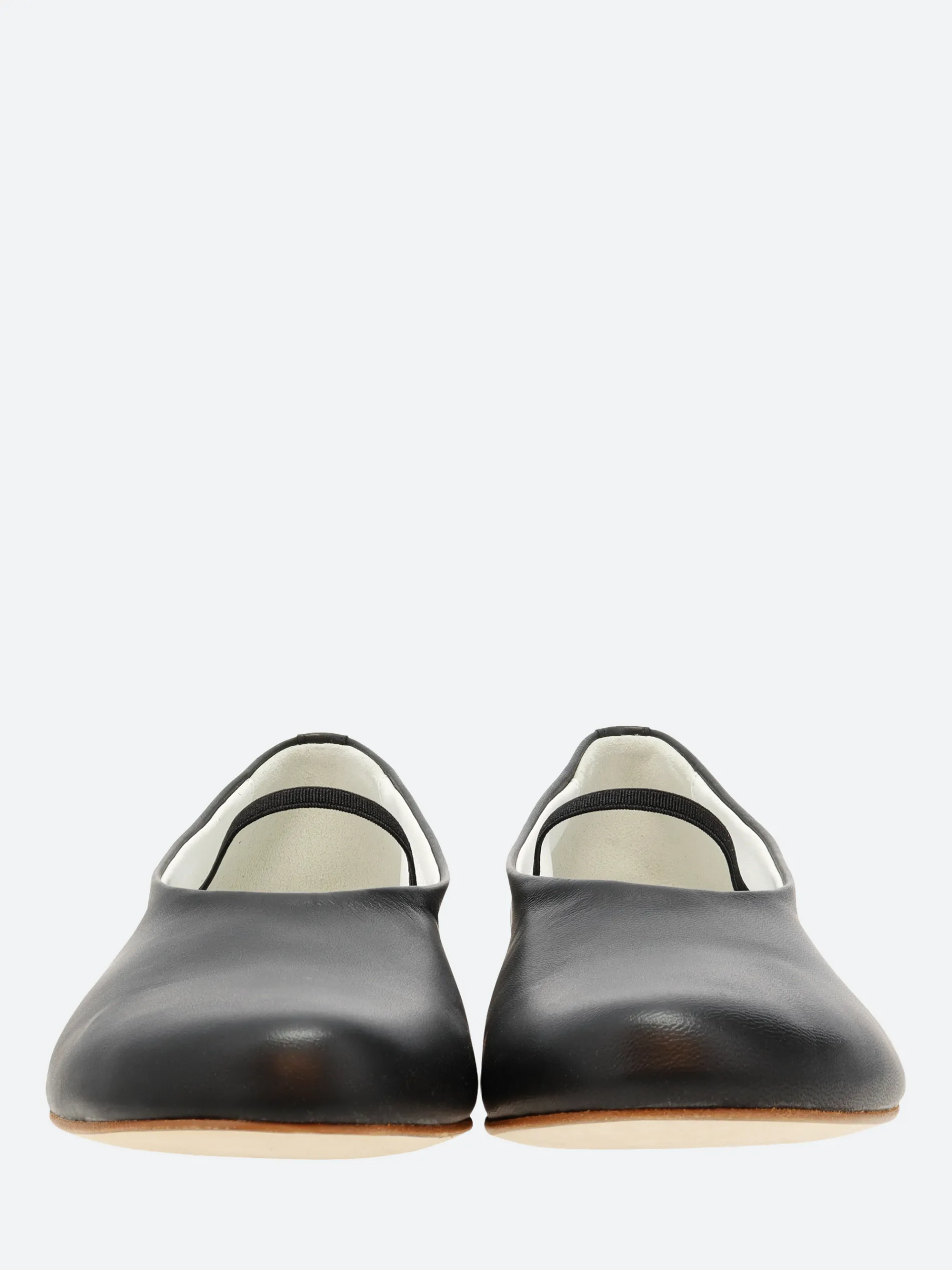 This leather ballet flat with an elastic strap is a comfortable, timeless choice that pairs perfectly with any outfit.