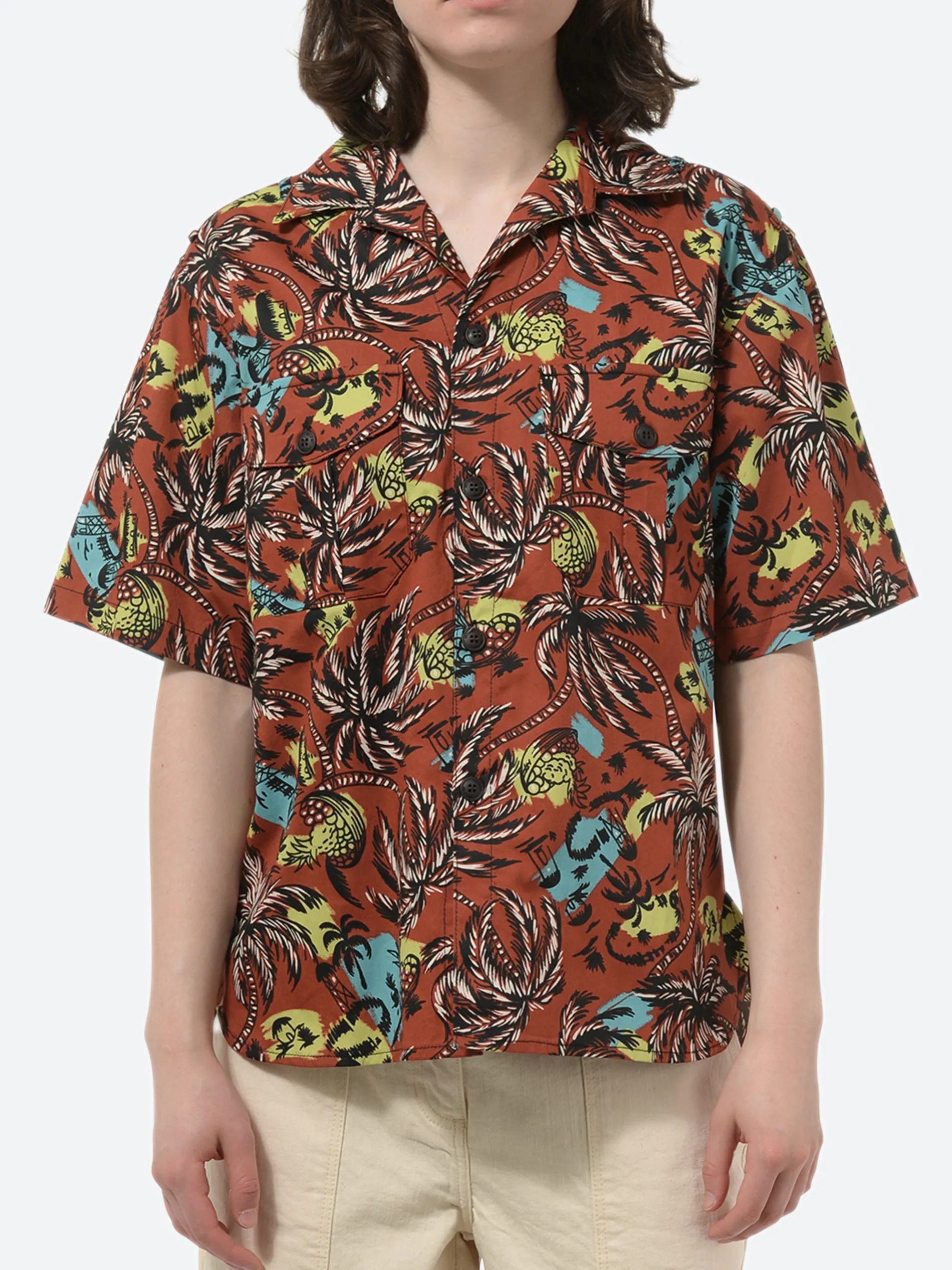 Girls of Dust loose fitting, short sleeve Cuban-style shirt made from an allover floral print.