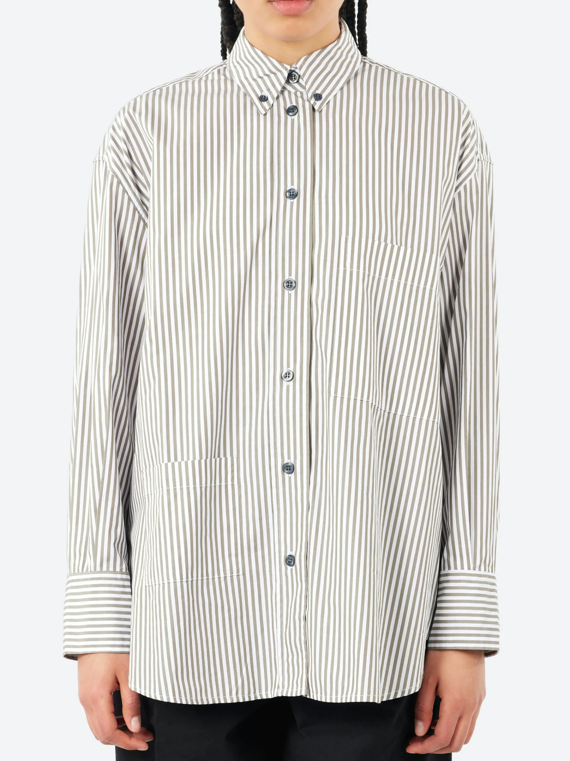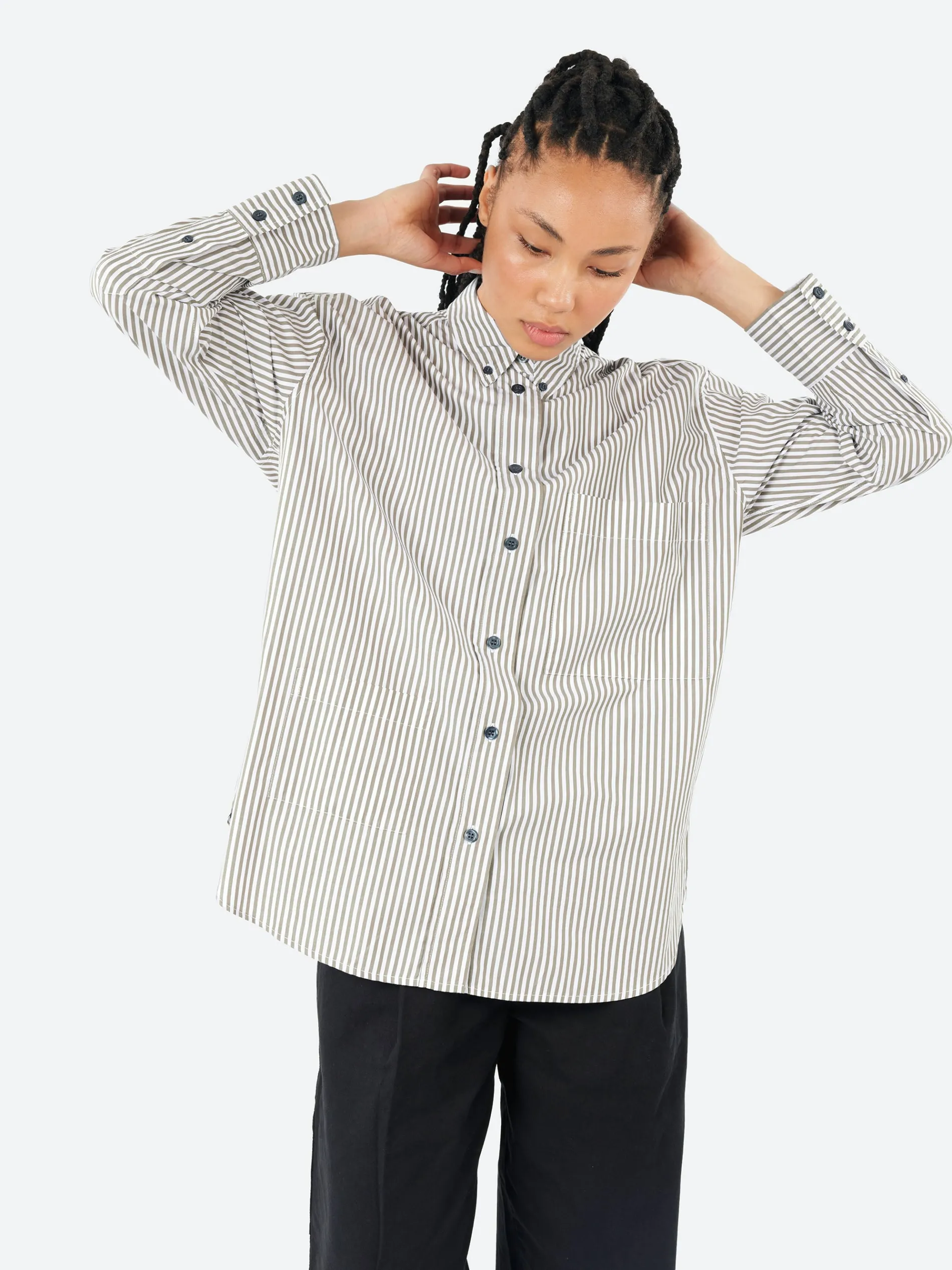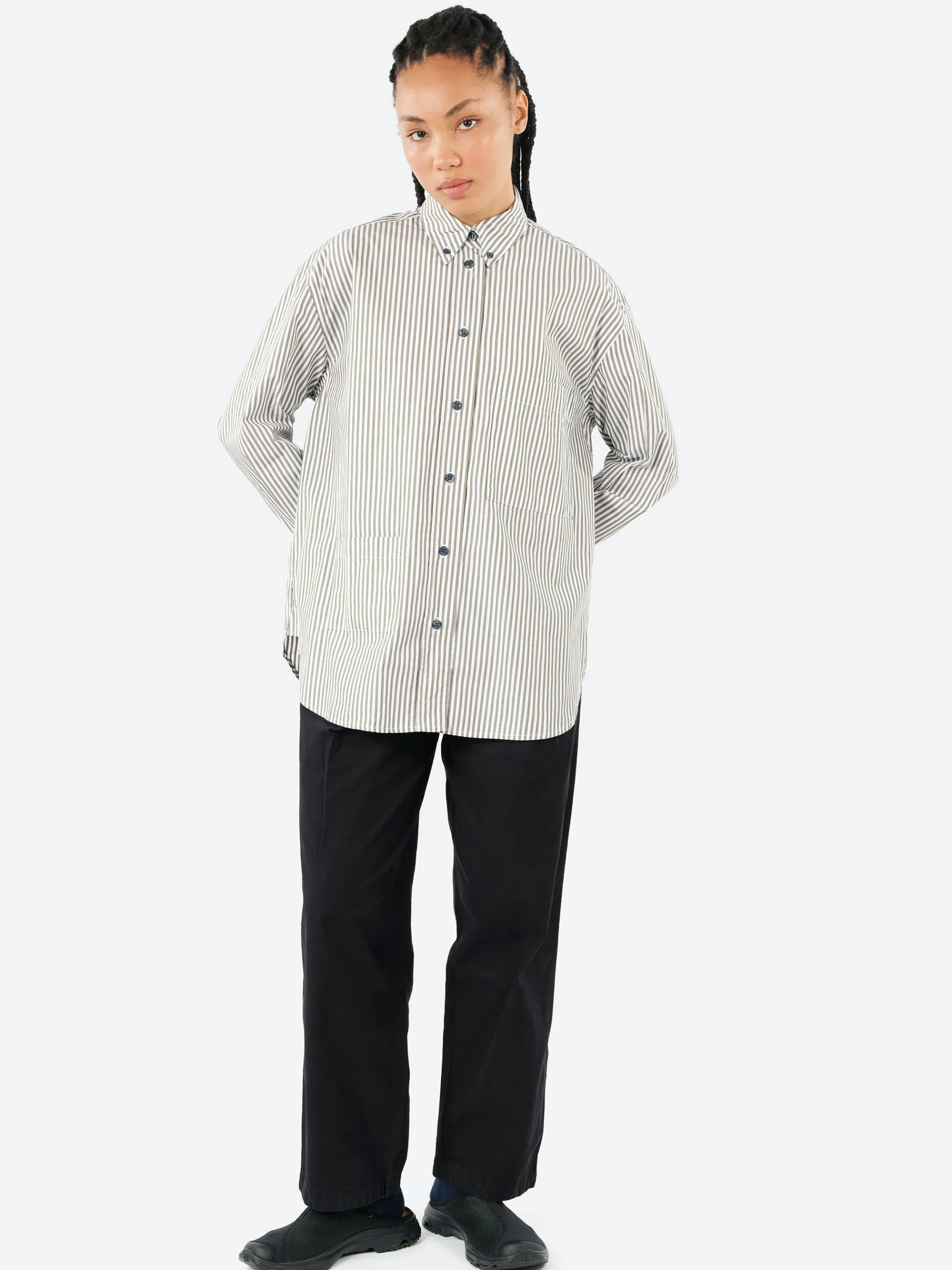 A fresh take on a true oversized men’s shirt, with a regular cut, asymmetrical pockets, made from a white broken twill cotton and finished with corozo buttons, it’s already a keeper.