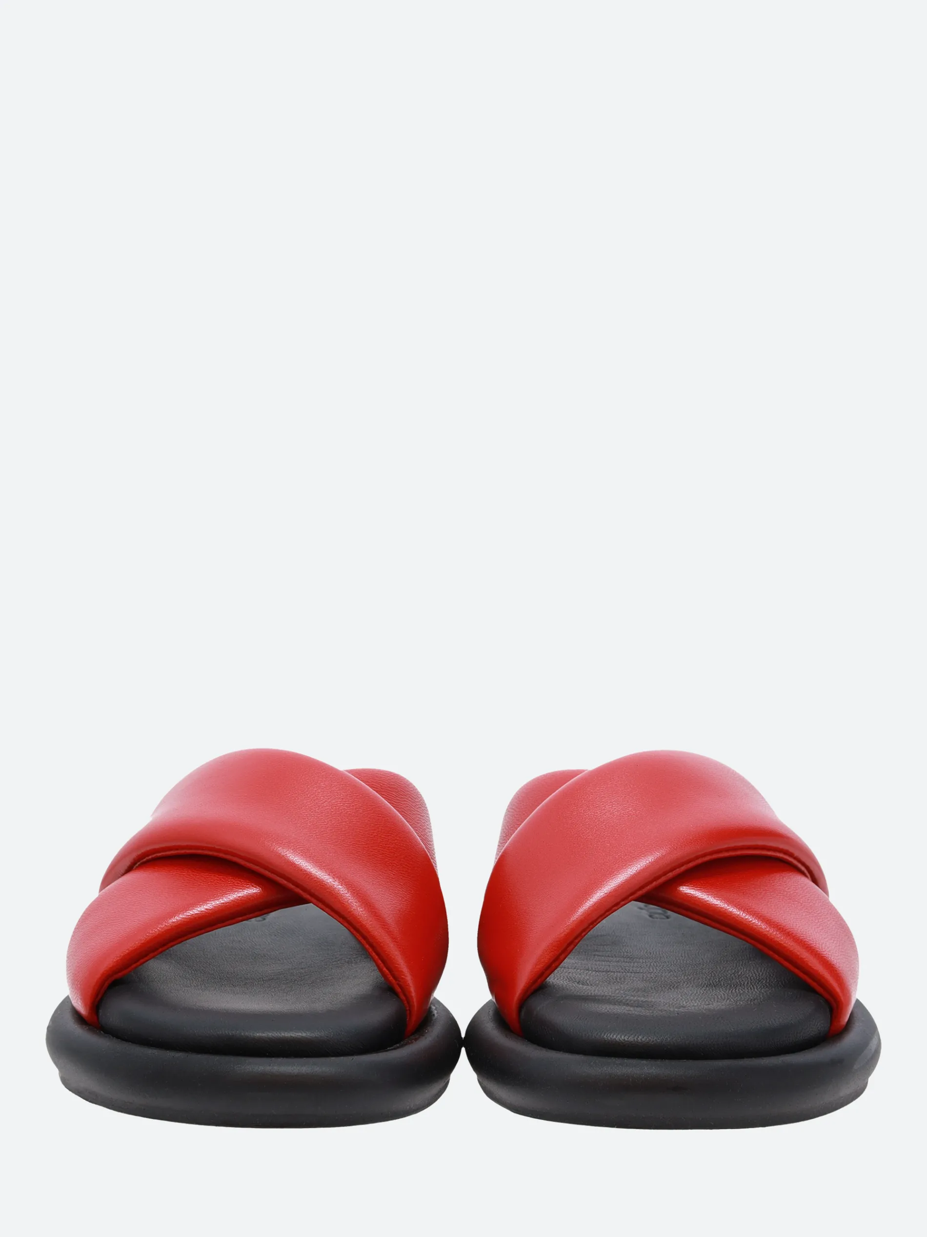 gravitypope wide crisscross straps at the vamp with a cushioned leather footbed for added comfort.