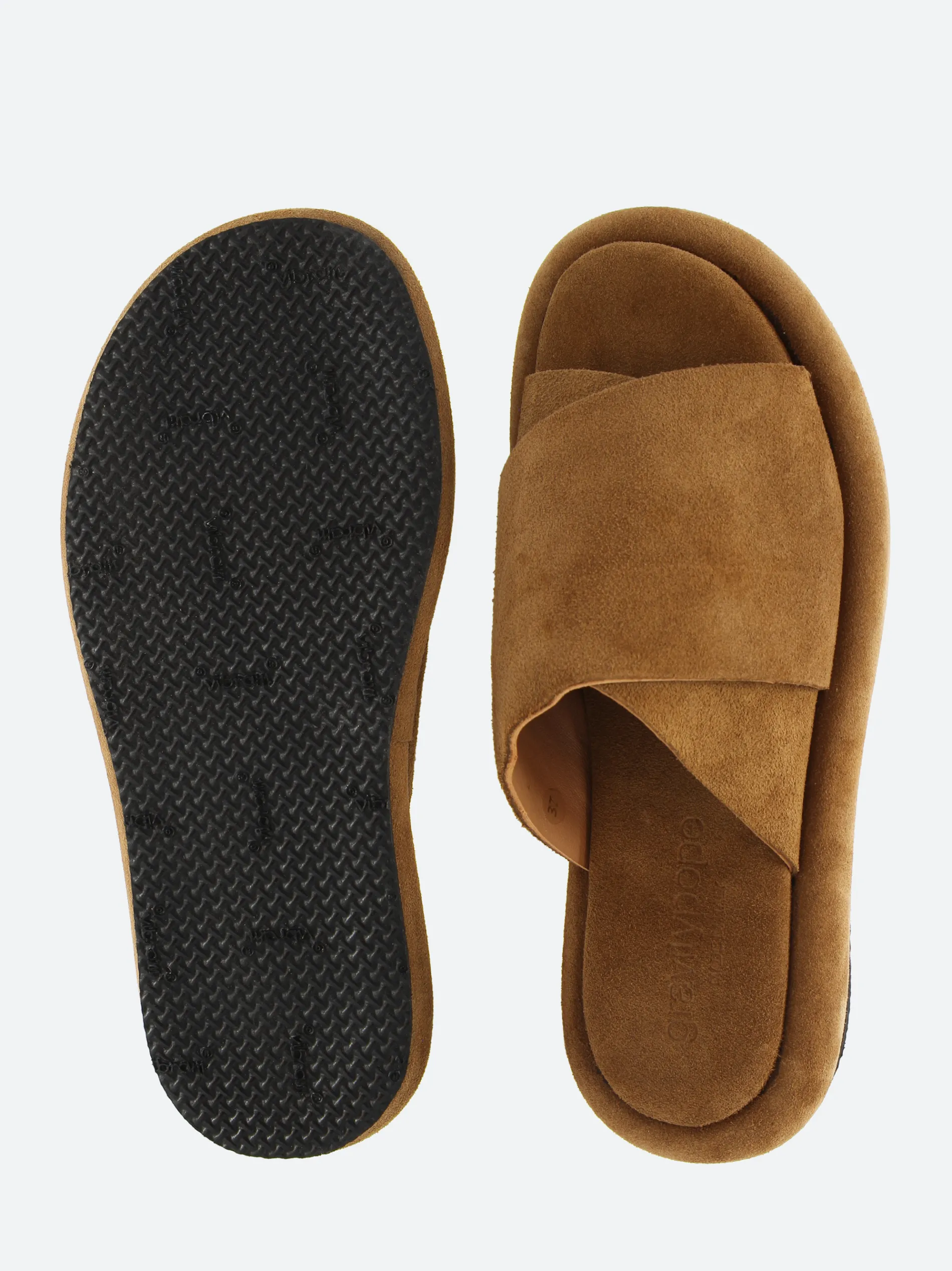 gravitypope wide cross straps at the vamp with a cushioned suede footbed for added comfort.
