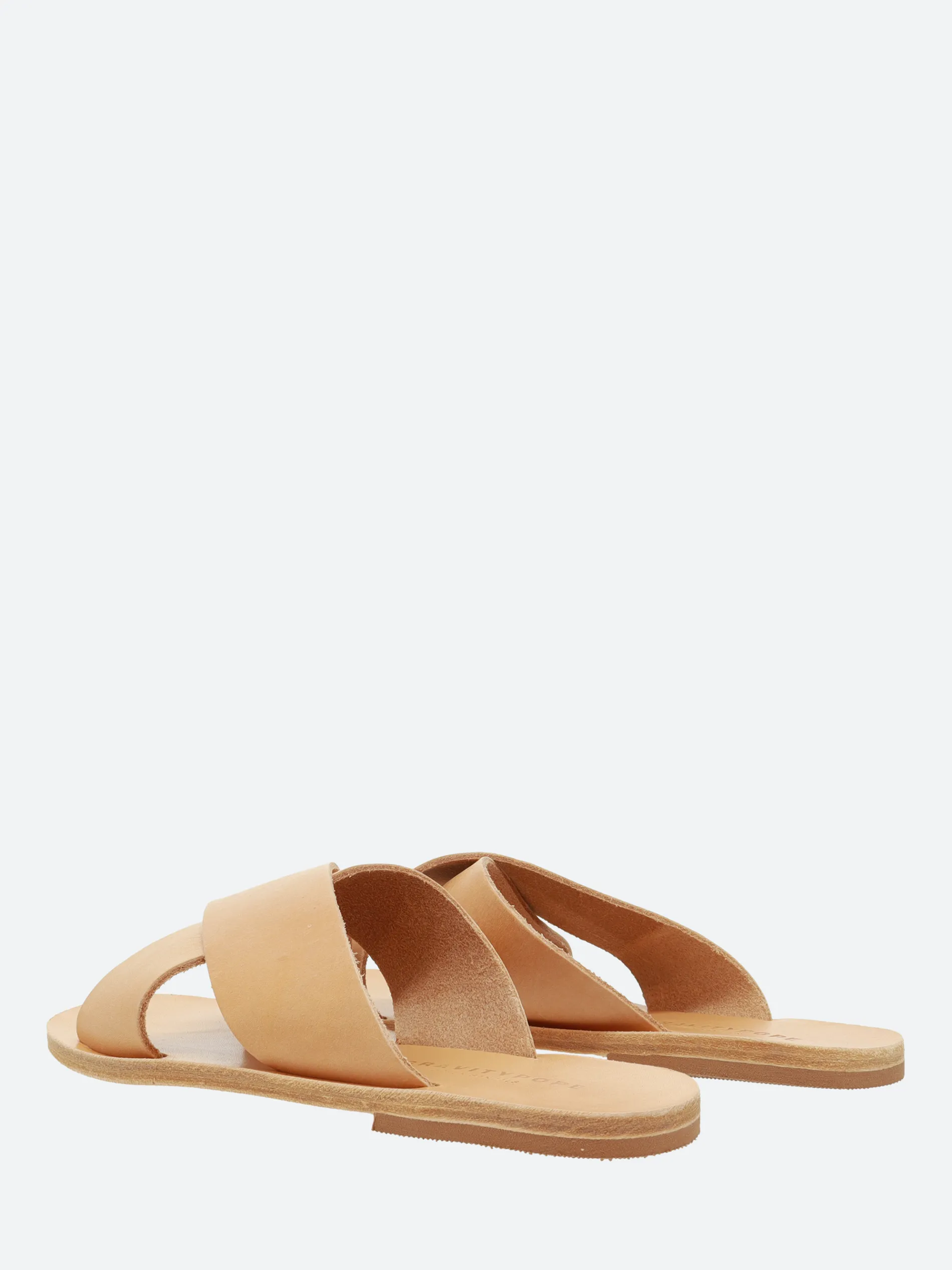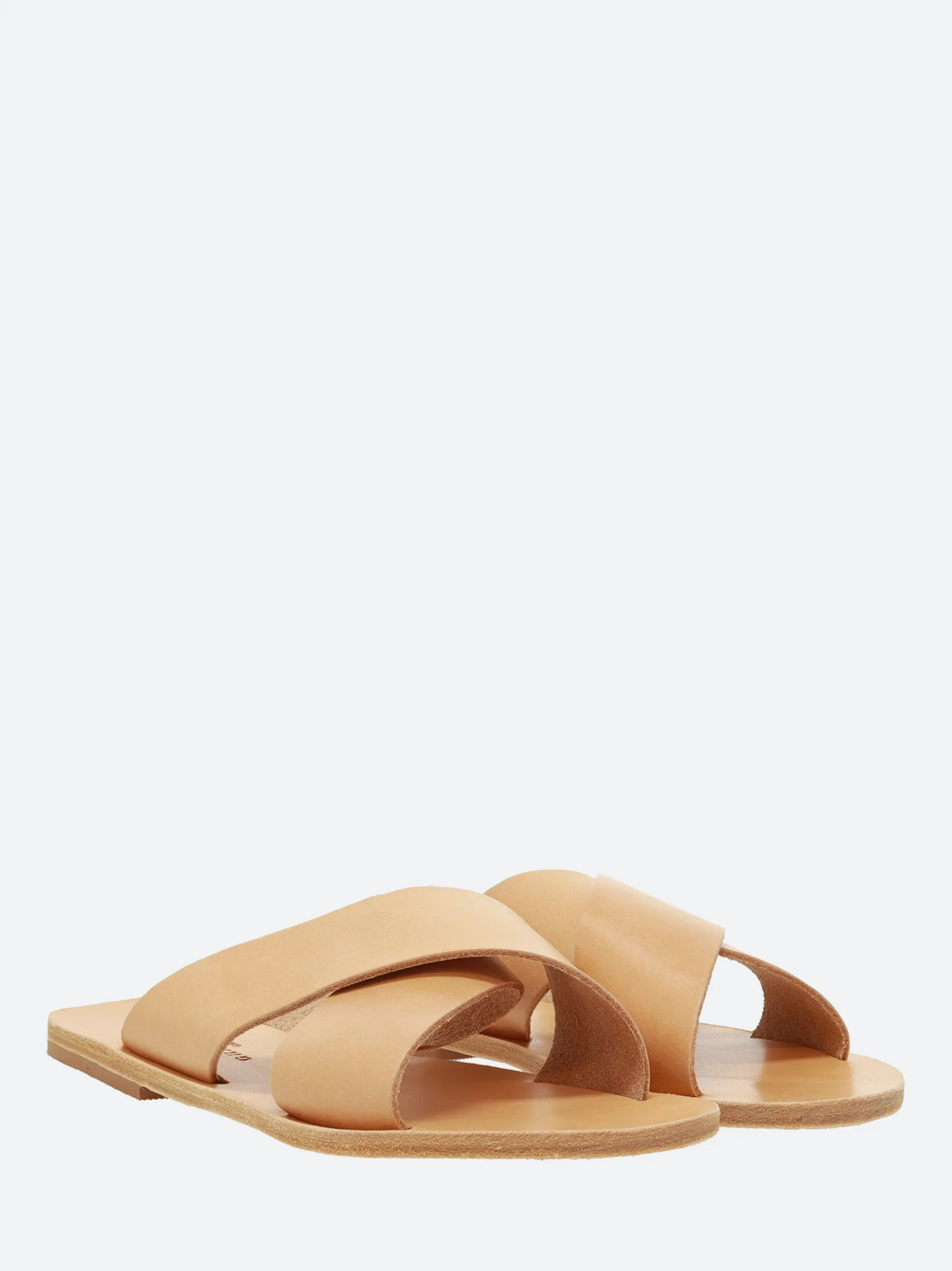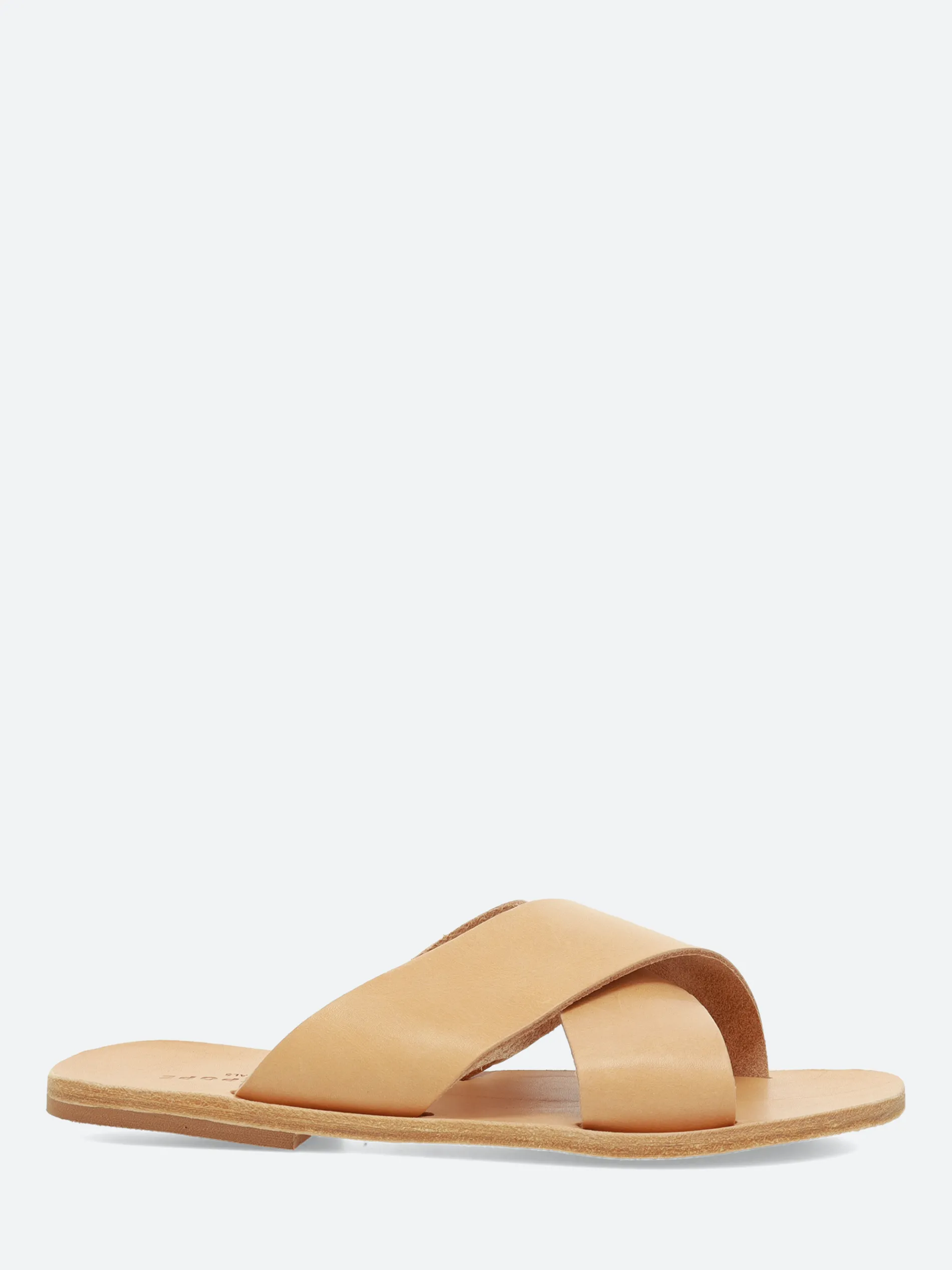 A timeless, minimal cross-strap slide sandal, made from an elegant smooth leather.