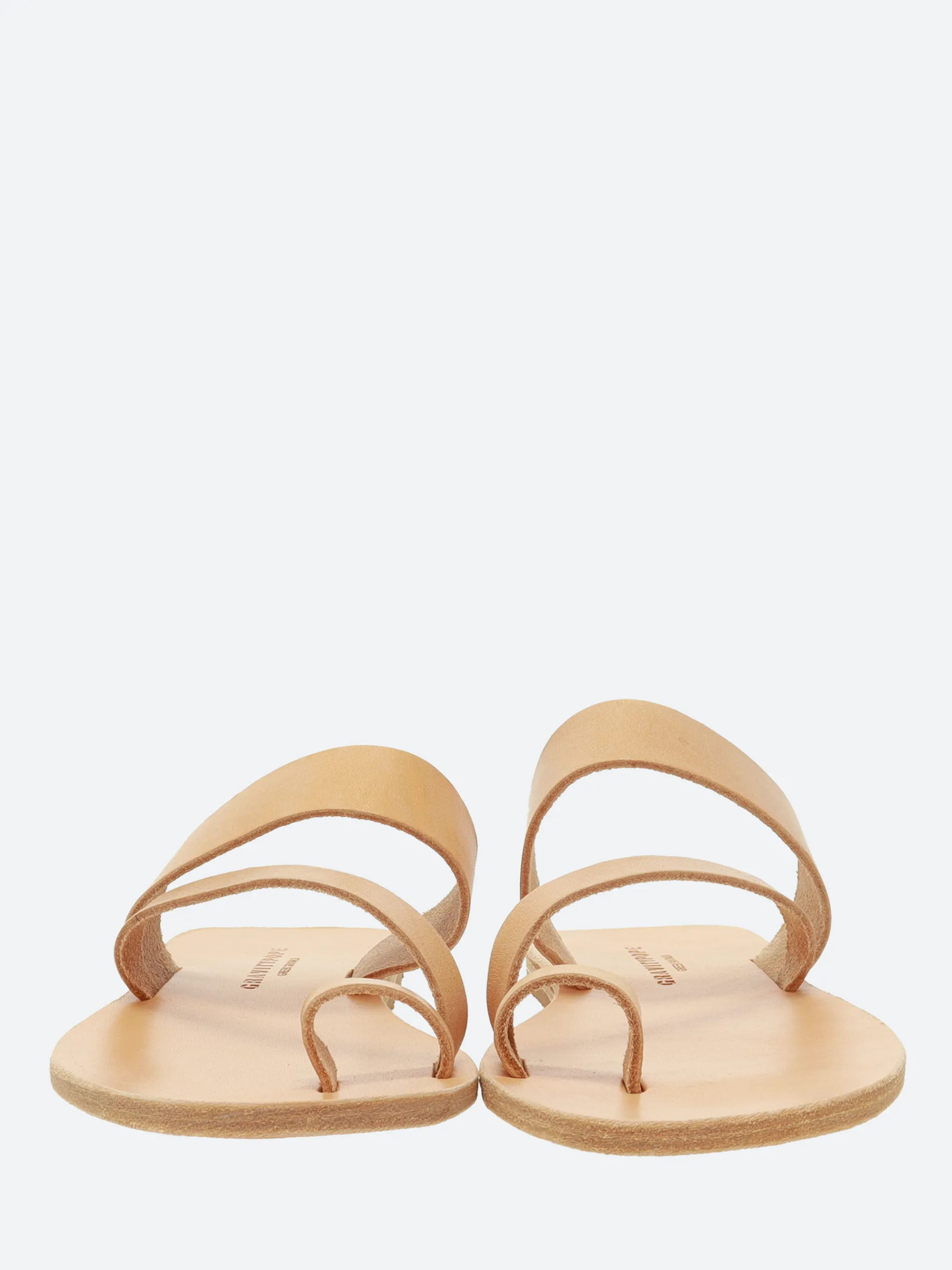A slip-on thong sandal, with a fixed cross-strap at the vamp, made from an elegant smooth leather.