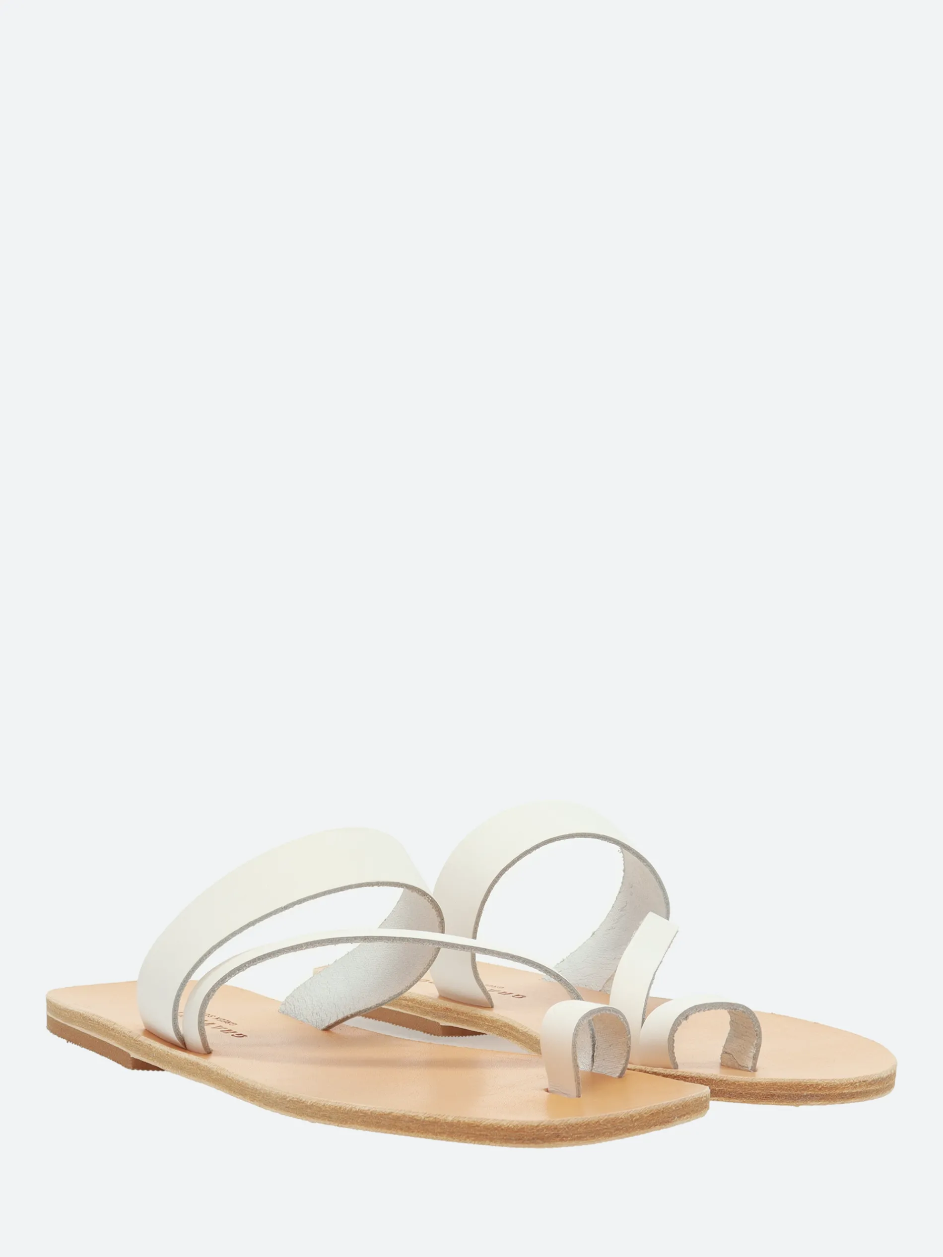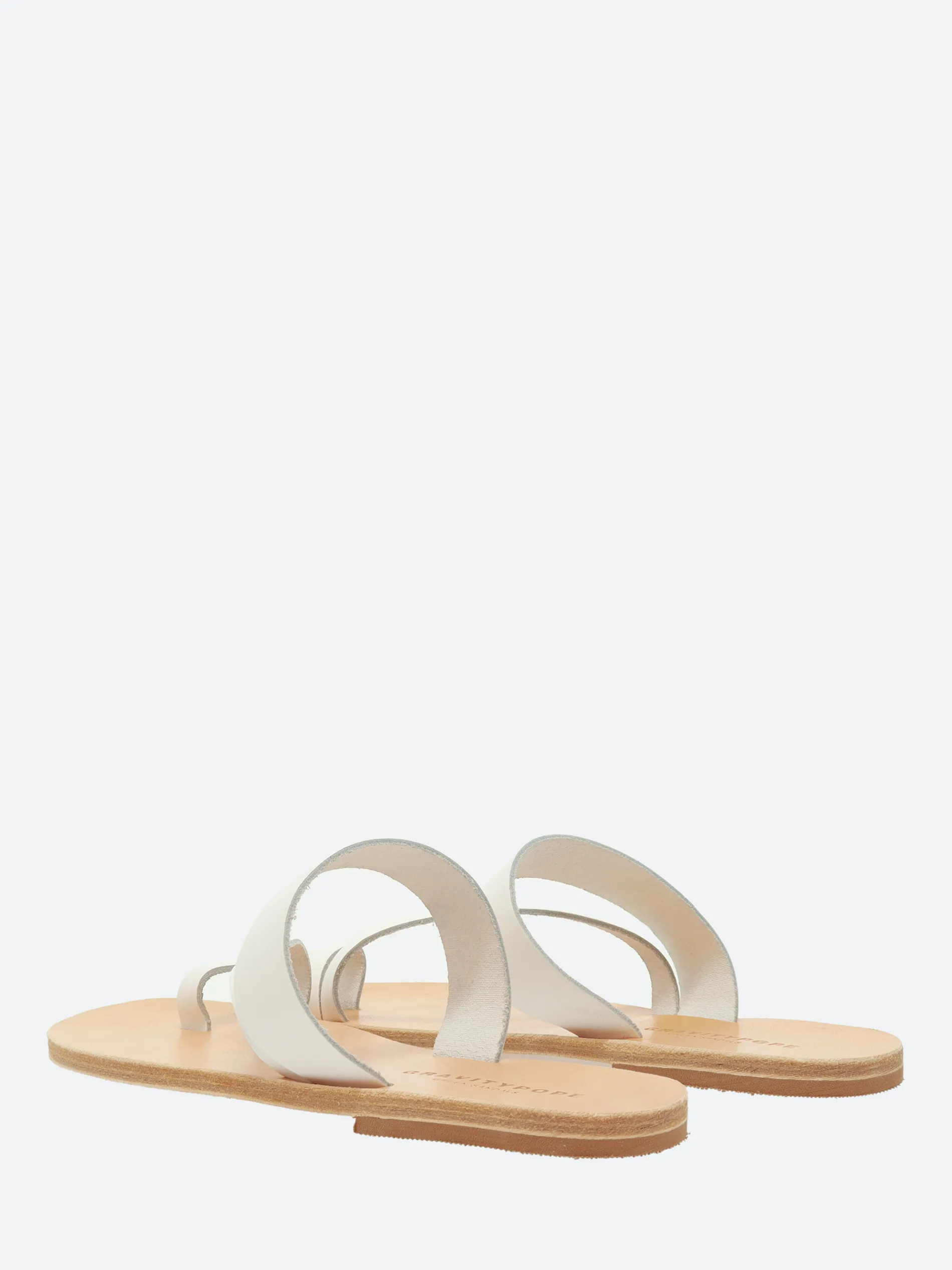 A slip-on thong sandal, with a fixed cross-strap at the vamp, made from an elegant smooth leather.