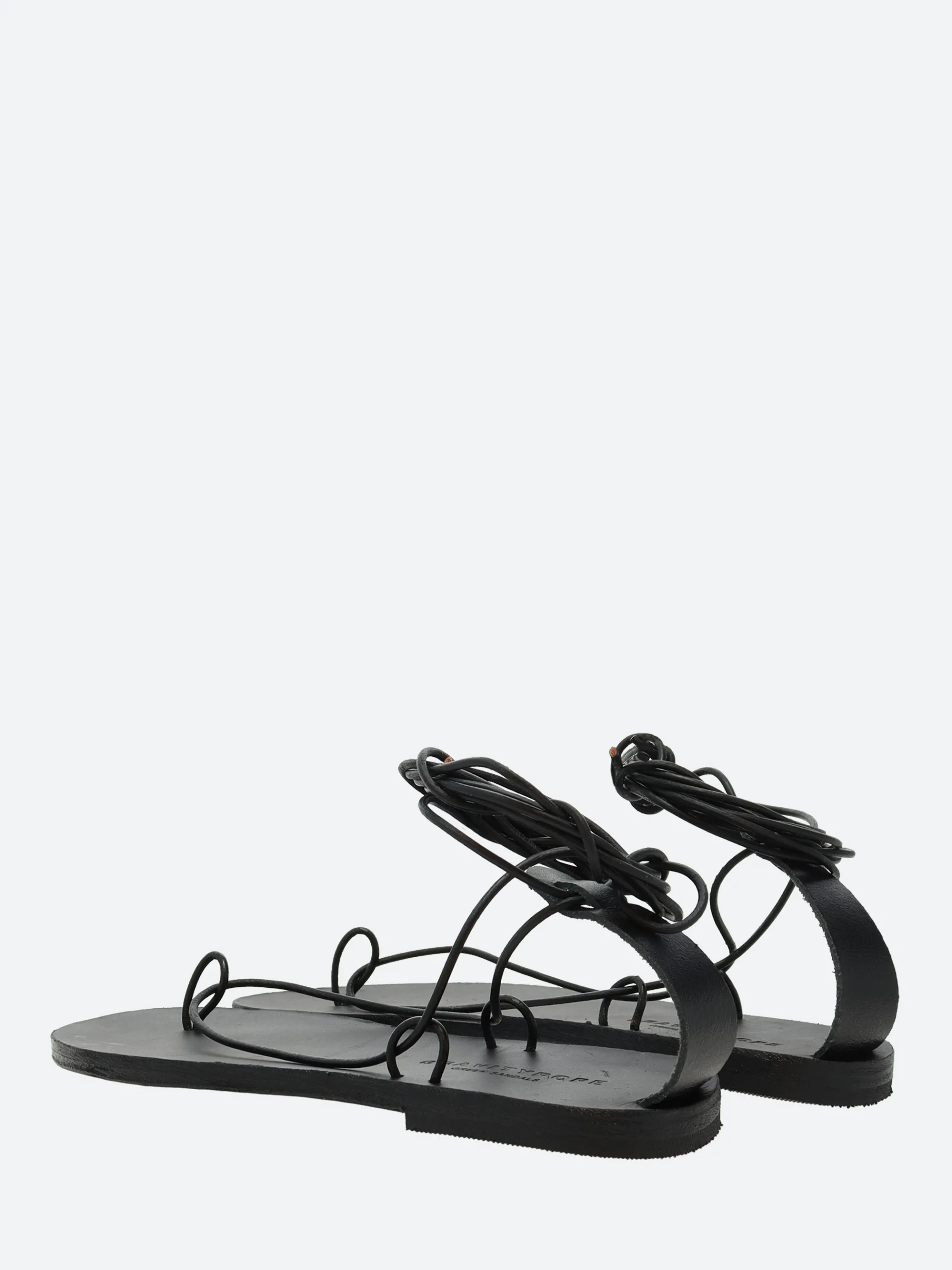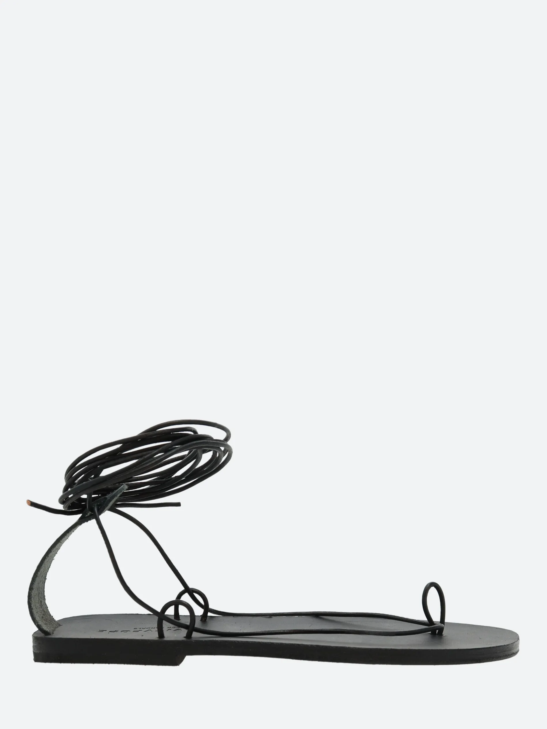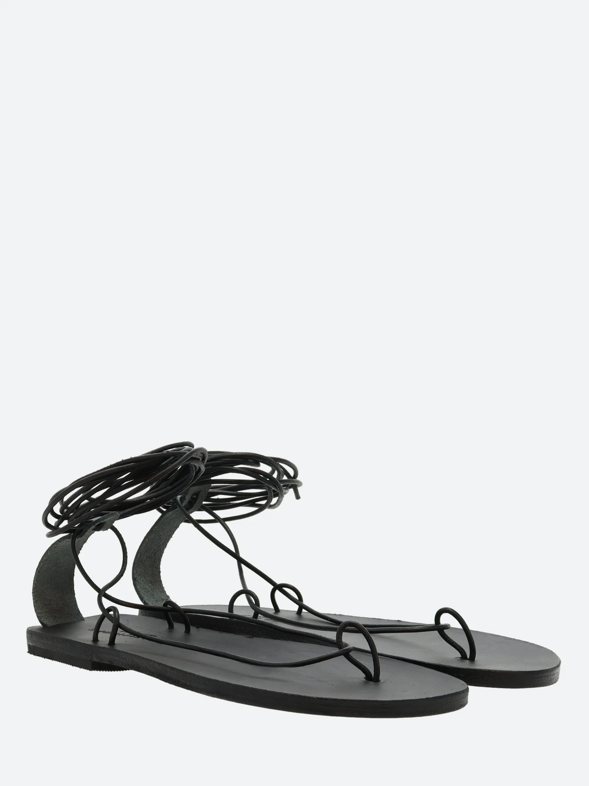 A minimalist gladiator sandal with a thin wrap-around ankle strap, made from soft leather.