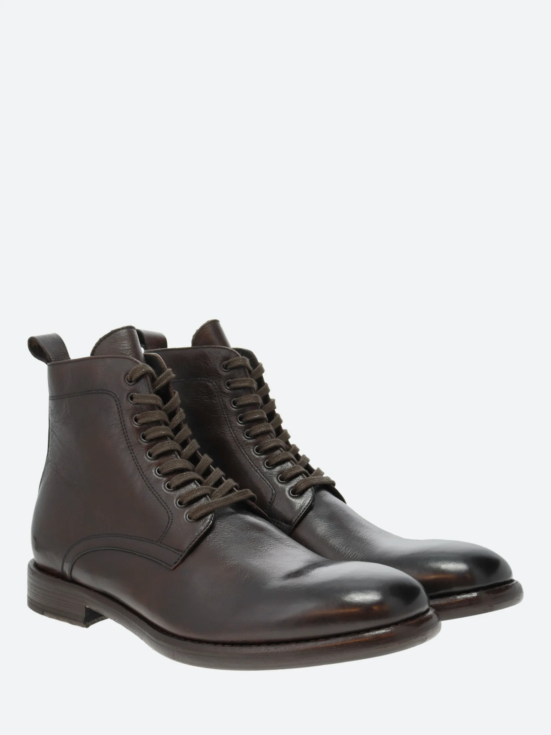 gravitypope Marco lace-up derby boots in polished brown leather. Stitched leather sole with rubber pad. Handcrafted in Italy.