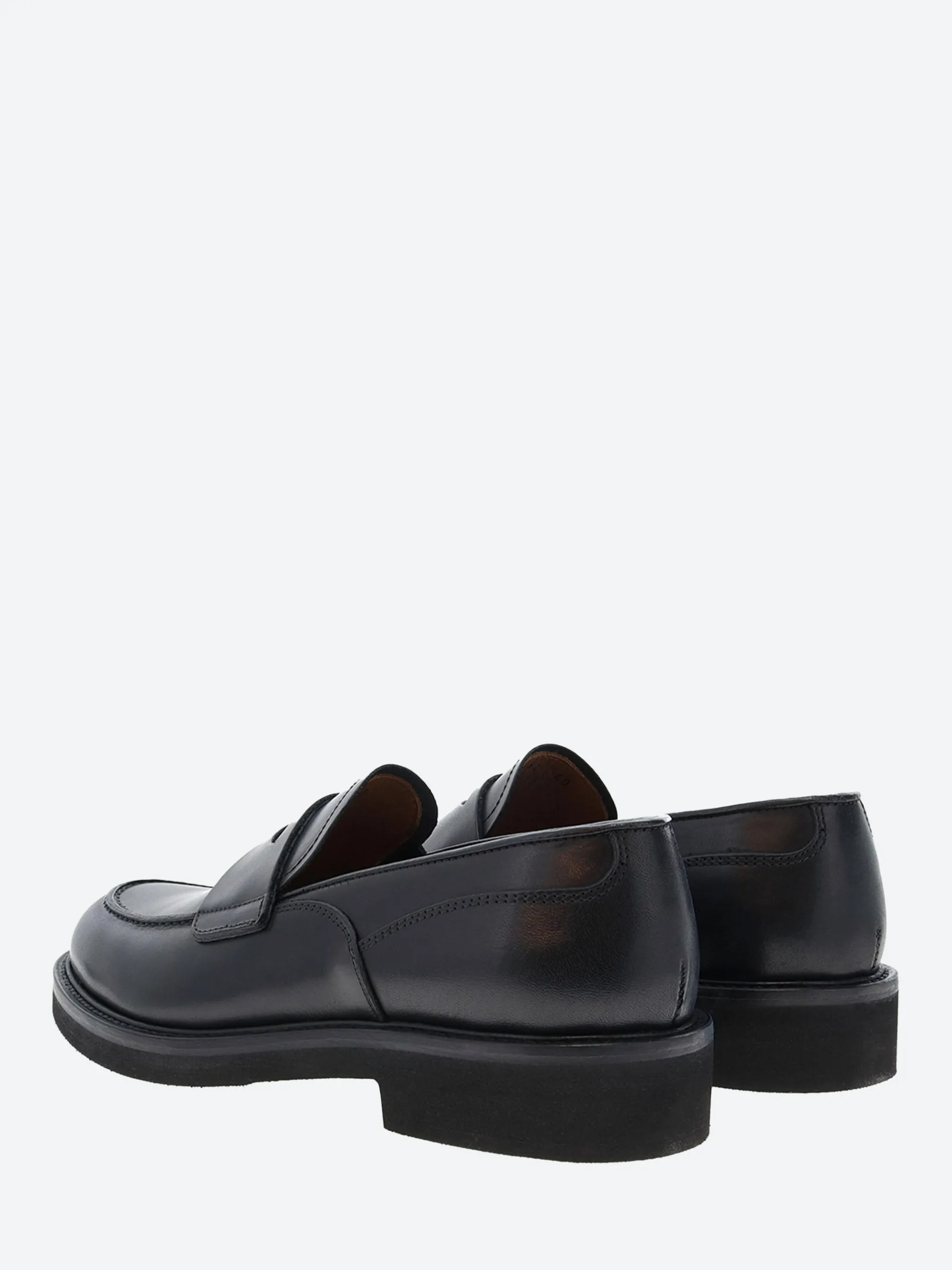 gravitypope Michele apron loafer in polished black leather. Lightweight EVA sole and handcrafted in Italy.