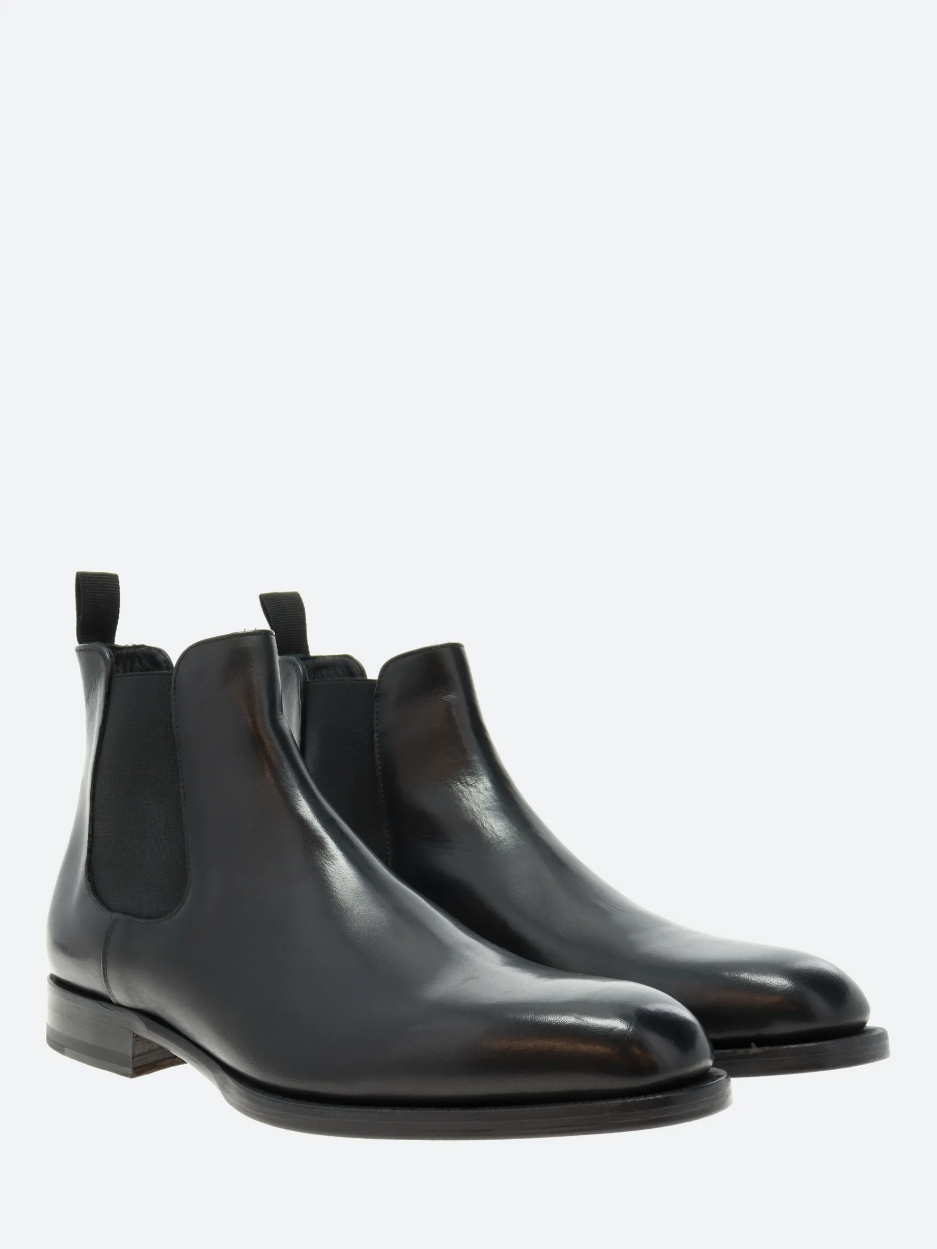 The gravitypope Chelsea boot features a long, slightly square silhouette crafted in Italy from smooth Vitello leather and fully leather-lined for a luxurious feel. The leather sole is enhanced with a rubber toppy on the forefoot and heel, providing added comfort and durability. Minimalist detailing brings maximum versatility to this design, making it ideal for various outfits and occasions. Traditional goring in the shaft ensures an easy fit, combining timeless style with practicality for an essential addition to any wardrobe.