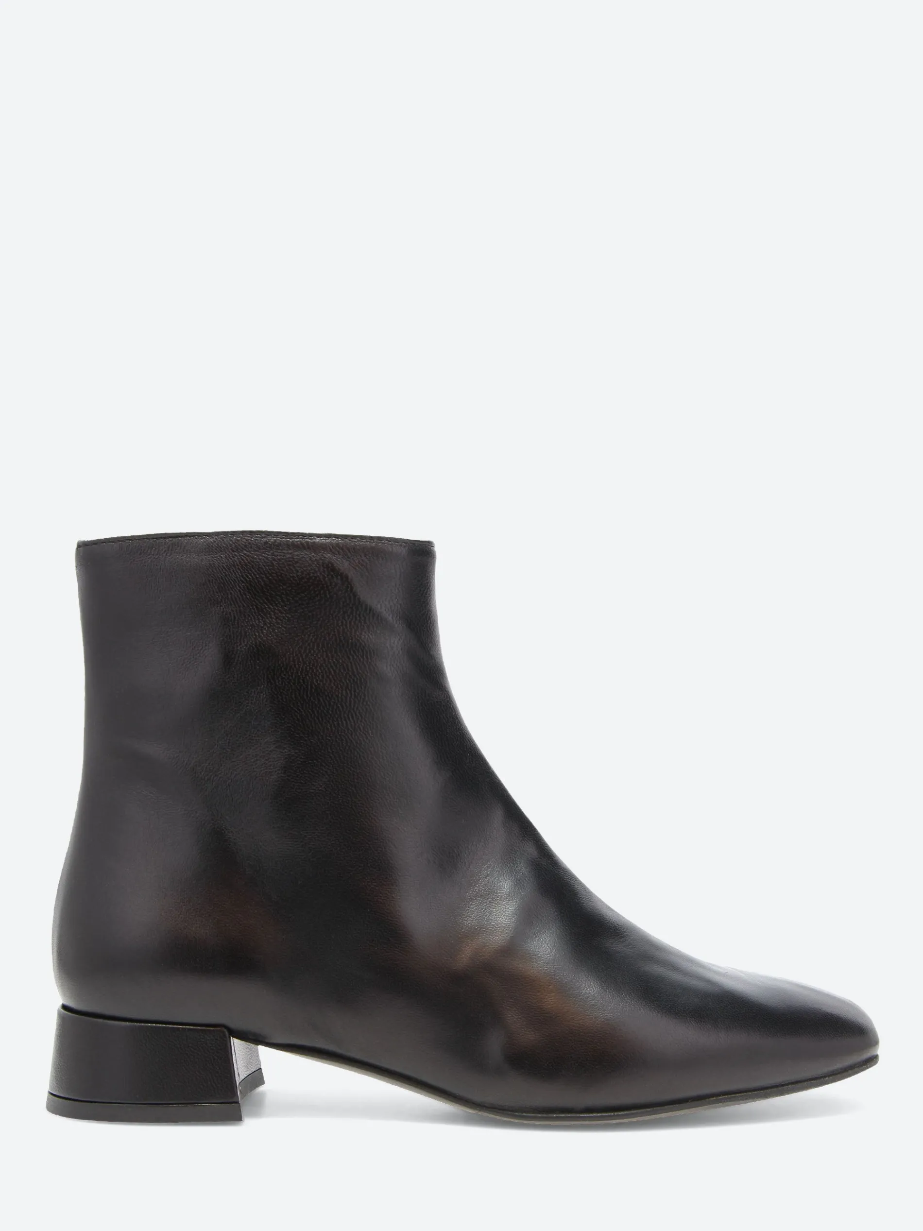 Stripped to the bare essentials, the gravitypope Nama is a versatile low heeled boot with a modern square toe. Crafted from rich Italian leather, this boot features a side zip closure for effortless slip-on access.