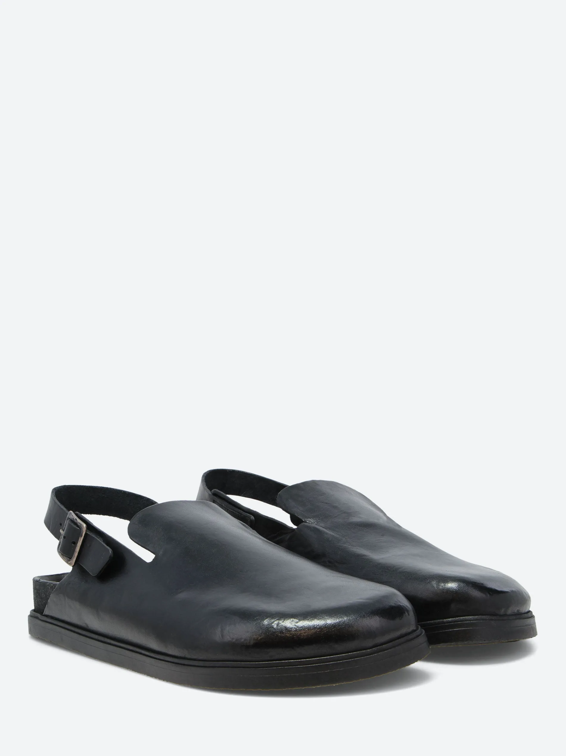 gravitypope Oz is a handcrafted leather mule that combines comfort and style. Designed with a closed-toe and back-strap silhouette, it offers a secure fit and easy wearability. The adjustable buckle strap ensures a personalized fit, while the contoured footbed provides arch support for all-day comfort. Ideal for casual outings, this clog is a versatile addition to any wardrobe.