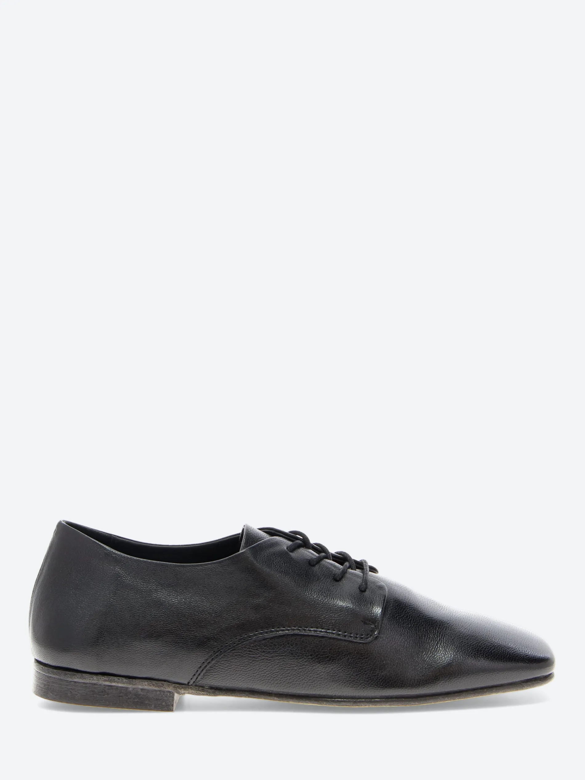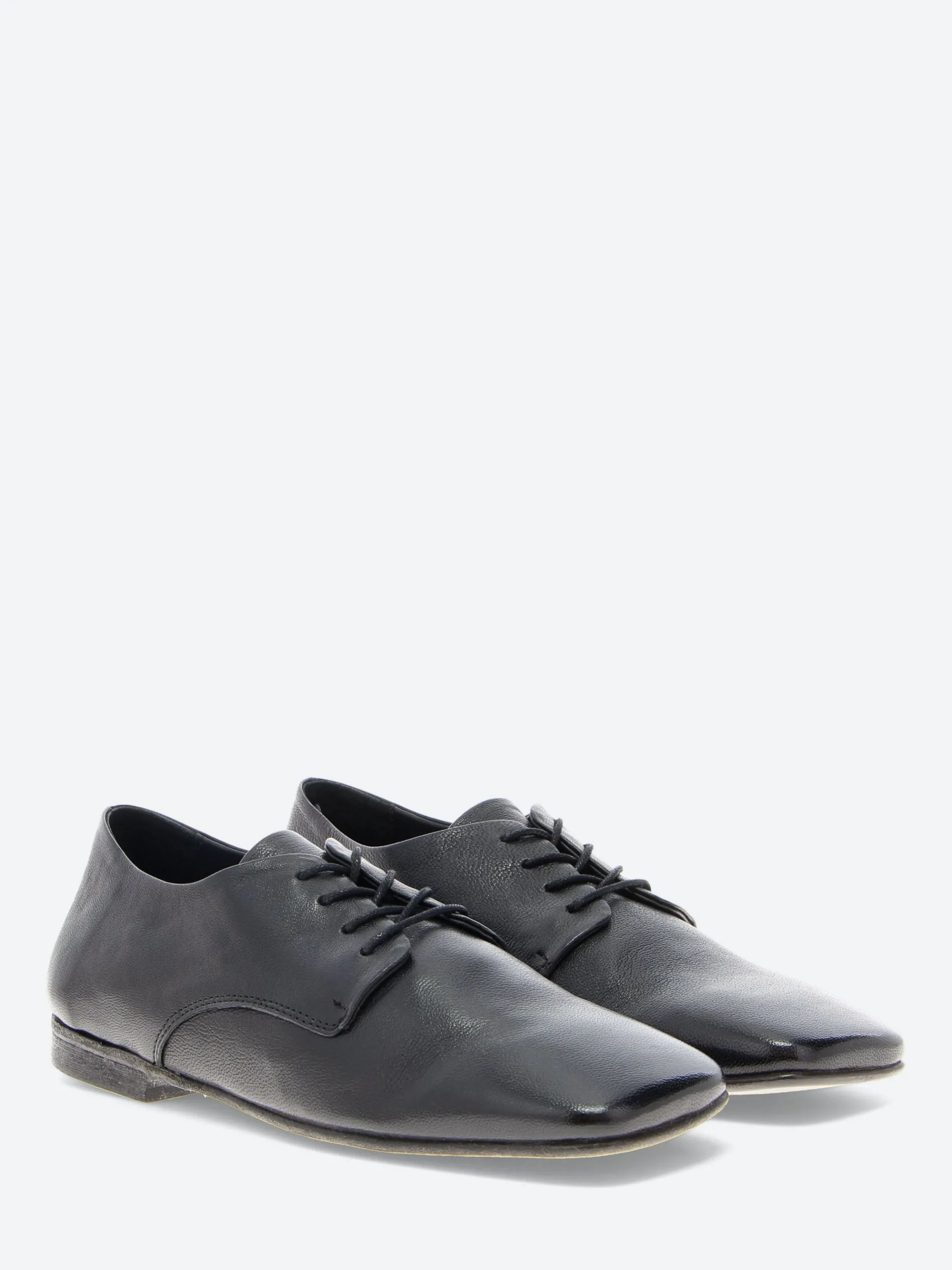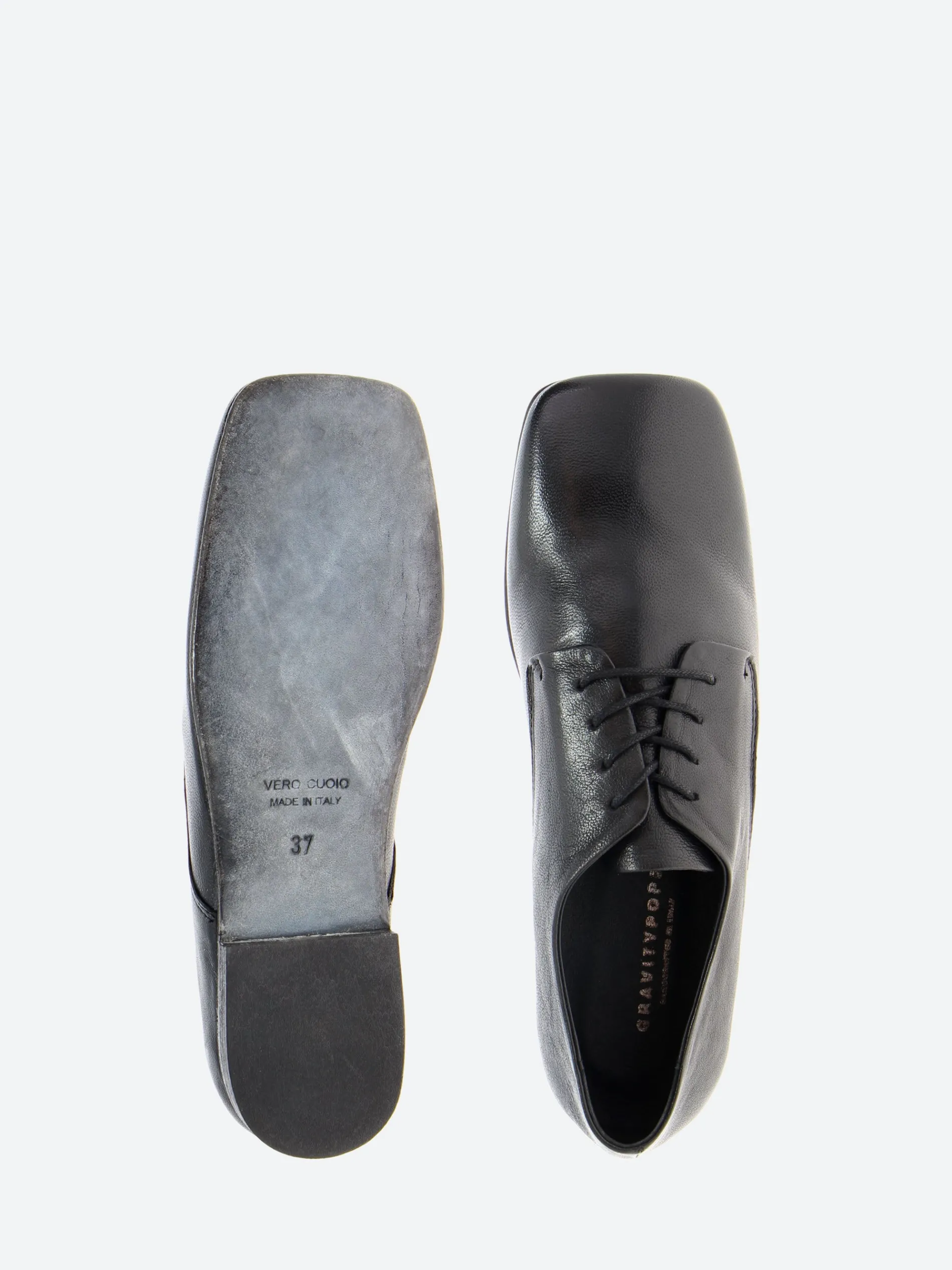 The gravitypope Rainor shoes are handmade in Italy from smooth yet shiny Nappa leather, offering a sleek and polished look. Inspired by dance shoes, they feature cotton laces and a contemporary square toe, blending comfort with style. Fully lined in smooth leather for added luxury, these shoes also feature a flat heel, providing all-day comfort and versatility.
