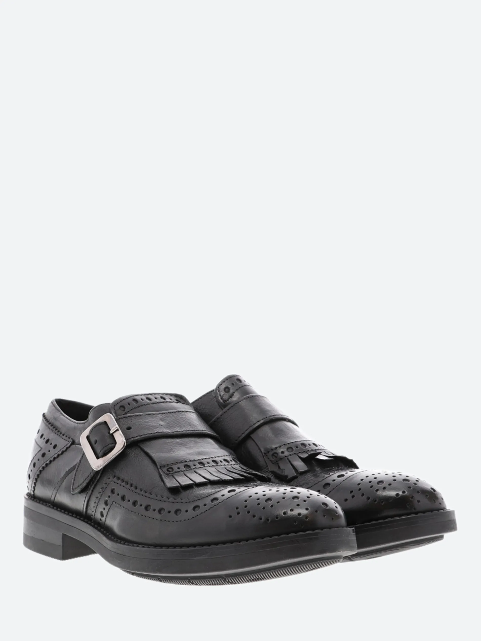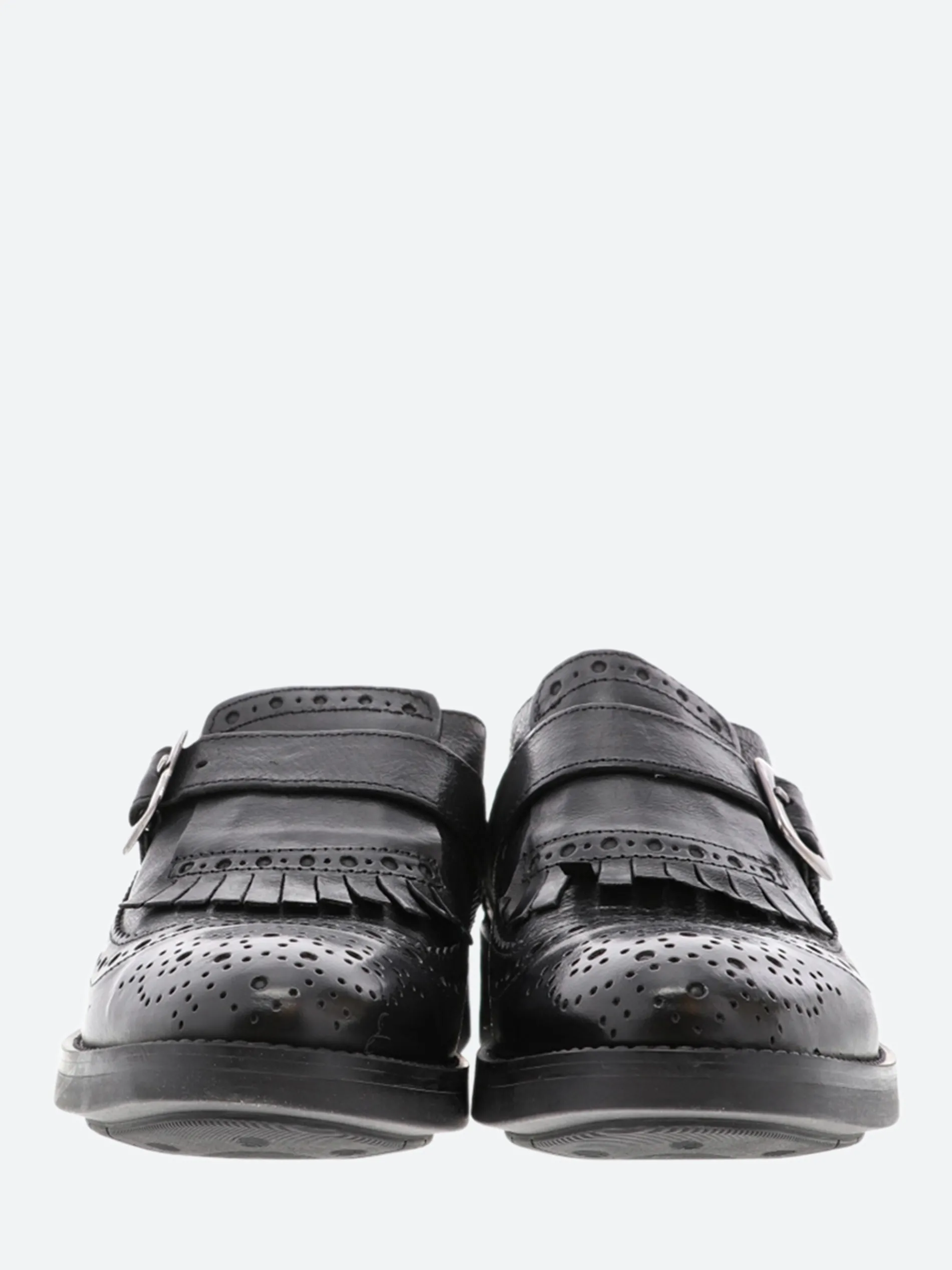 The Rime is a unique combination of brogue and monk strap. Finished with kiltie fringe trim, these shoes have an intentionally vintage look.
