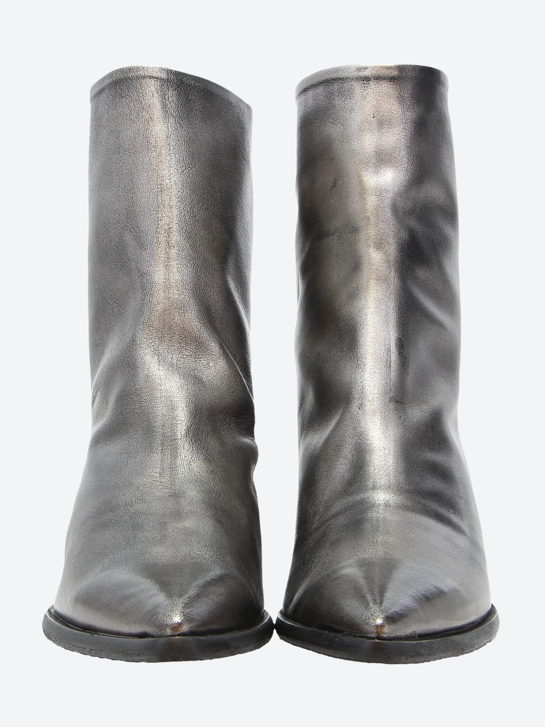 Classic slip-on boot with a Cuban heel made from sleek leather with pointed toe detailing.
