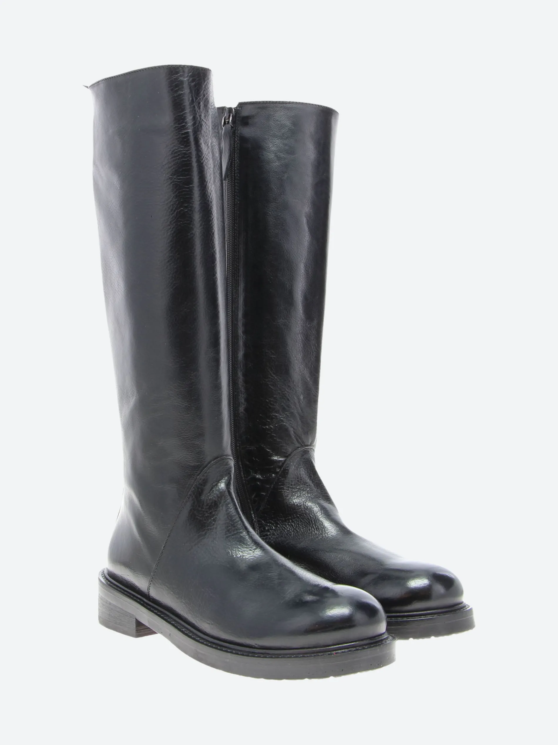 gravitypope Ronan rich leather knee-high boots with a full-length zipper and timeless appeal.