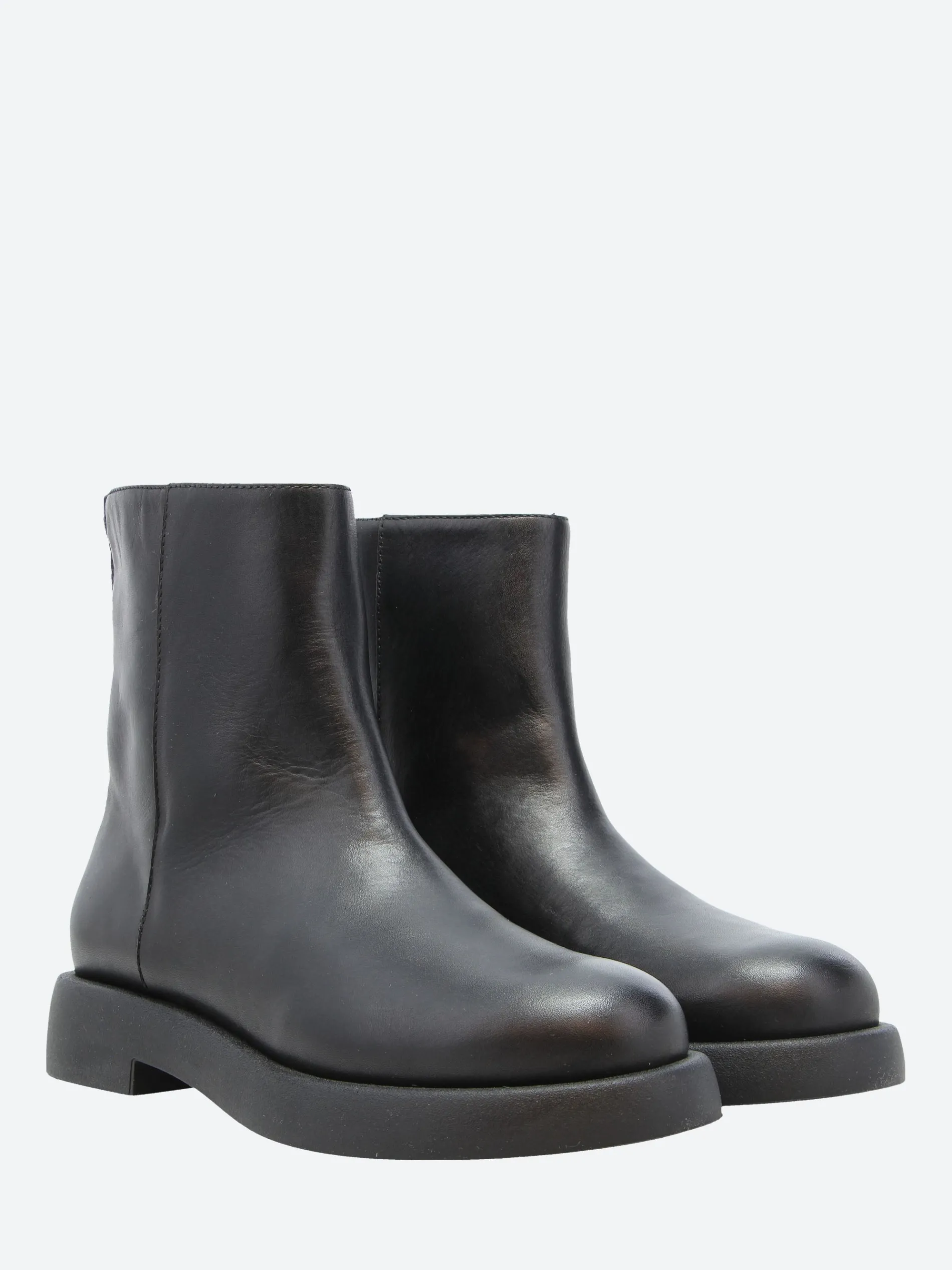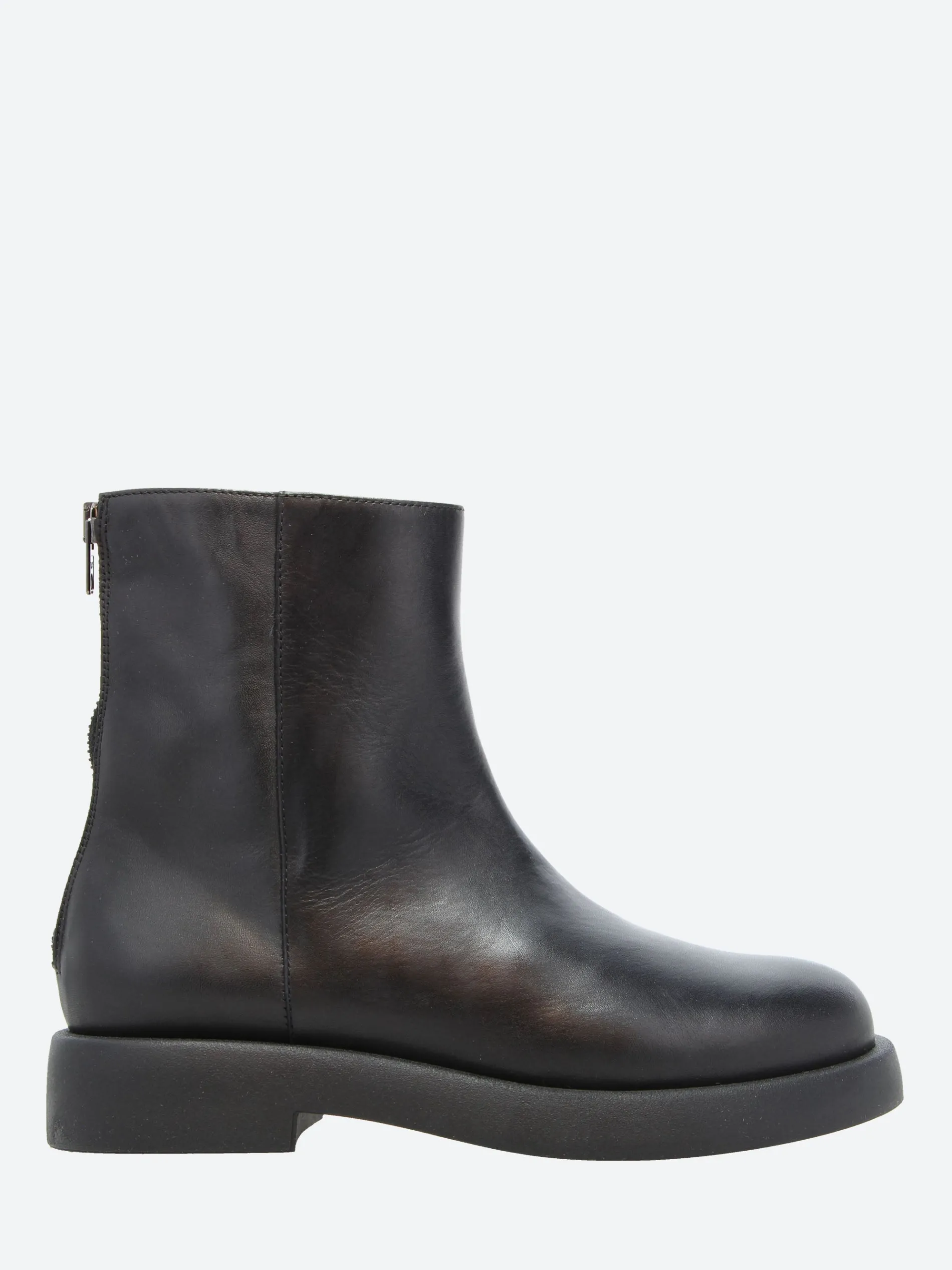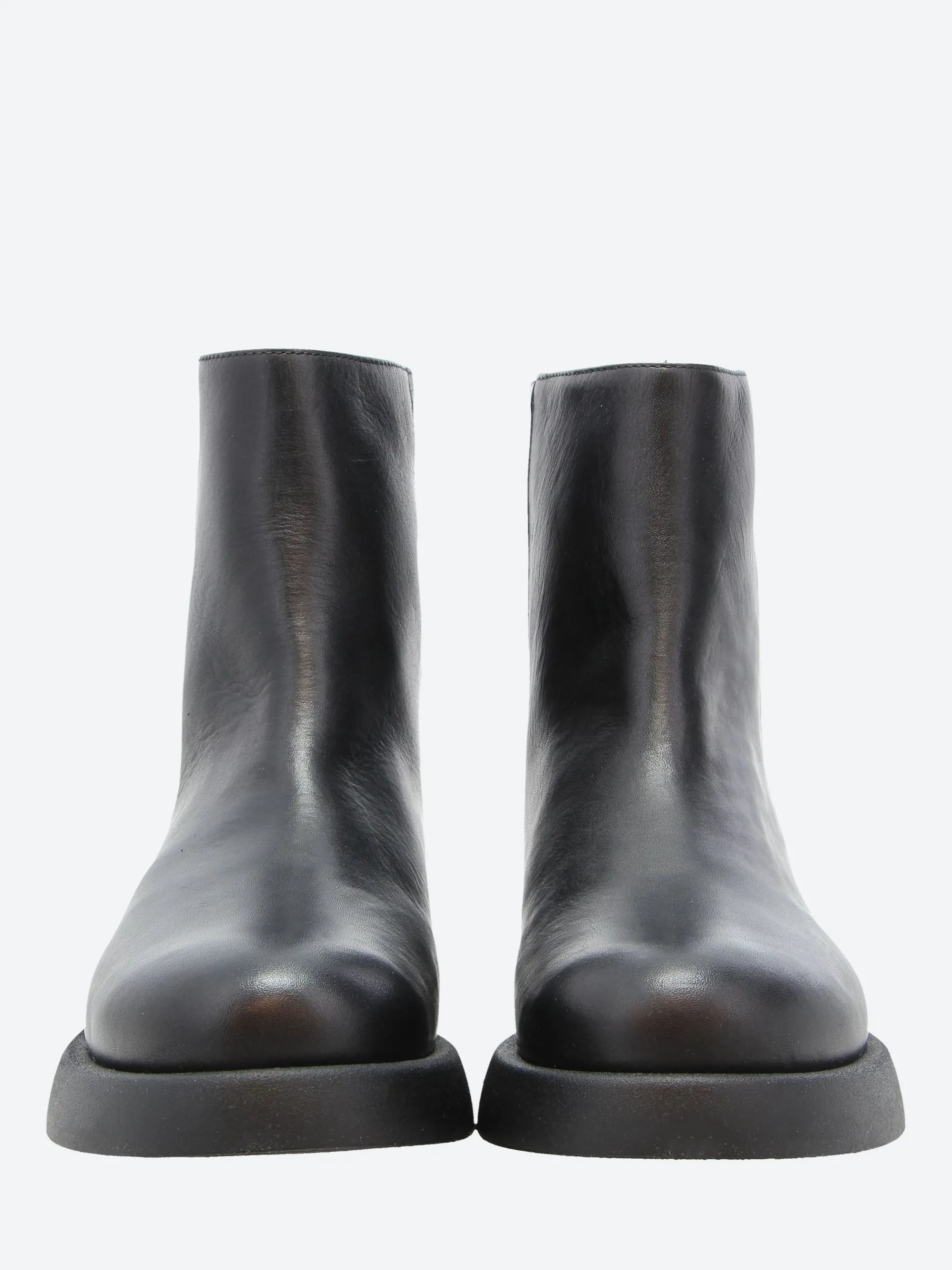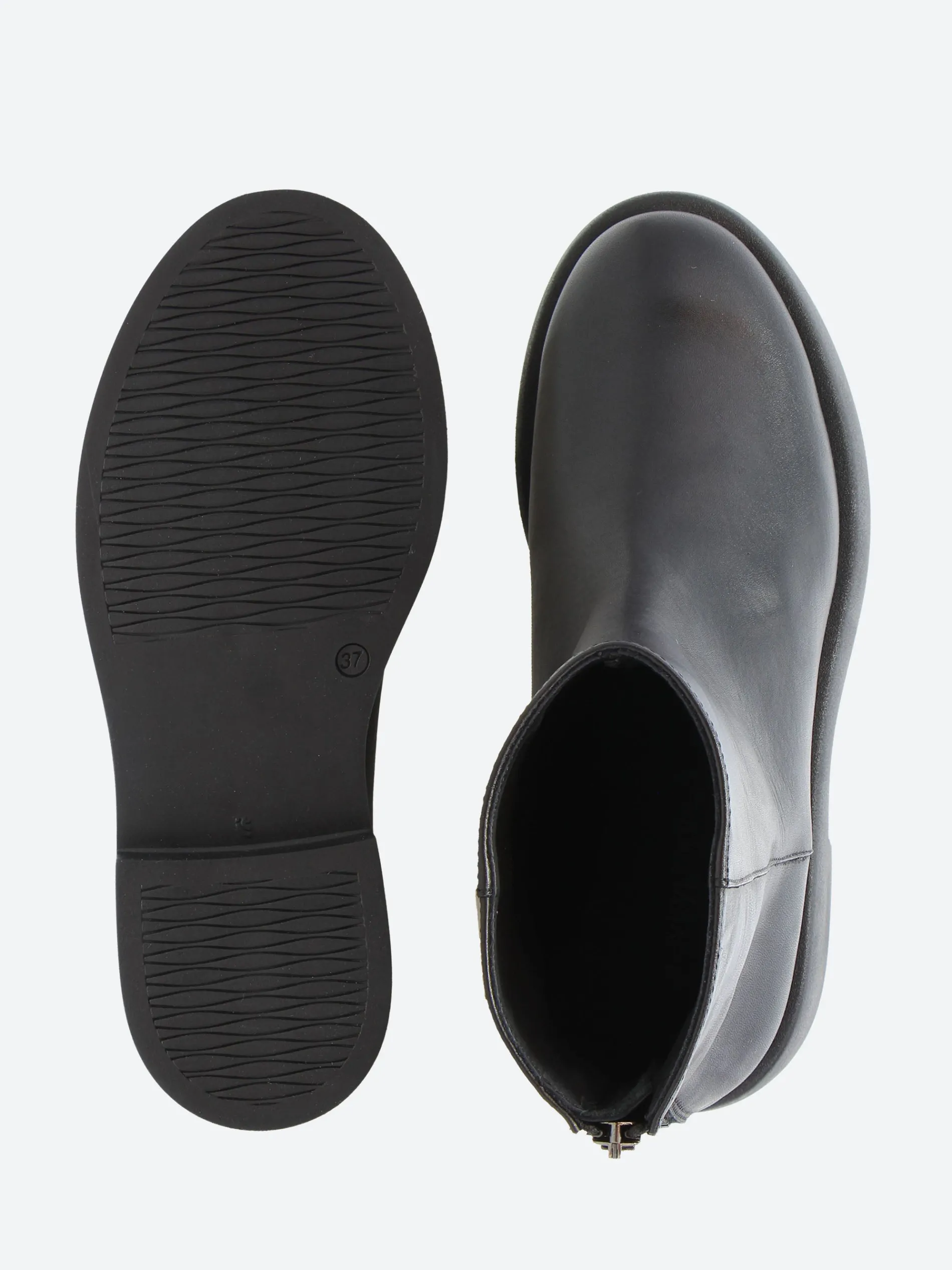 gravitypope Stefa with a slight block heel. This round toe bootie in a sleek leather upper is a timeless piece to be worn on any occasion.