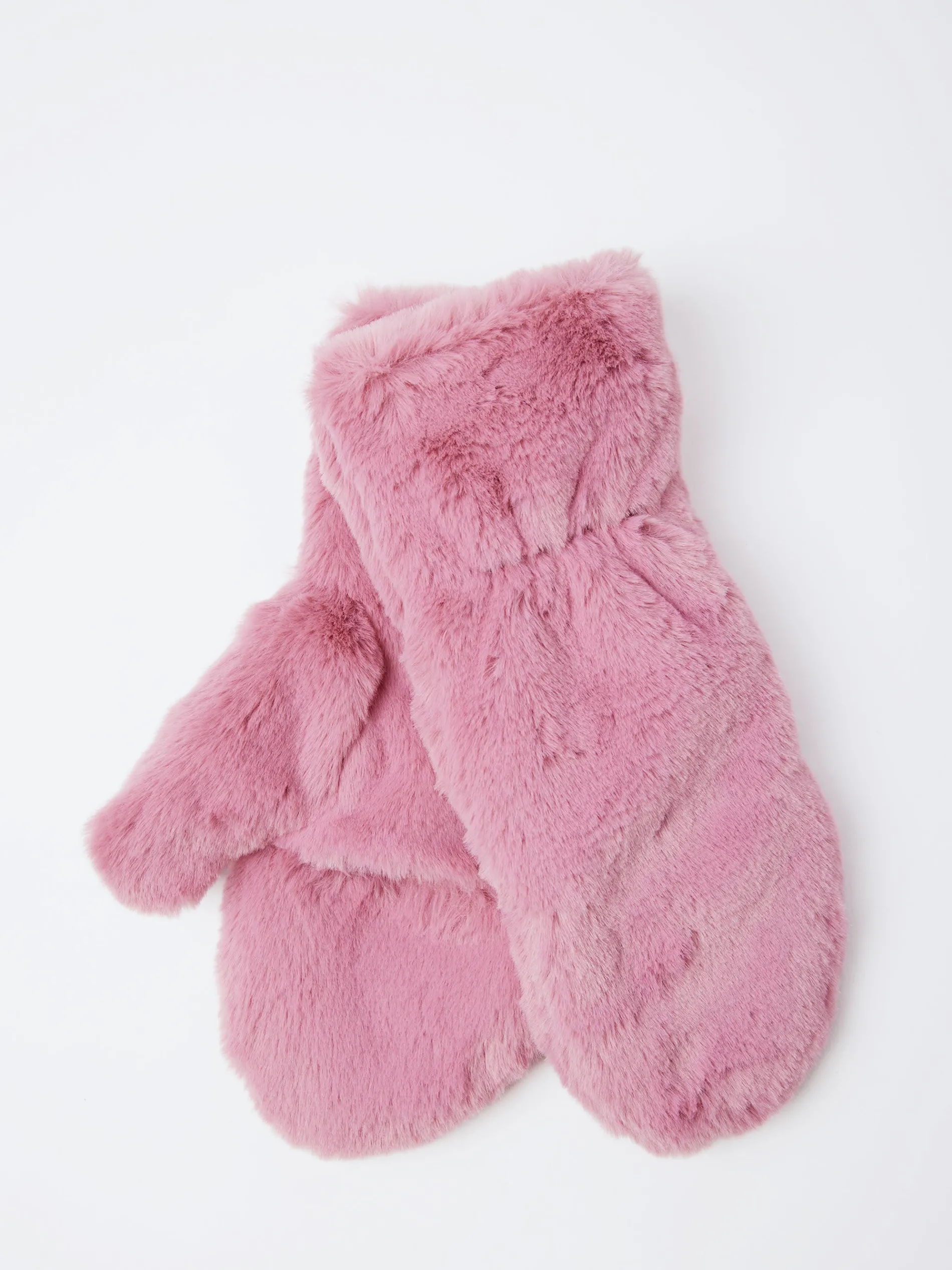 Eco faux fur mittens that are incredibly plush and perfect to pair with a warm wool coat.