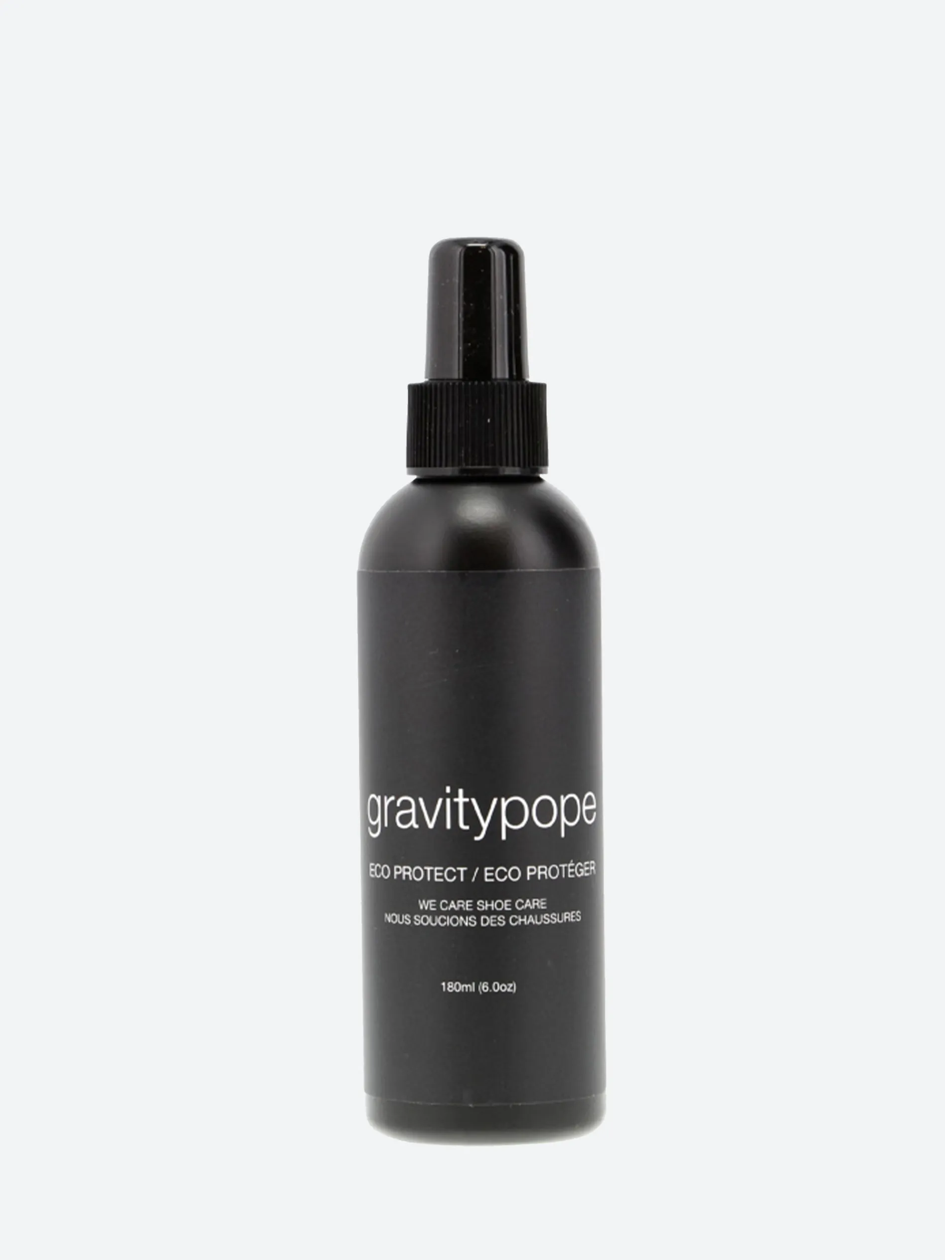 gravitypope’s Eco Protect Weatherproof Spray is a water-based non-aerosol formula, perfect for protecting your footwear from water and snow. Use this spray on your leather, suede, nubuck or fabric shoes to create an invisible shield that breathes as it repels water and prevents stains from setting in.