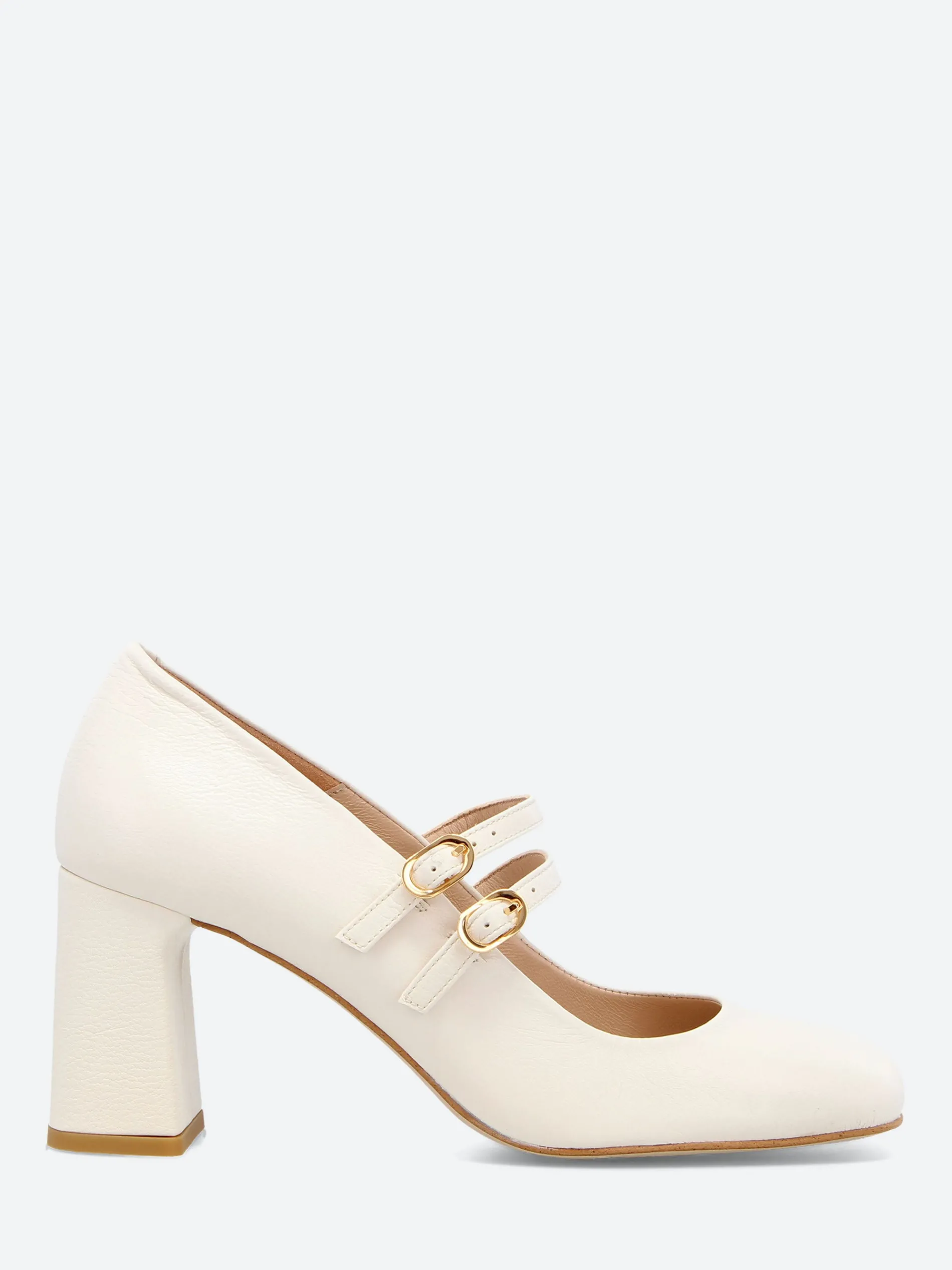 The gravitypope Zabi Mary Jane heel features a sturdy block heel and a chic square toe, offering a modern take on a classic style. With double straps and buckle details, it combines elegance and secure fit. The sleek, glossy finish adds a refined touch, making these heels the perfect choice for both day and evening wear.