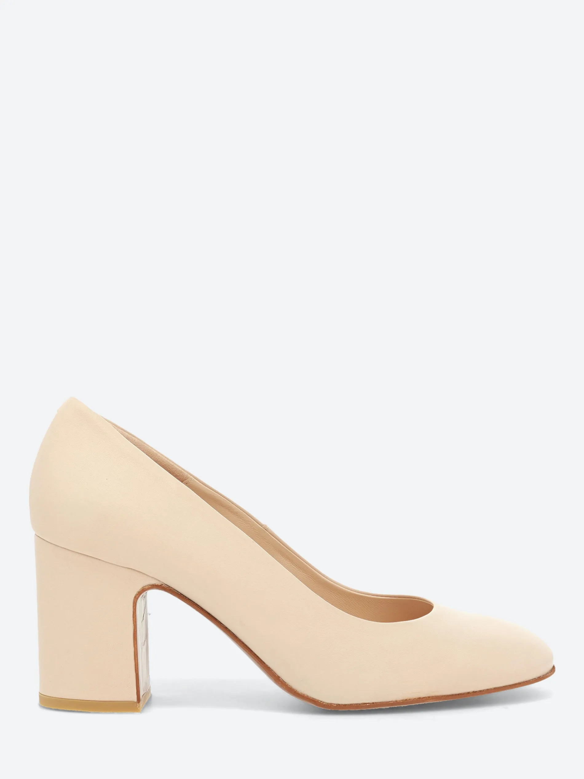 A timeless and elegant round-toe pump elevated by a classic block heel, adding both lift and class.