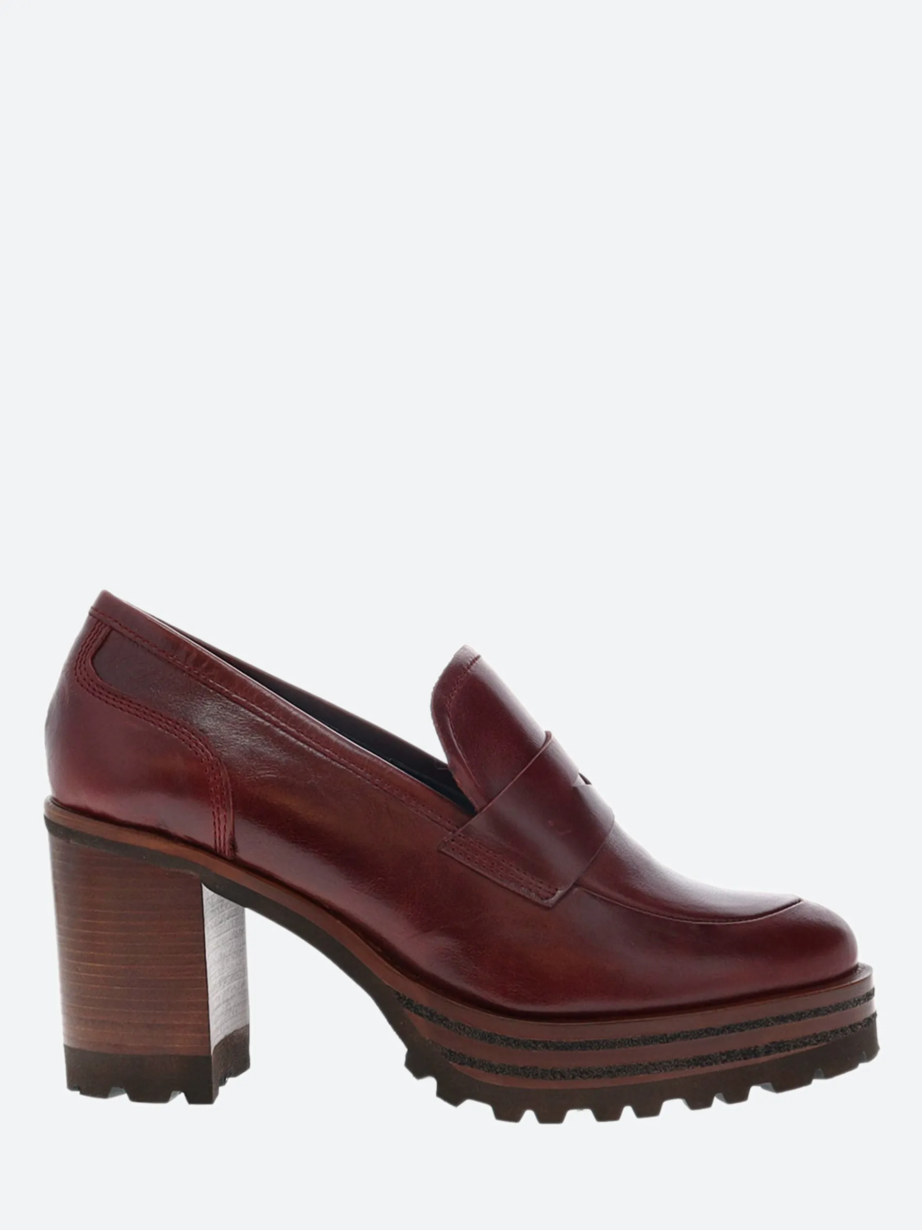 Versatile and endlessly wearable, the gravitypope Zena loafer sits on a solid wood block heel with lugged traction.