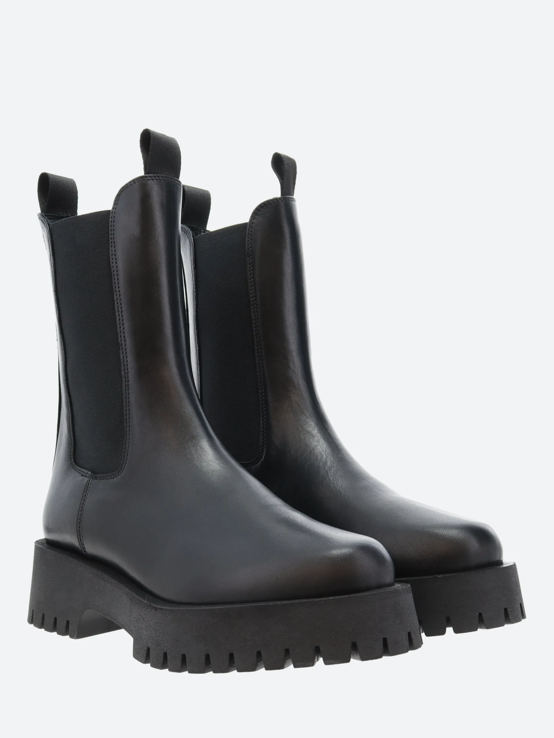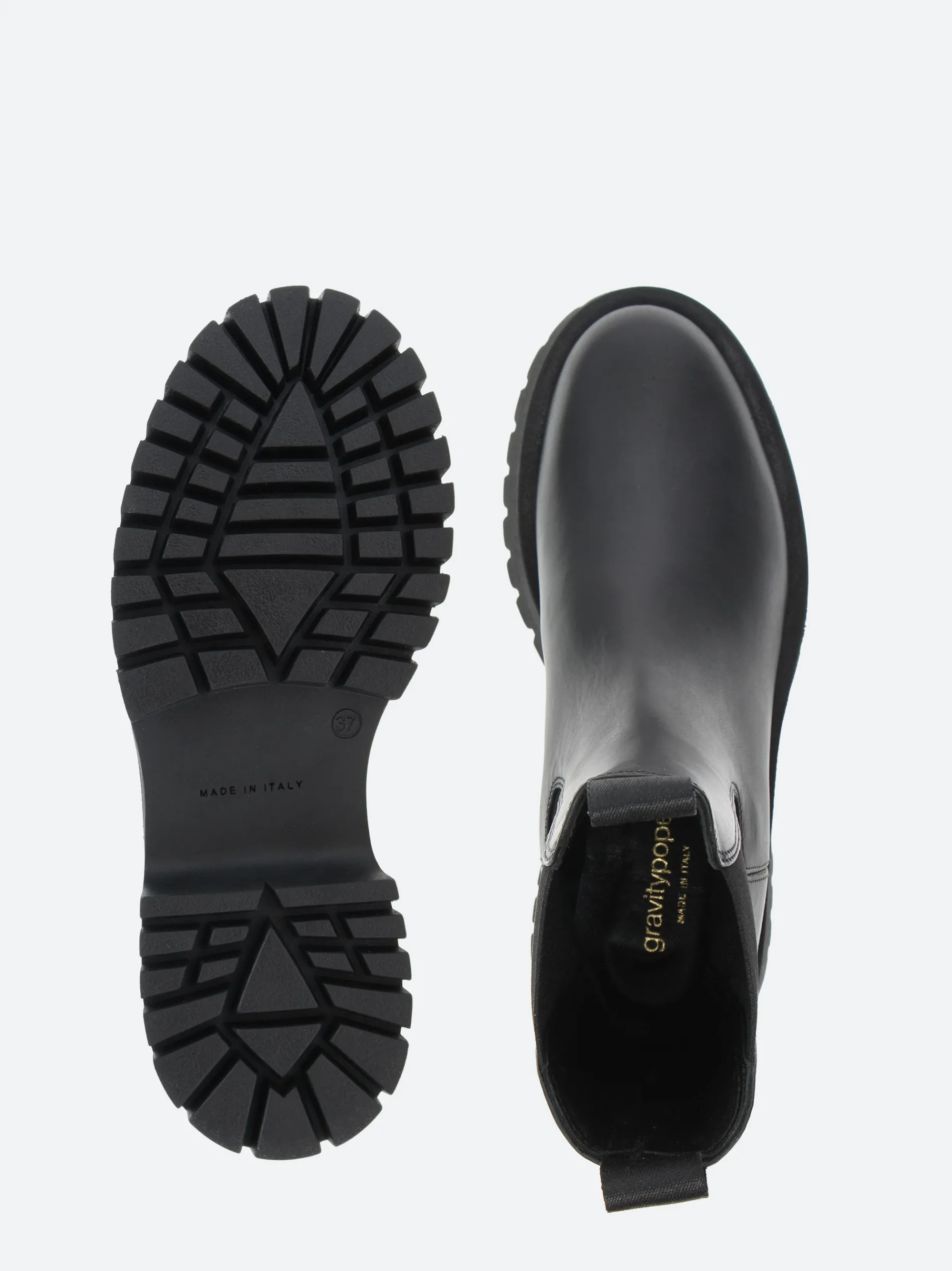 The minimal design of the gravitypope Greta boot is a modern take on the classic combat style. Complete with a thicker rubber sole for added traction.