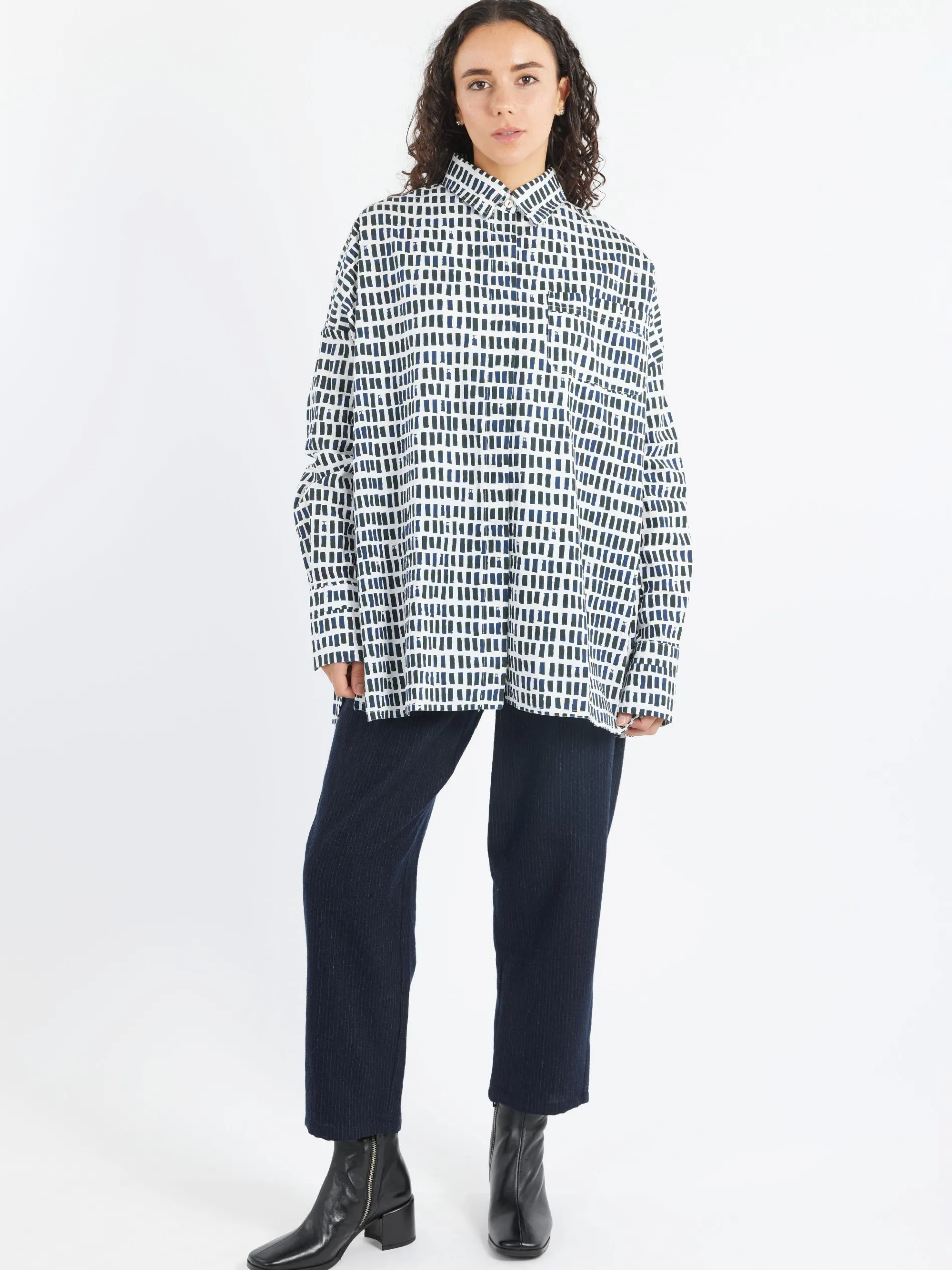 Hannoh Wessel cotton collared shirt with an original print. Straight silhouette with a straight hem.