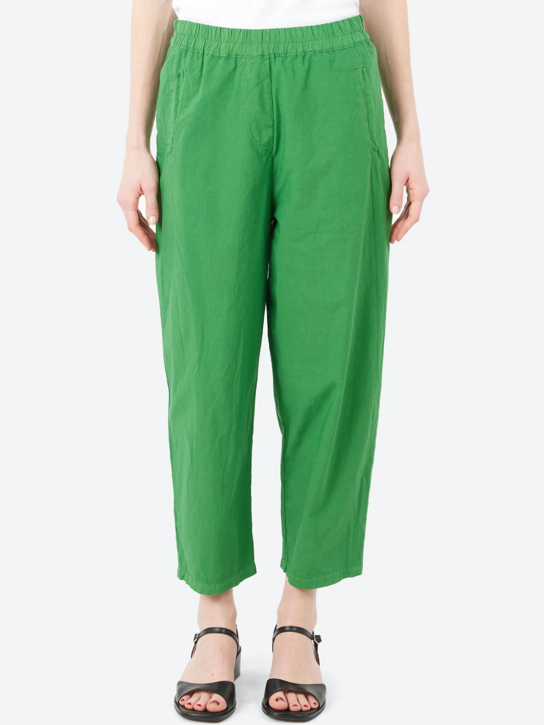 These straight-cut trousers are crafted from lightweight cotton, making them ideal for summer wear. The elasticated waist ensures a comfortable fit, while side pockets add practicality. Perfect for staying cool and stylish all season long.