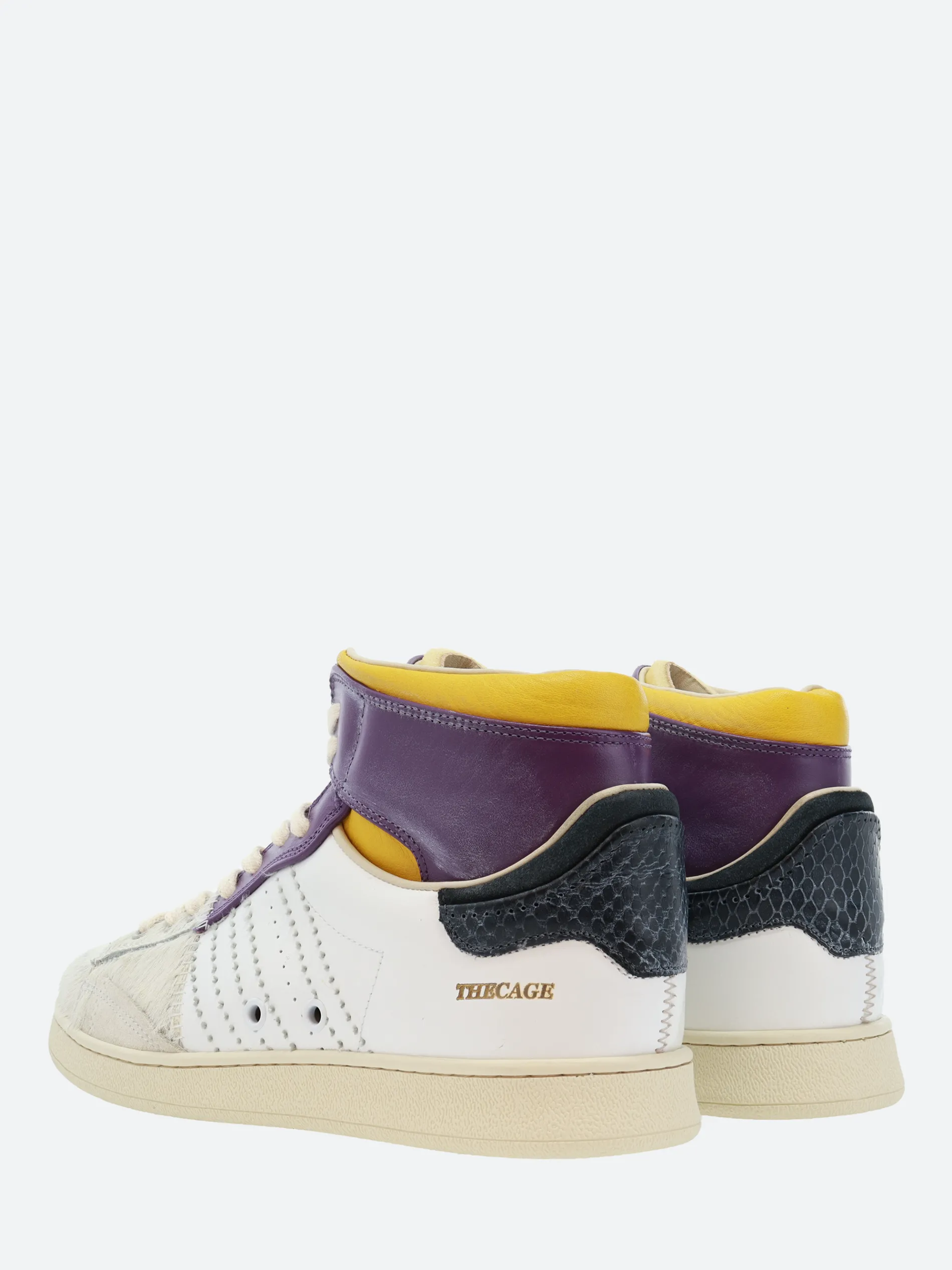 The mash-up of tennis and basketball creates Hidn-ander’s Italian-made hi-top, The Cage. The tennis shoe base is fused with a basketball-inspired collar that encases the ankle. Named for the inner city basketball courts that pepper the USA, from New York to Chicago to Los Angeles.