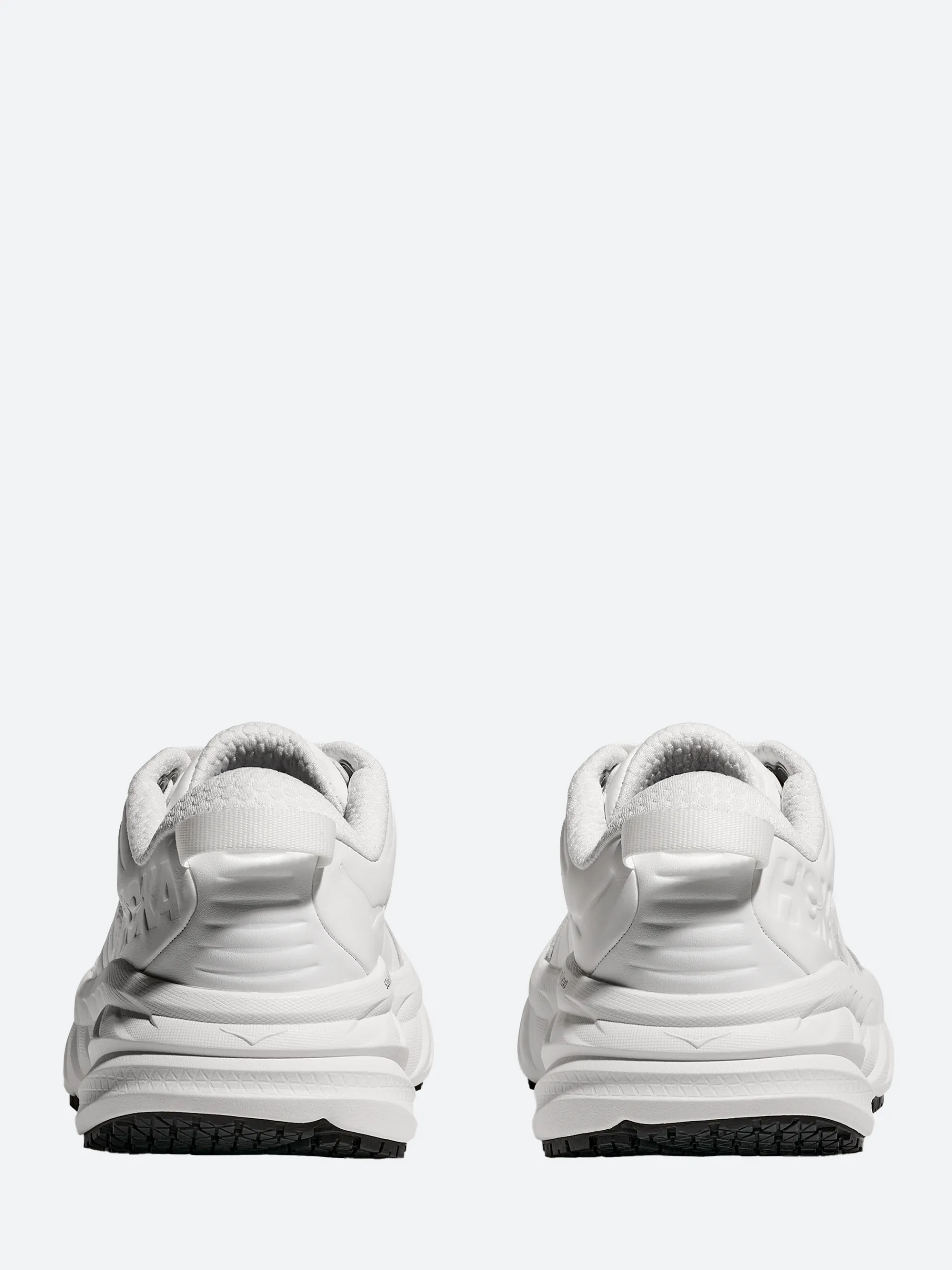 The Bondi SR takes the most cushioned shoe in the HOKA road-shoe lineup and reworks the silhouette to handle the demands of daily life. Updated with water-resistant leather, a slip-resistant outsole and EVA midsole to ensure all-day cushion, this workplace warrior features an ultra-grippy, full ground contact rubber that stands up to the demands of the service industry and medical field alike.