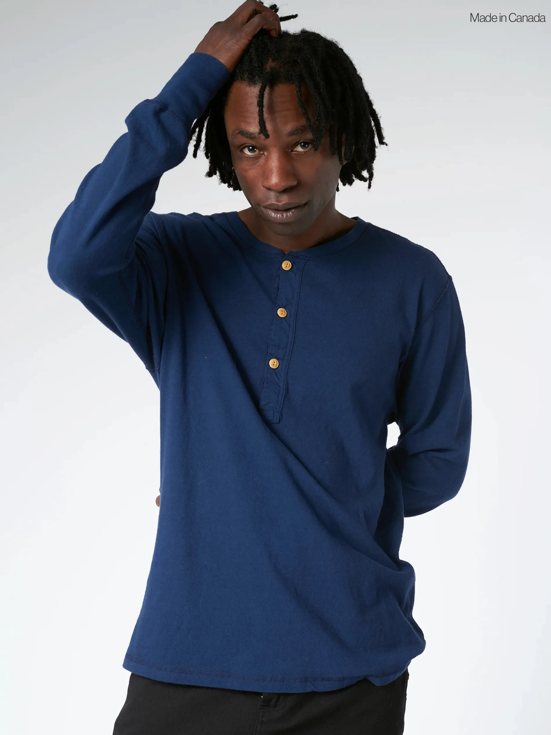 Homespun Knitwear Coalminer Henley is constructed from high quality heavy slub jersey. Traditionally based on depression-era vintage.
