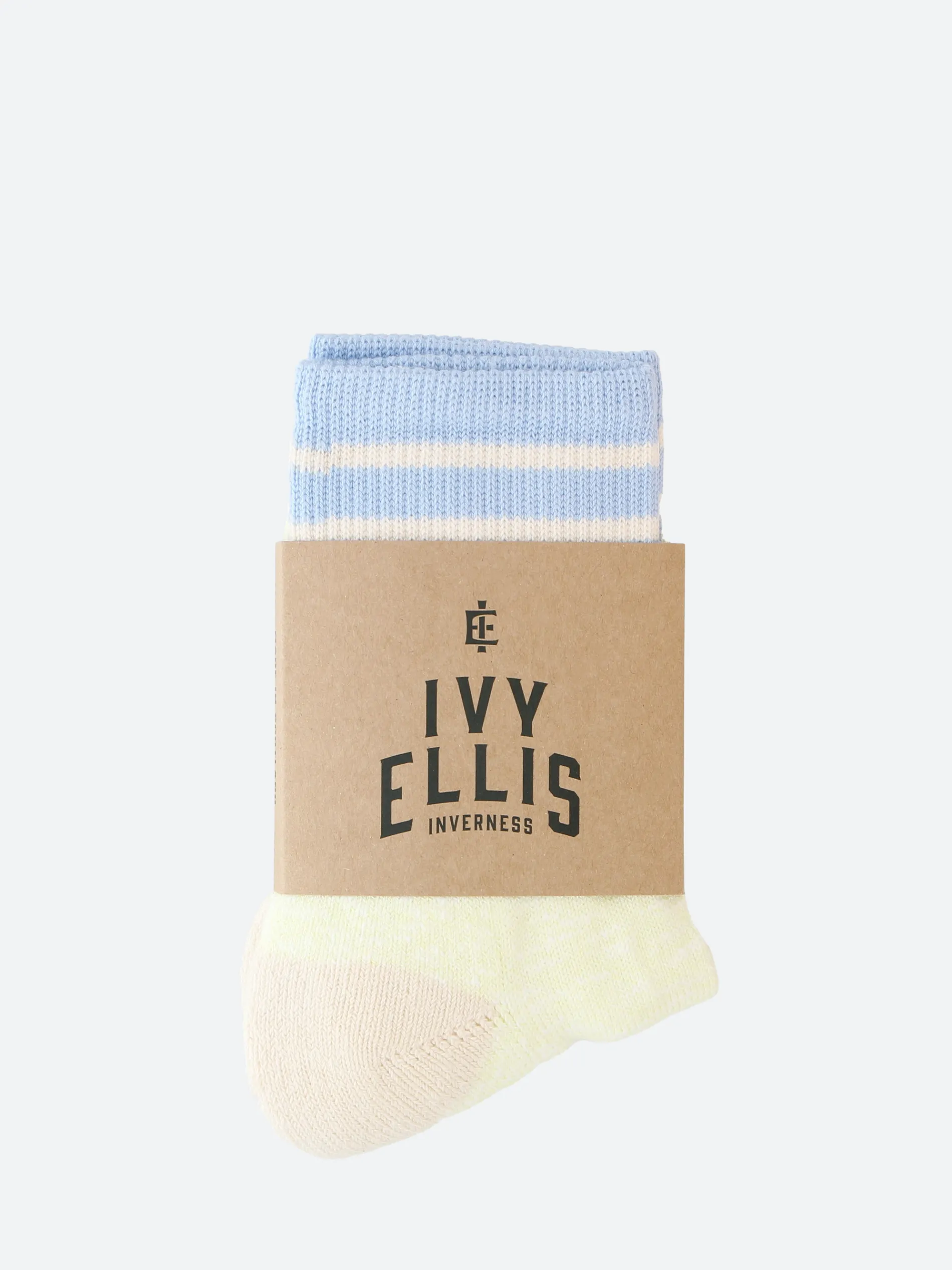 The Embo – named after one of the Scottish Highland coastlines. Made in soft yellow slub yarn with signature vintage cream heel and toe.