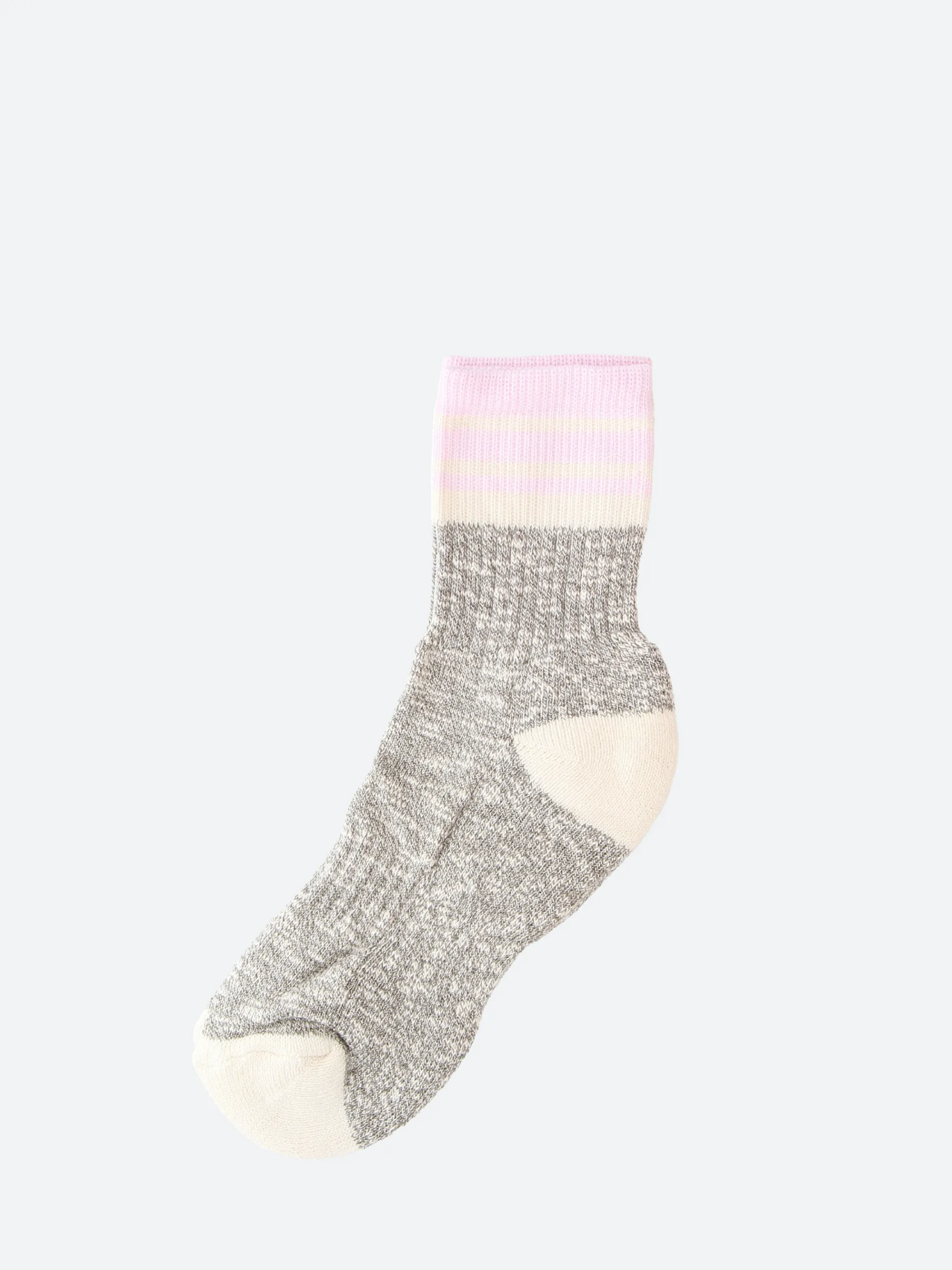 The Rosemarkie – named after one of the Scottish Highland coastlines. Made in light grey slub yarn with signature vintage cream heel and toe.