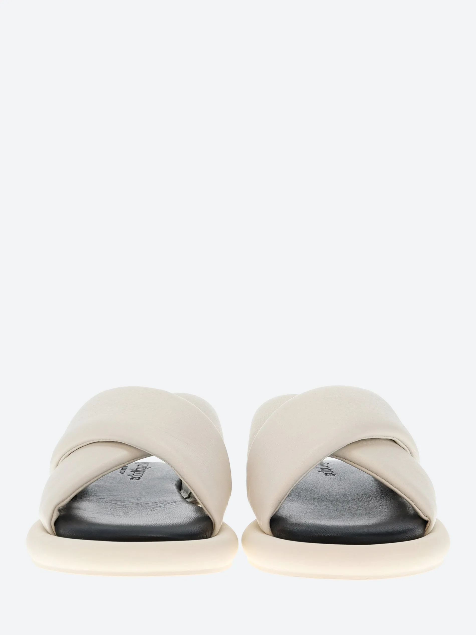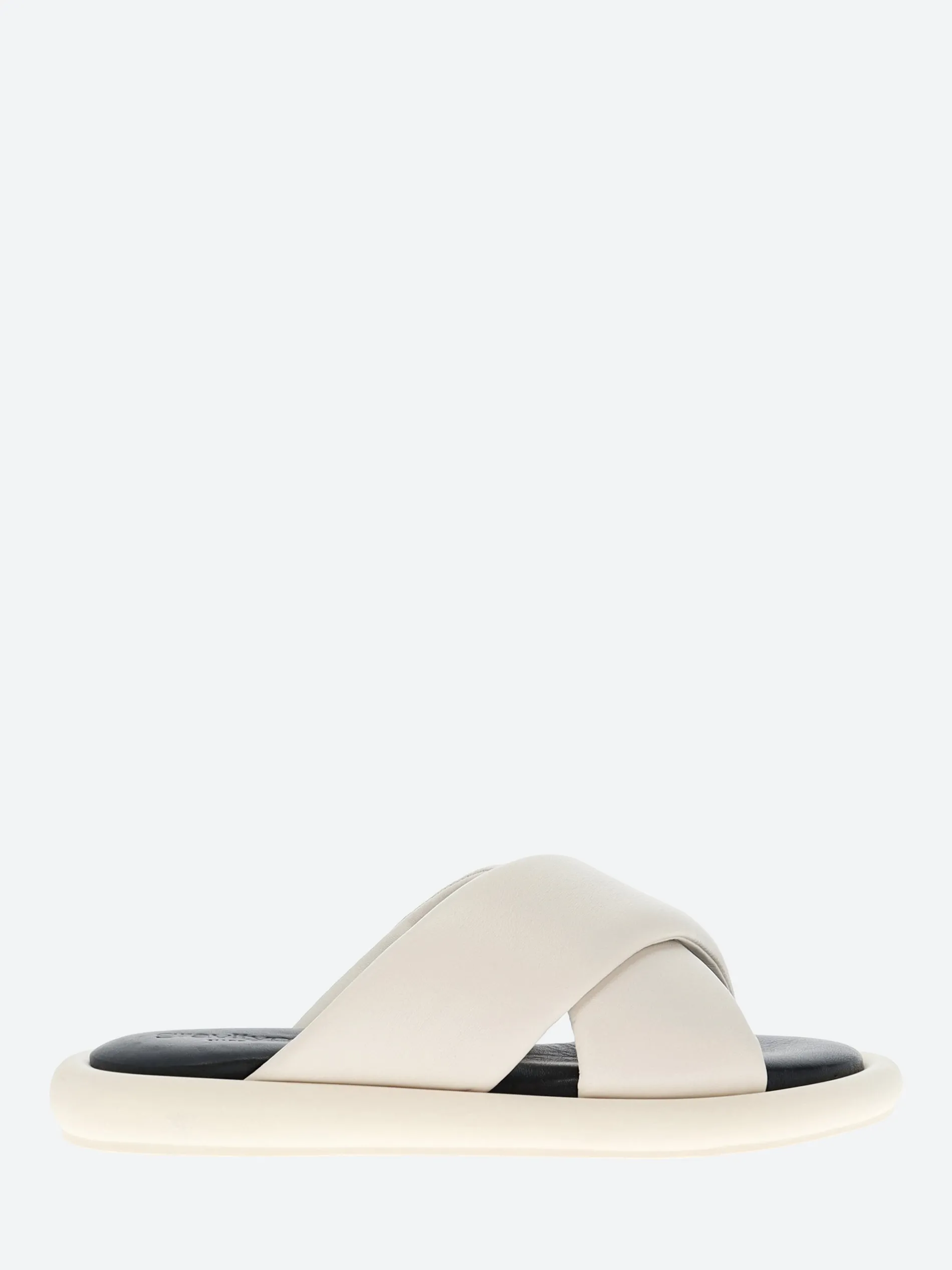 gravitypope wide crisscross straps at the vamp with a cushioned leather footbed for added comfort.